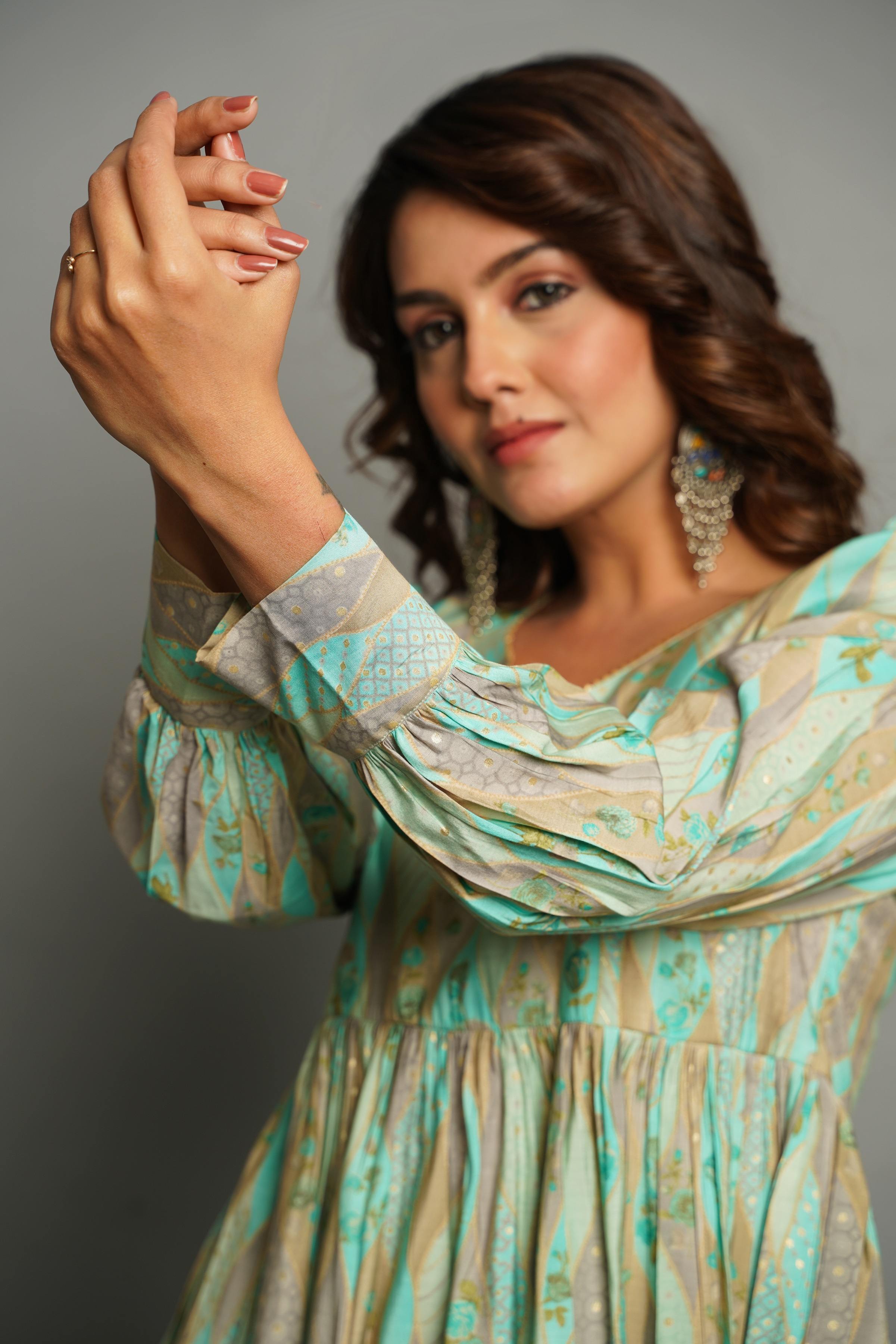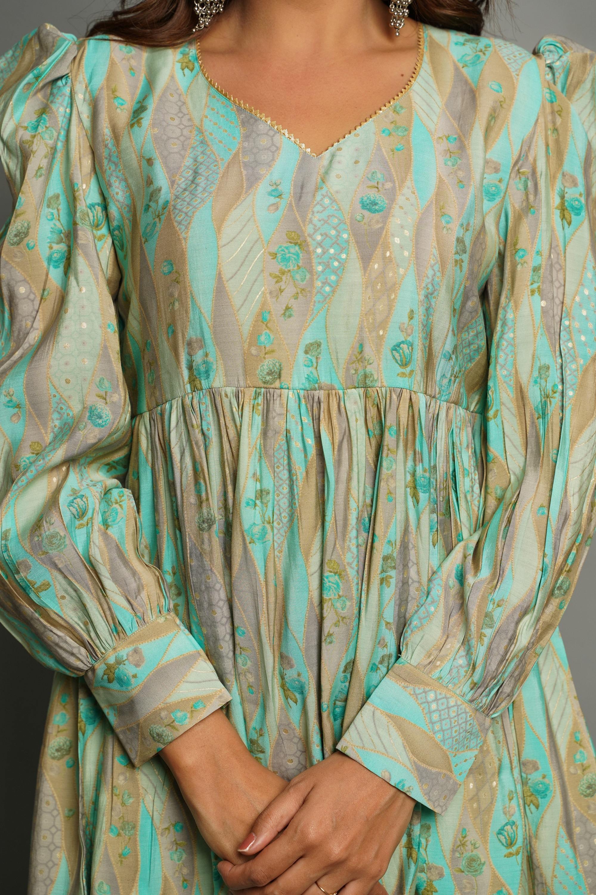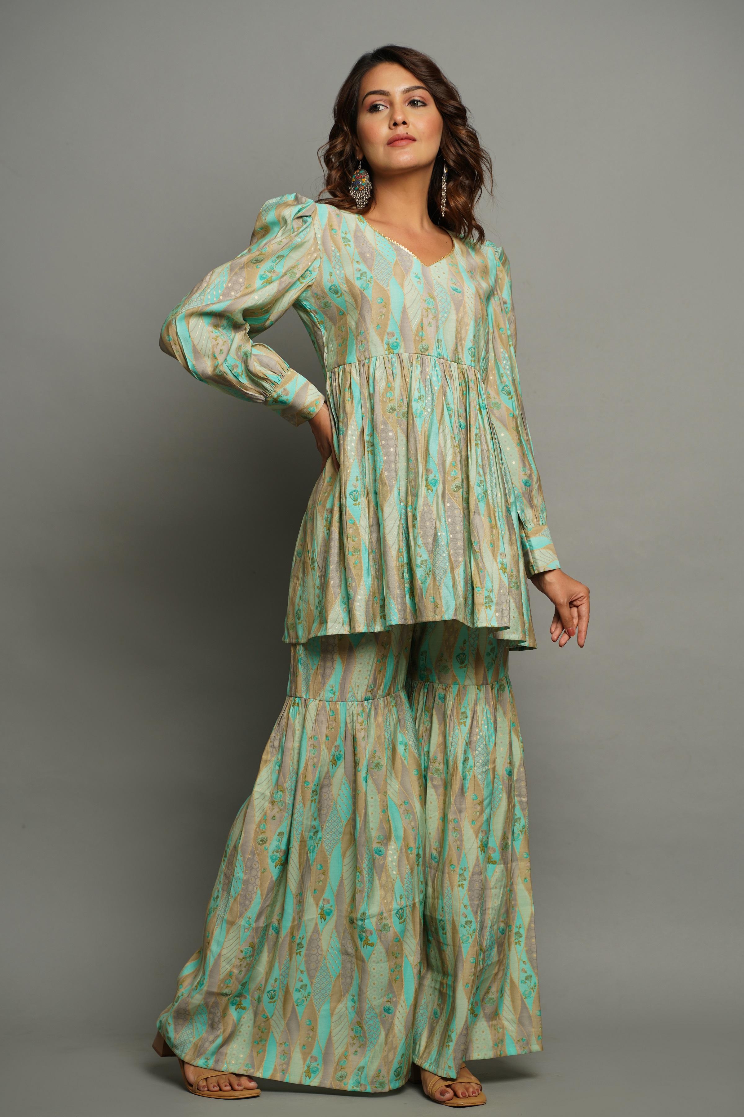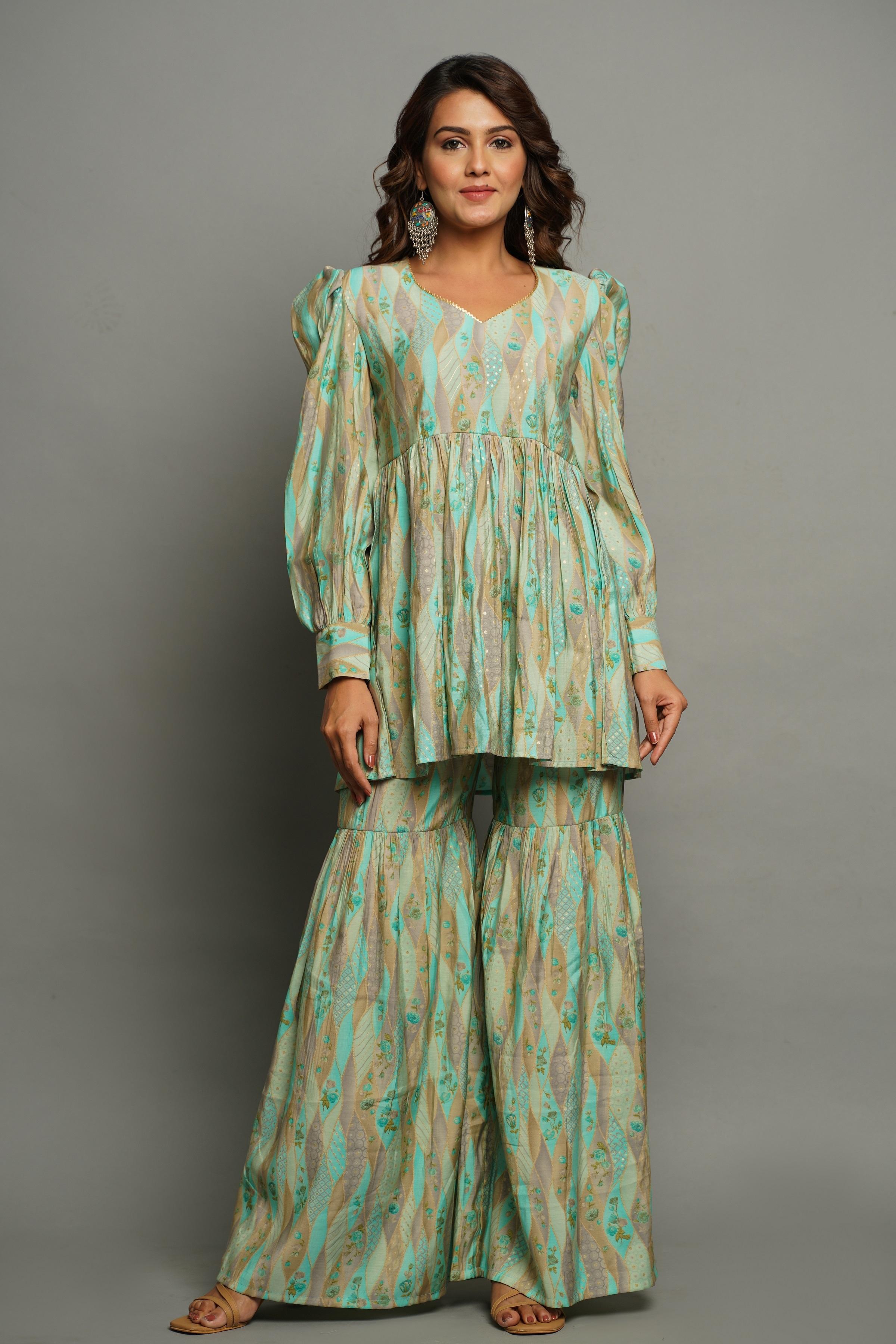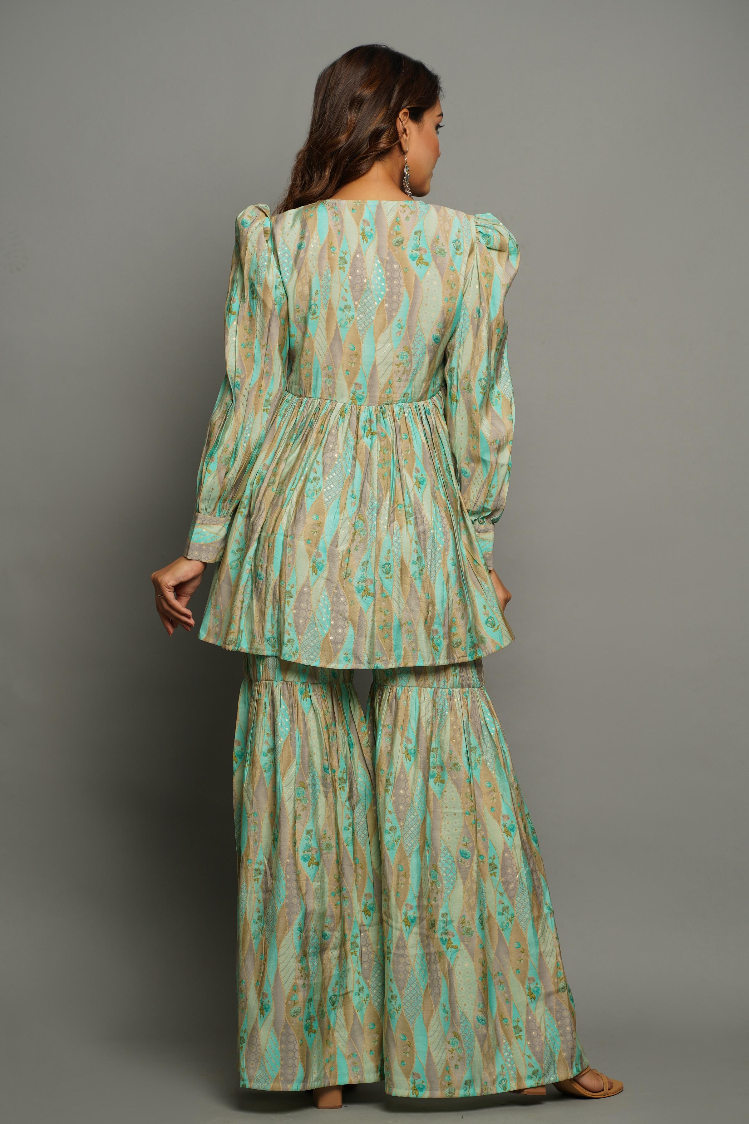 BEAUTIFUL GREEN PRINTED SWEETHEART NECK DESIGN CO-ORD SET