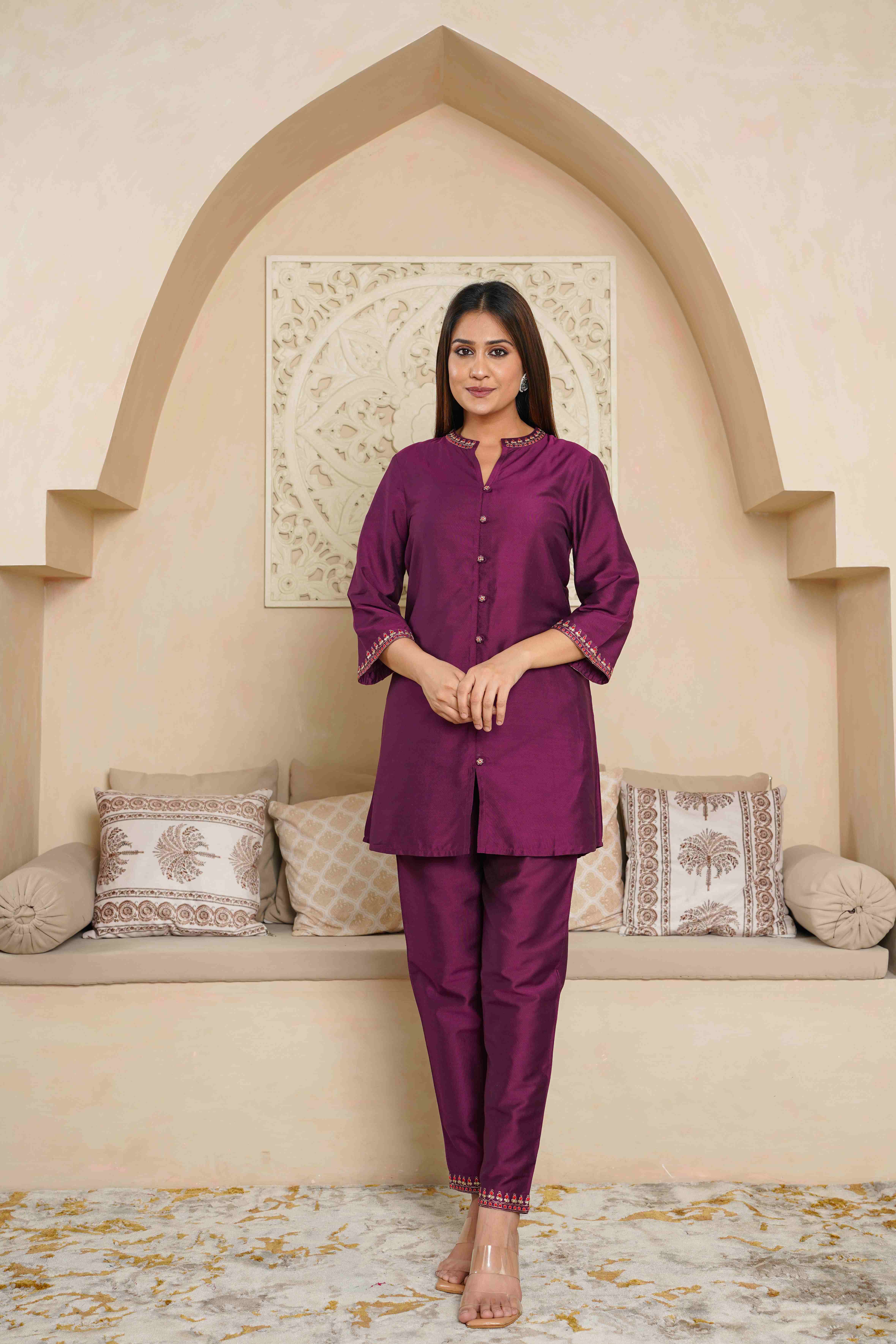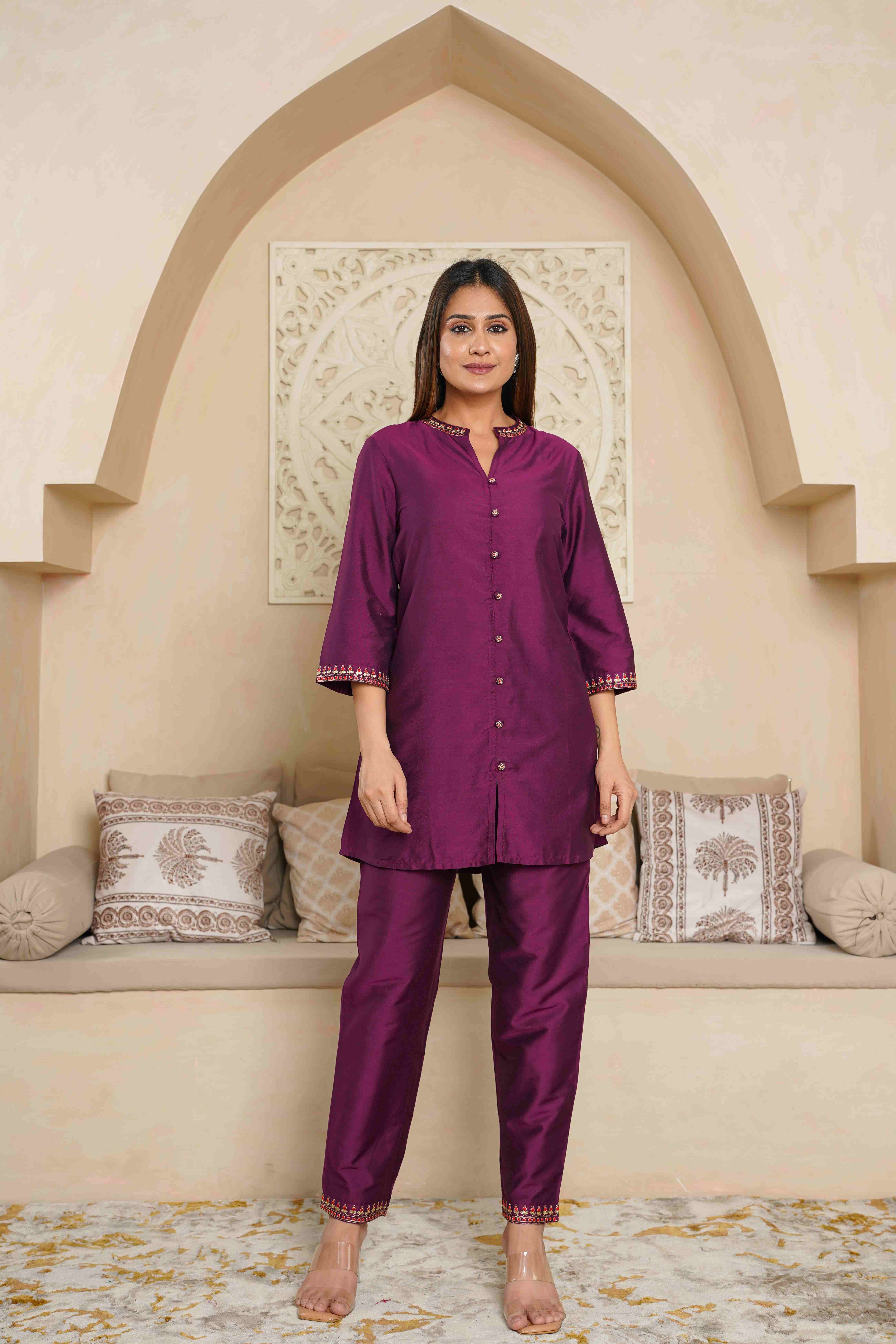 BEAUTIFUL PURPLE EMBROIDERED CO-ORD SET
