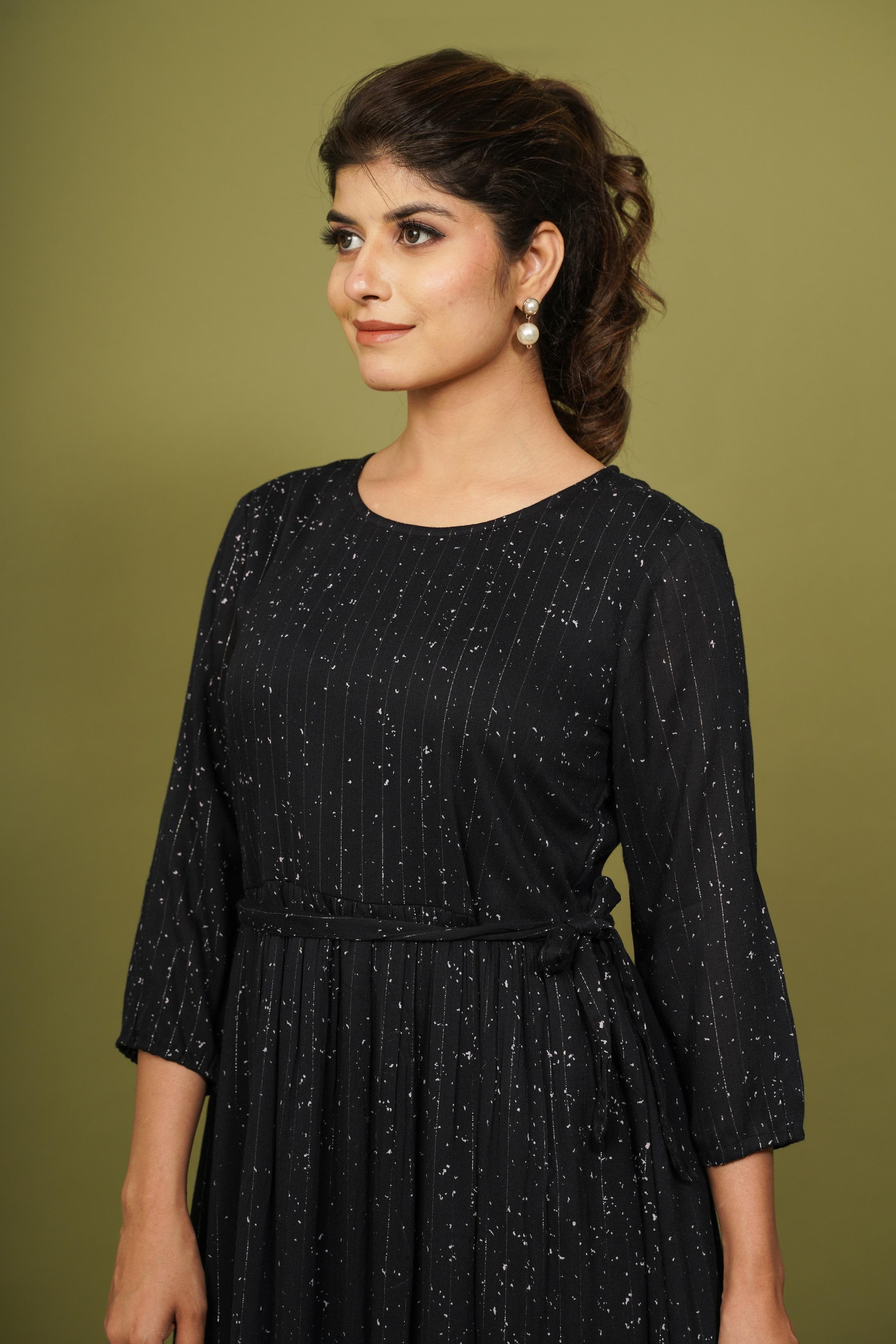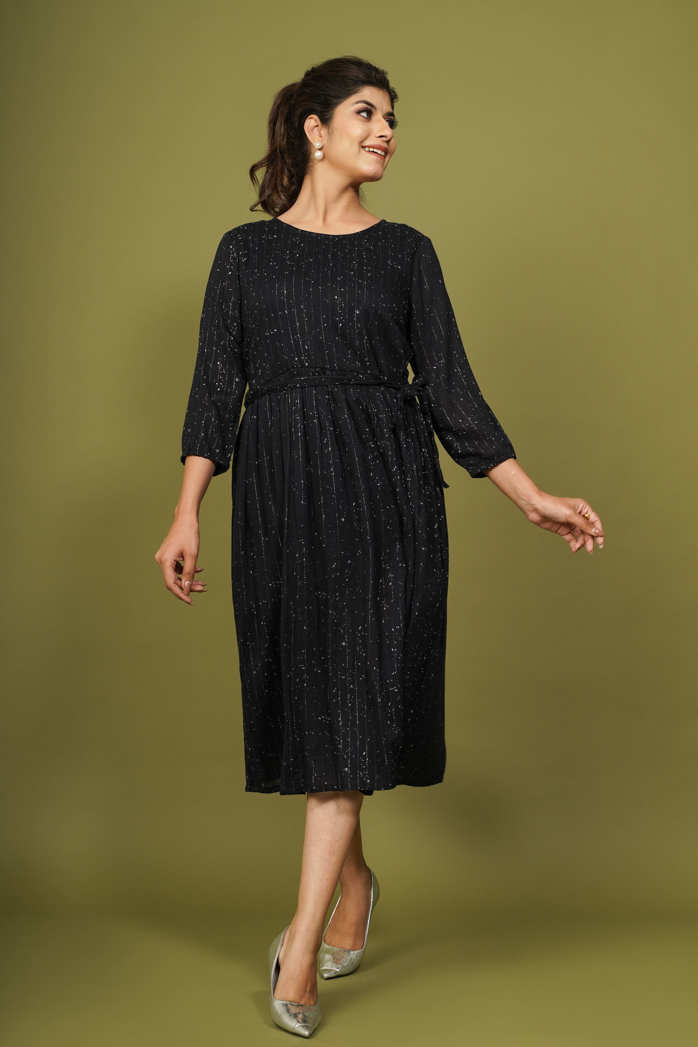 navy blue A-line dress