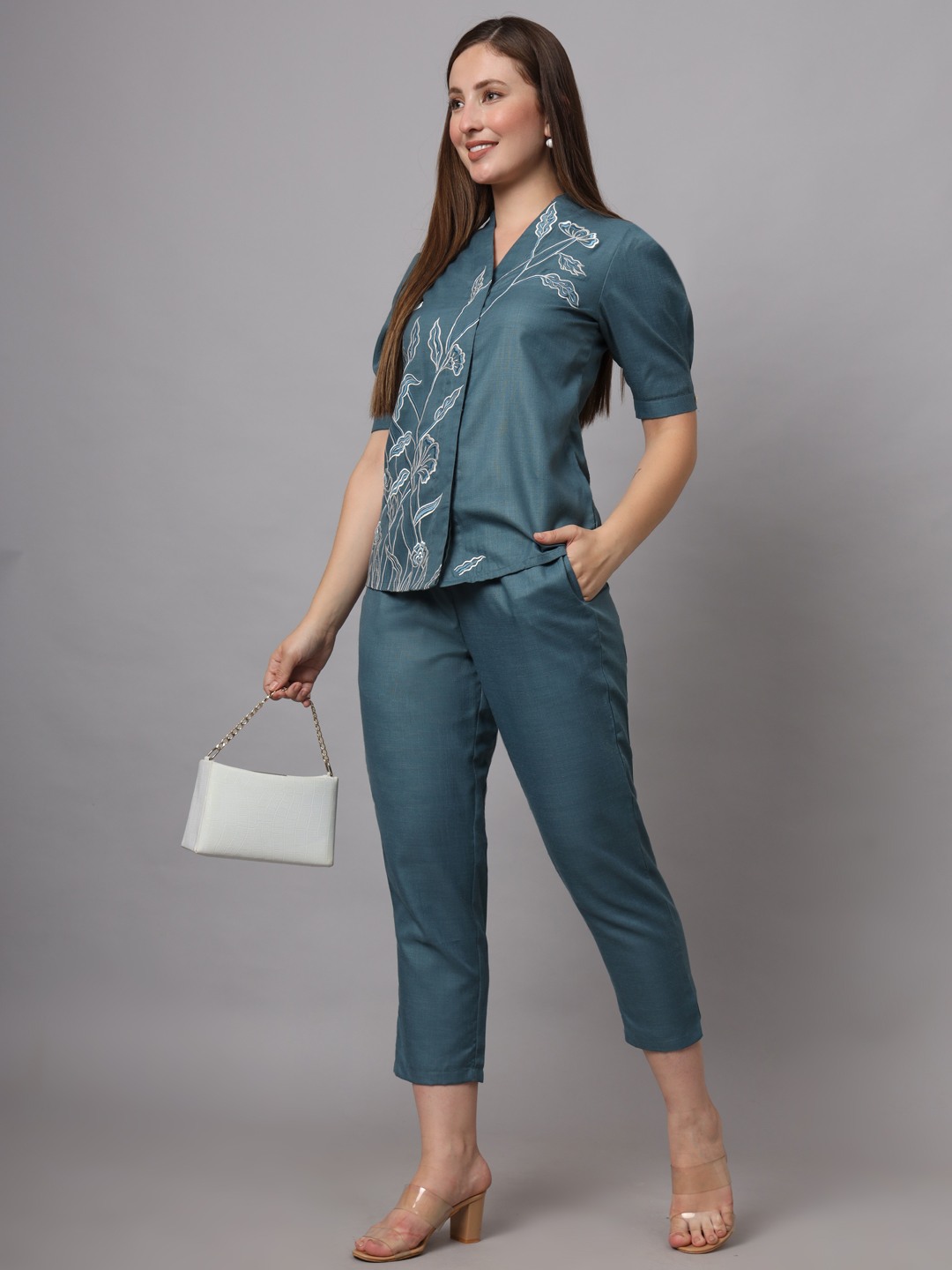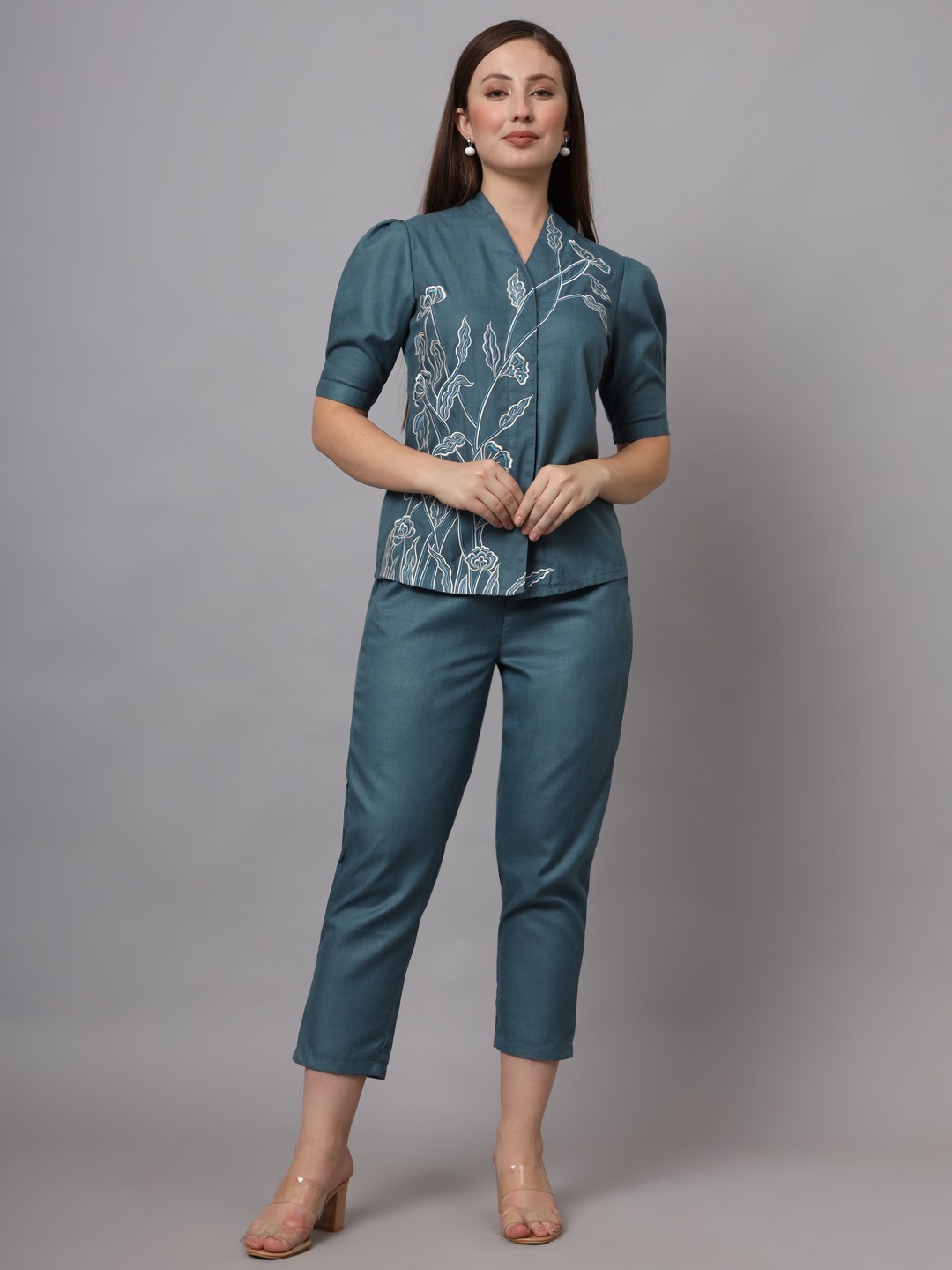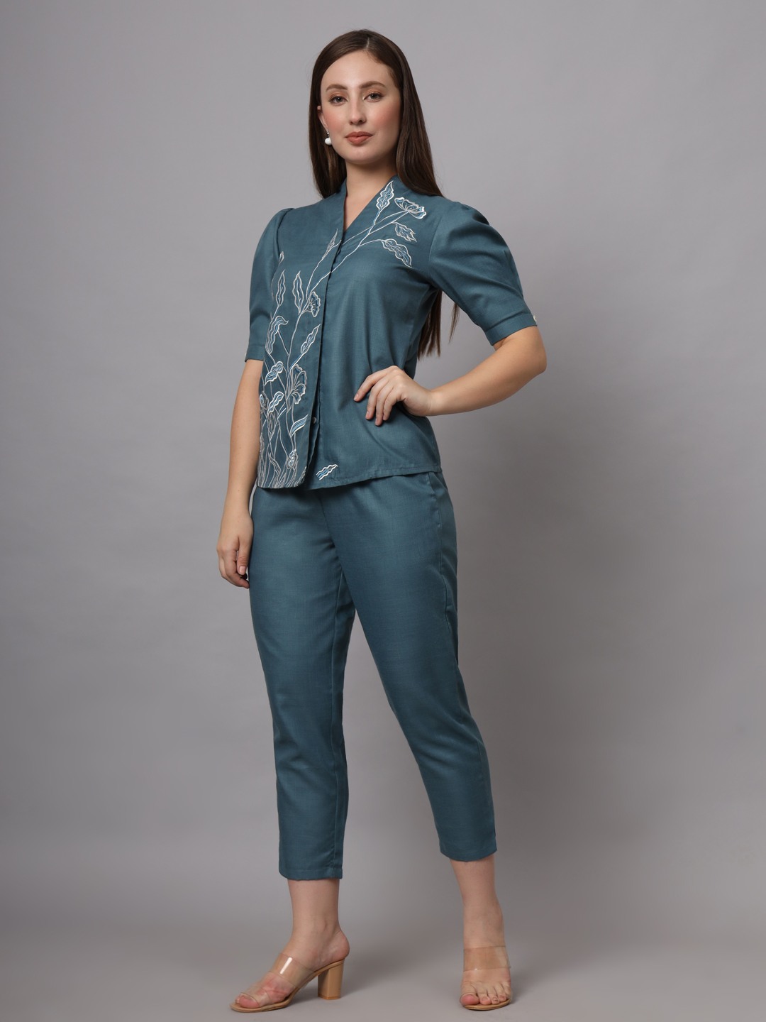 BLUE FLORAL EMBROIDERED CO-ORD SET