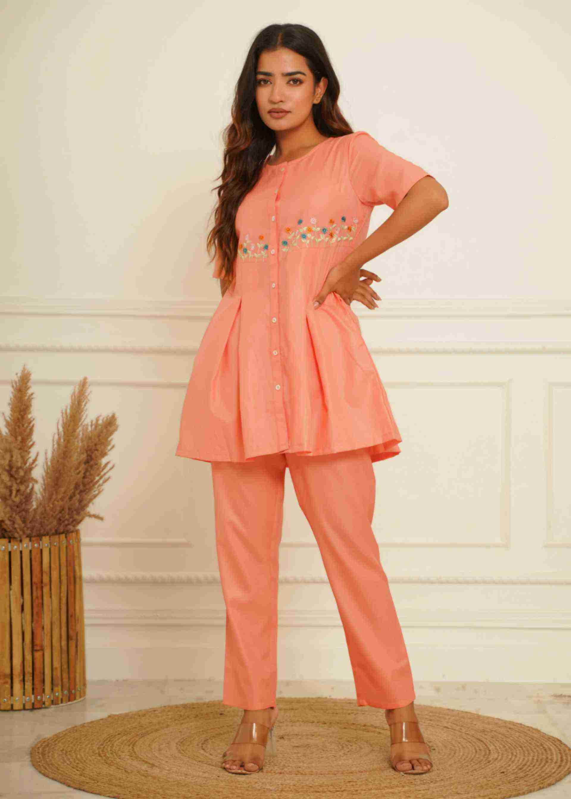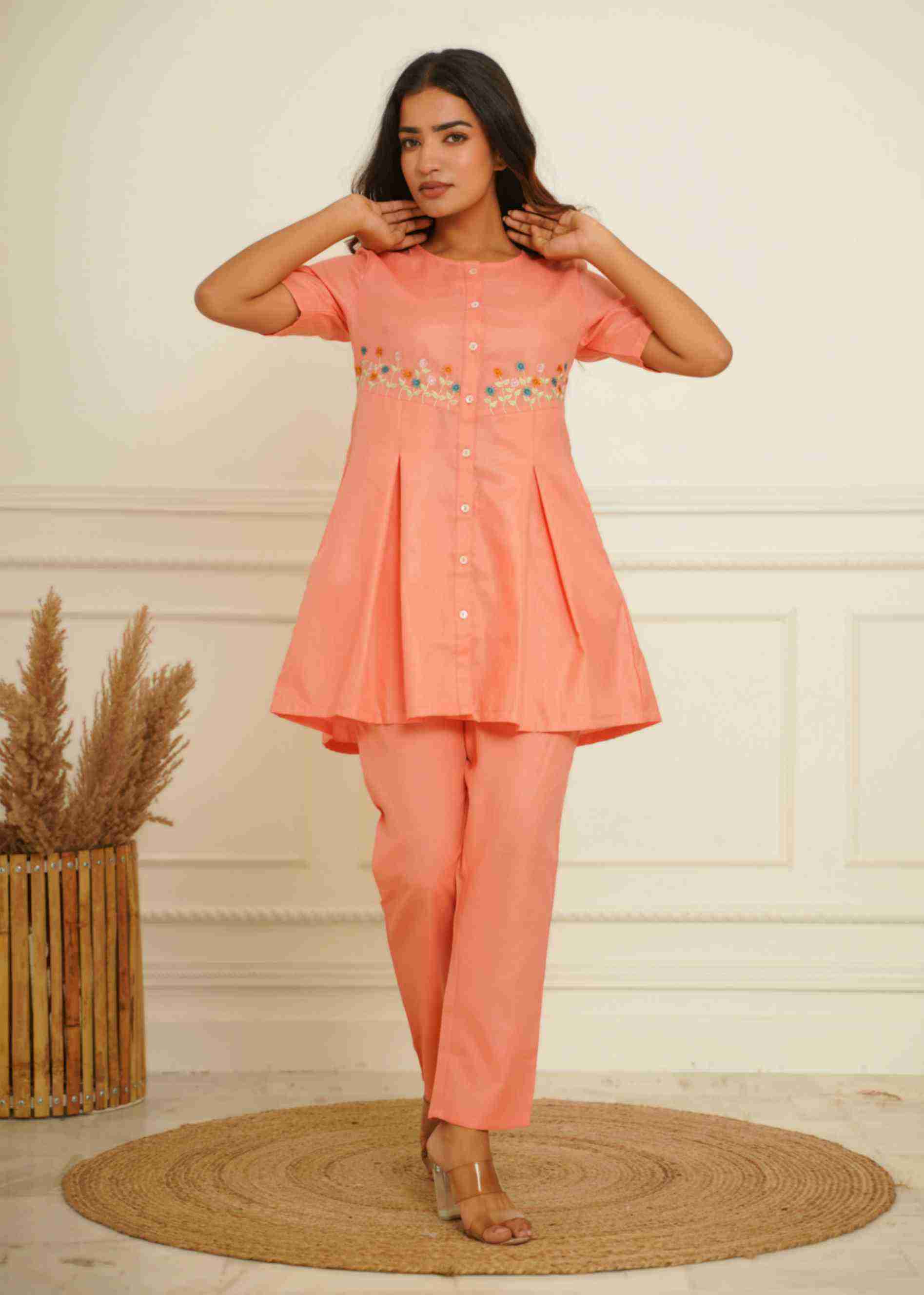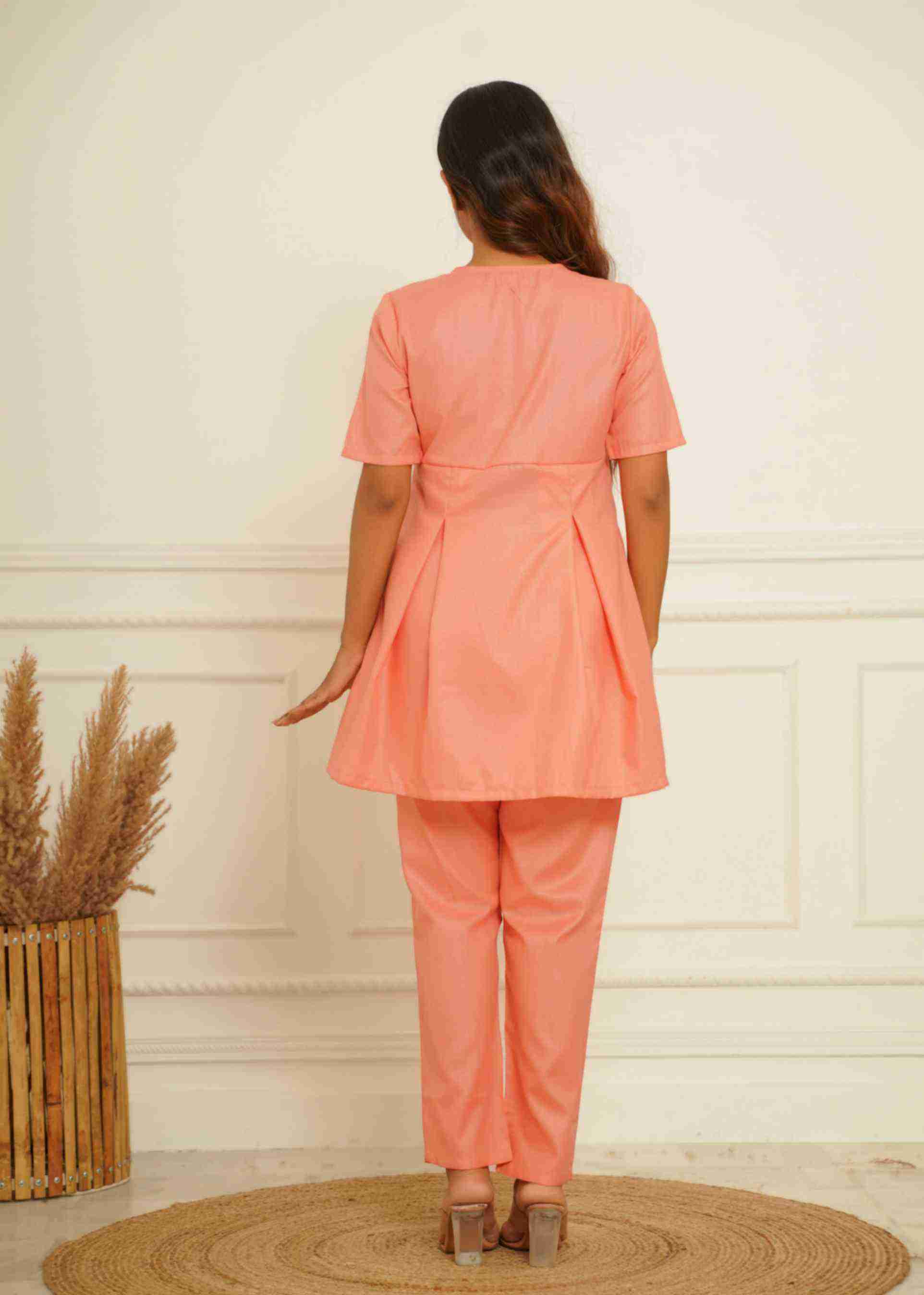 COTTON BLENDED PEACH CO-ORD SET