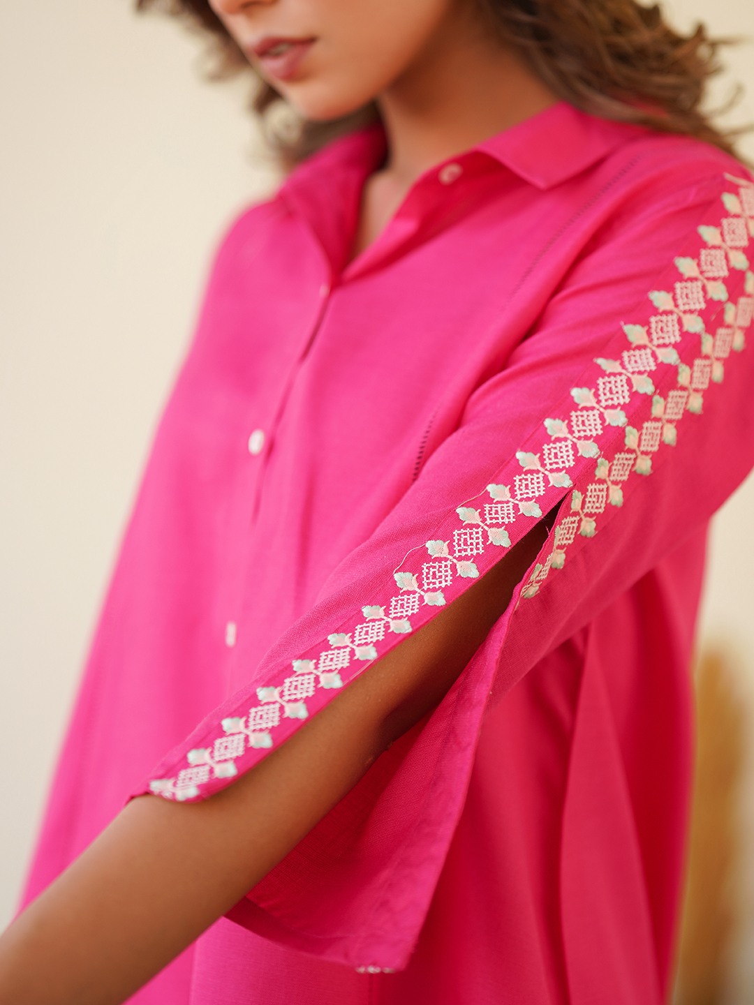 COTTON BLENDED PINK EMBRODIERD CO-ORD SET