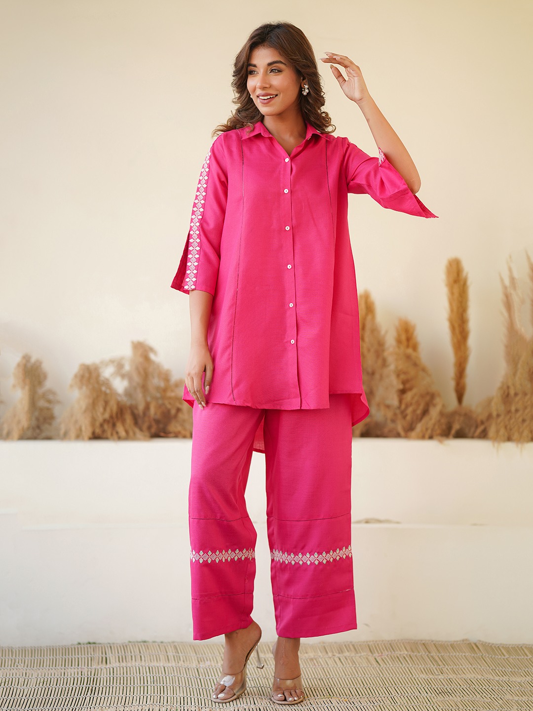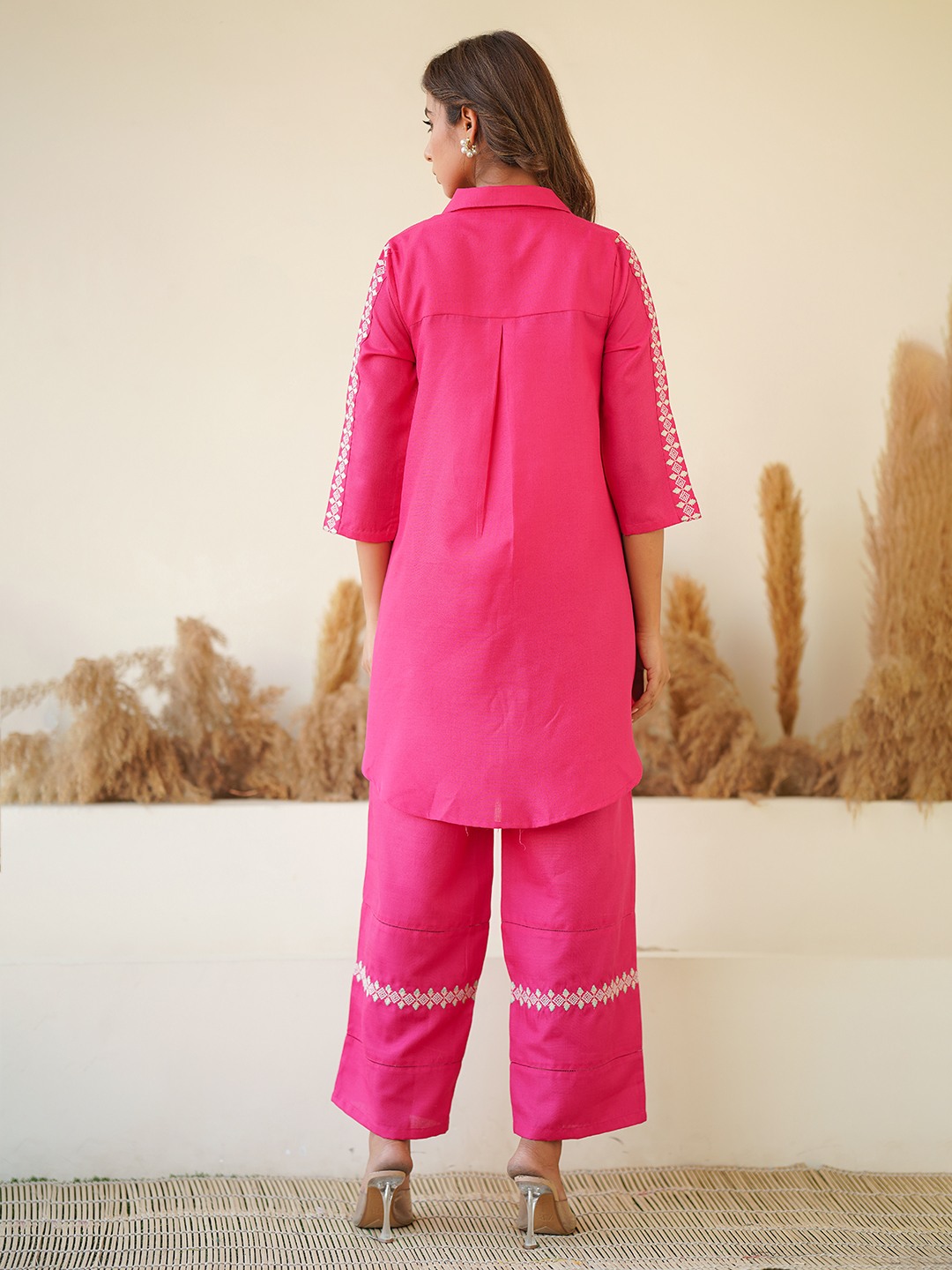 COTTON BLENDED PINK EMBROIDERED CO-ORD SET