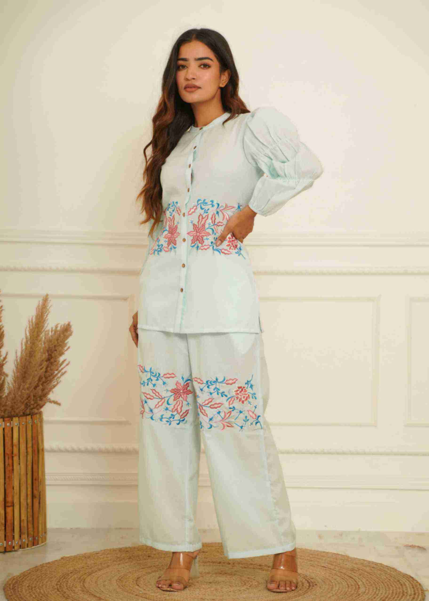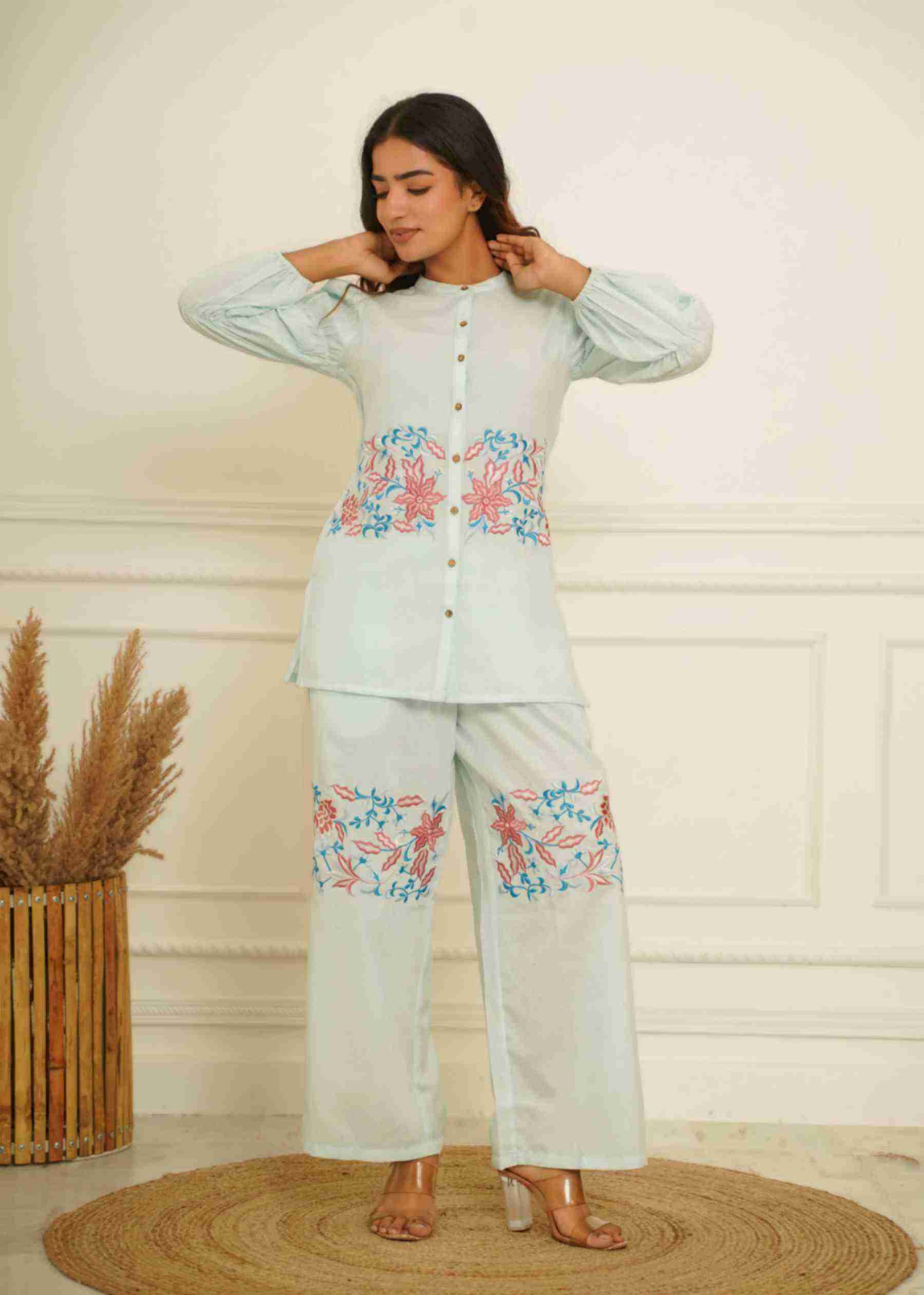 COTTON BLENDED SKY BLUE CO-ORD SET.