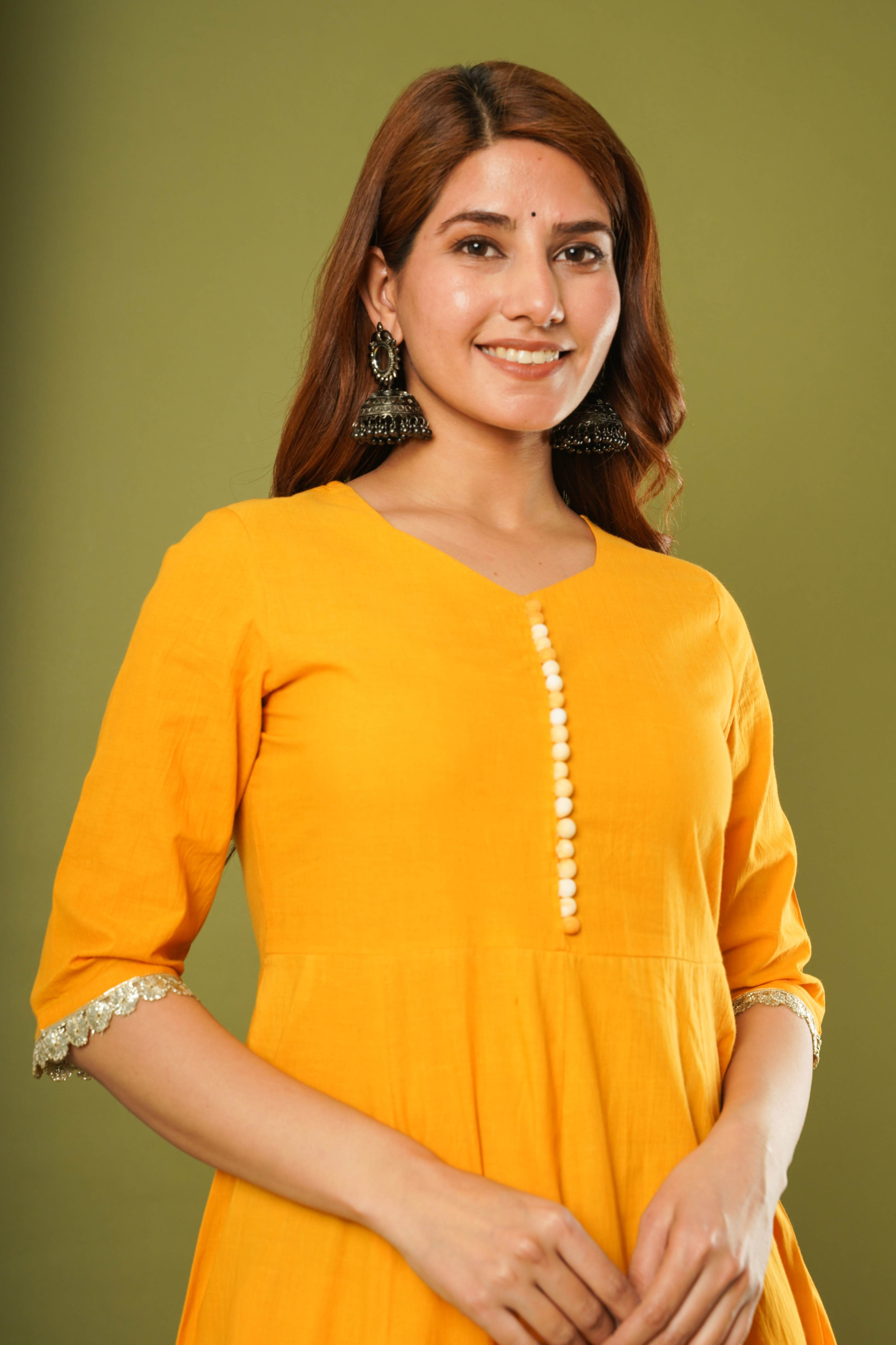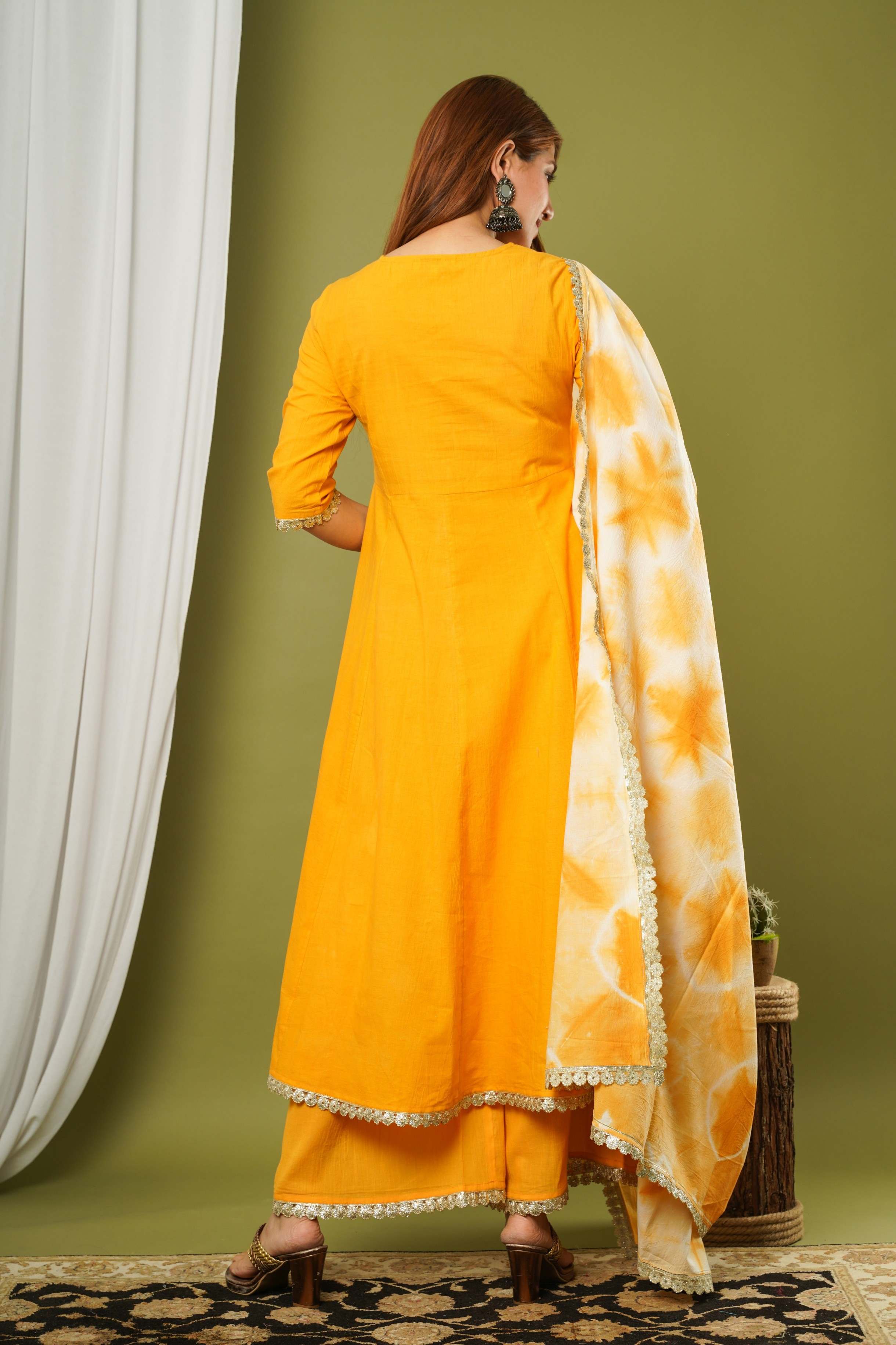 COTTON FLAYERD KURTA SET WITH TIE AND DYE DUPATTA