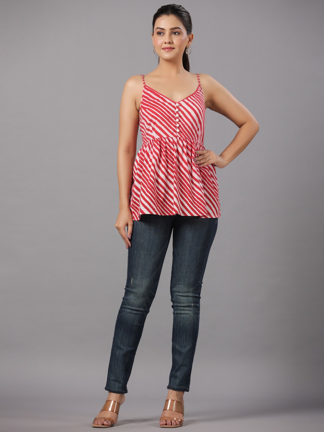 COTTON LEHERIYA FLARED STRAPPY TOP