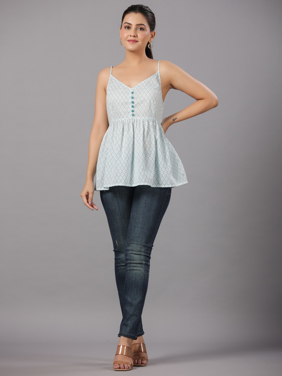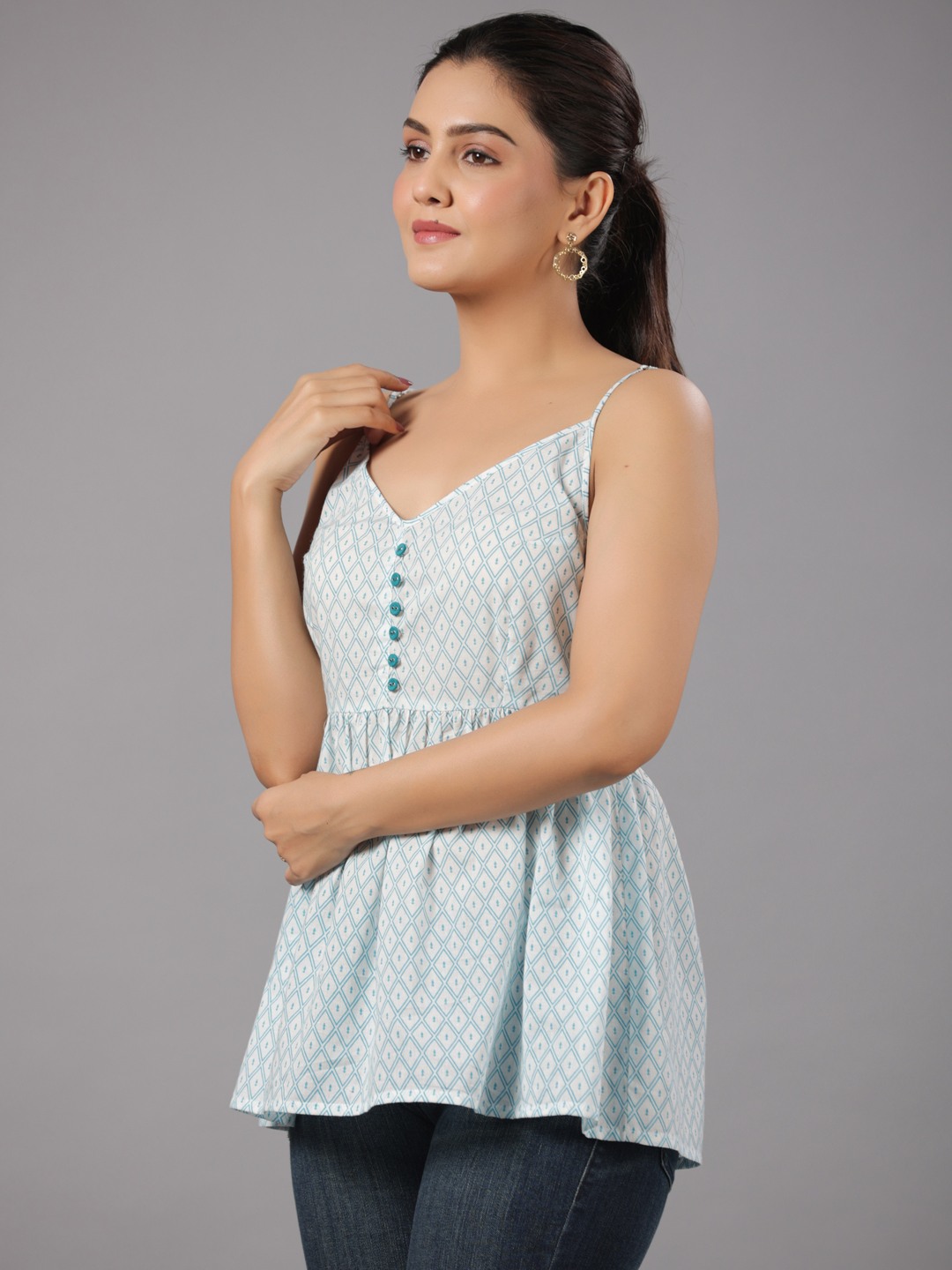 COTTON PRINTED FLARED TOP