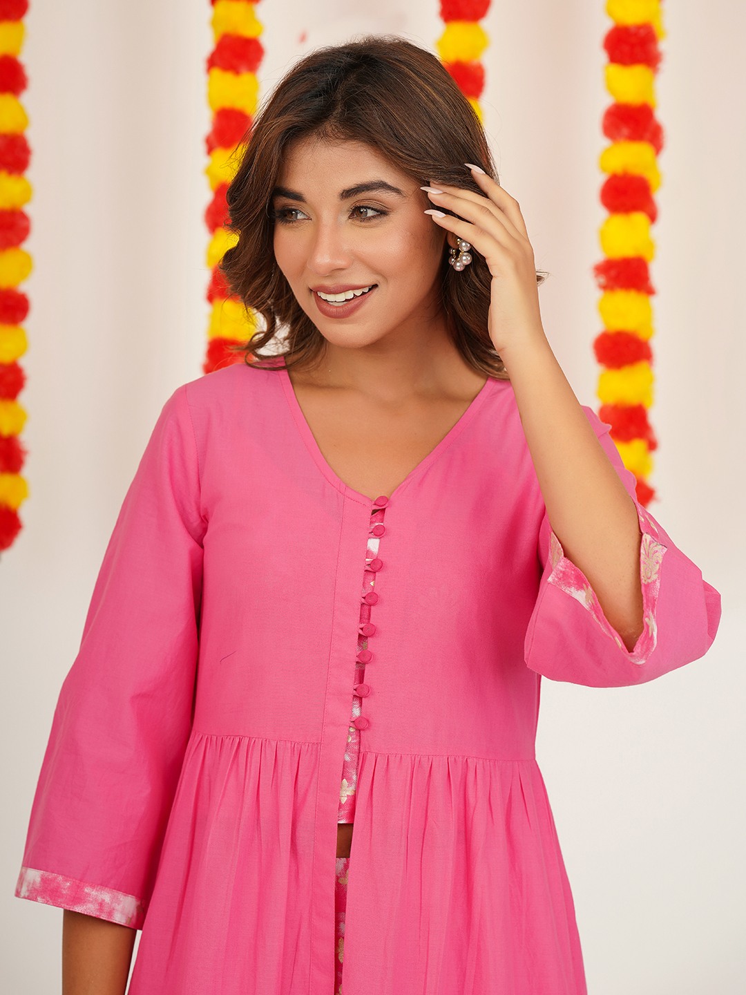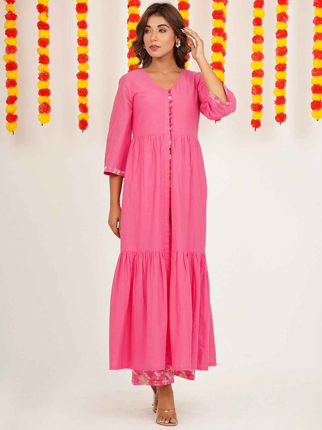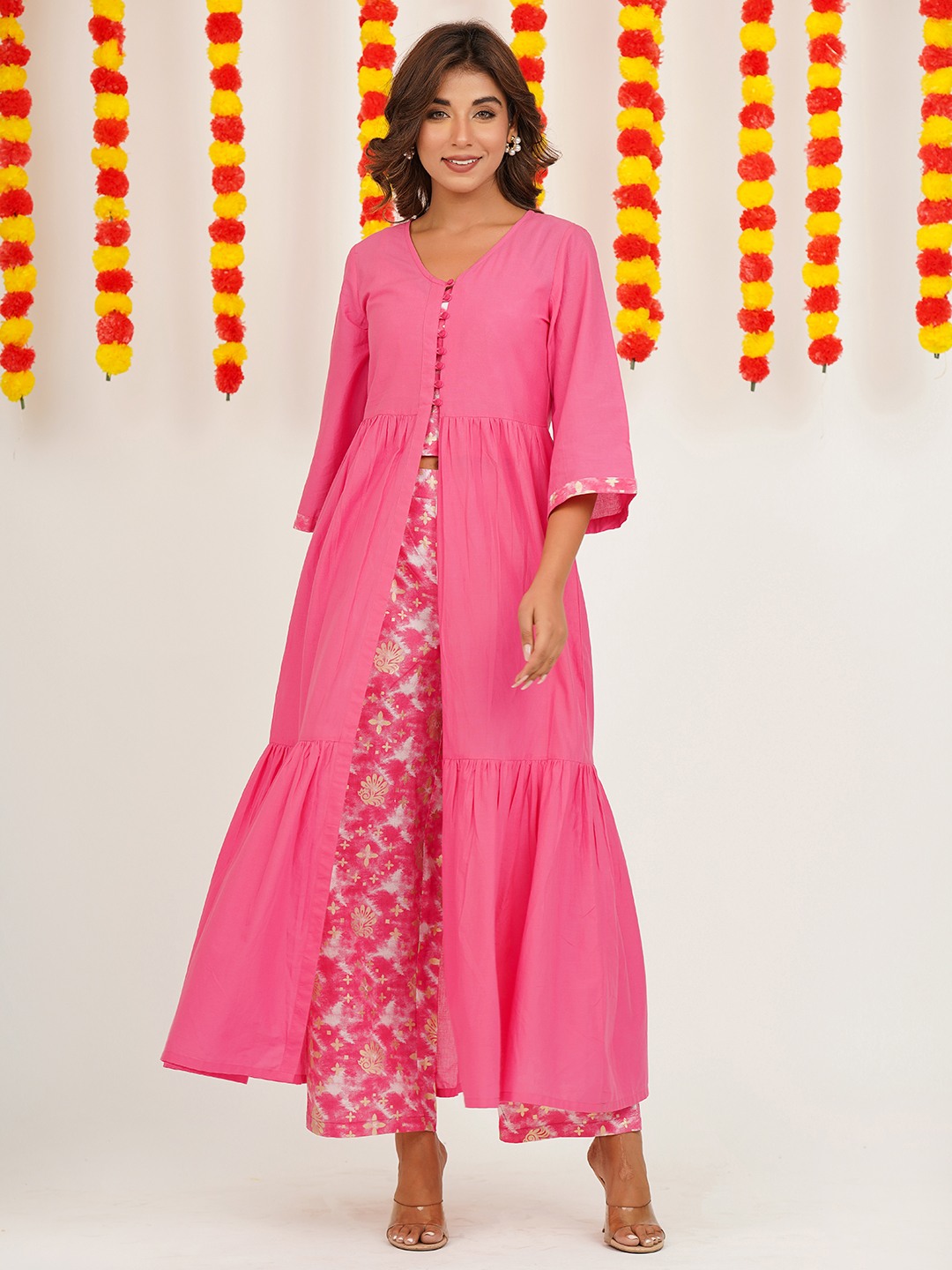 COTTON PRINTED TOP& PALAZZO WITH JACKET
