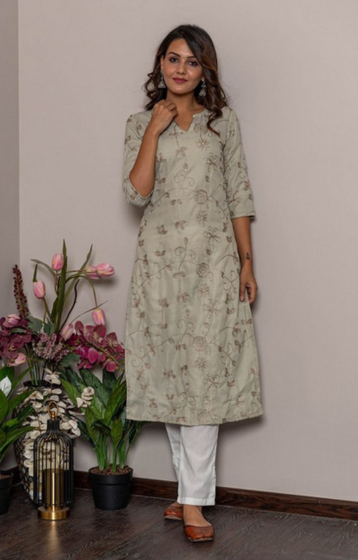 Precise elegance can come out from your dressing design with this grey casual emblish kurta with solid white pant. This set fabric is lightweight and assures the wearer a perfect fit & comfort. This stitched set beautified with latest trend & fashion as shown. Ideal for casual, kitty parties, outing & weekend get together. Pair it up with heels & stylish accessories. This attractive set will surely fetch you compliments for your rich sense of style. Note:- The actual product may differ slightly in color and design from the one illustrated in the images when compared with computer or mobile screen.