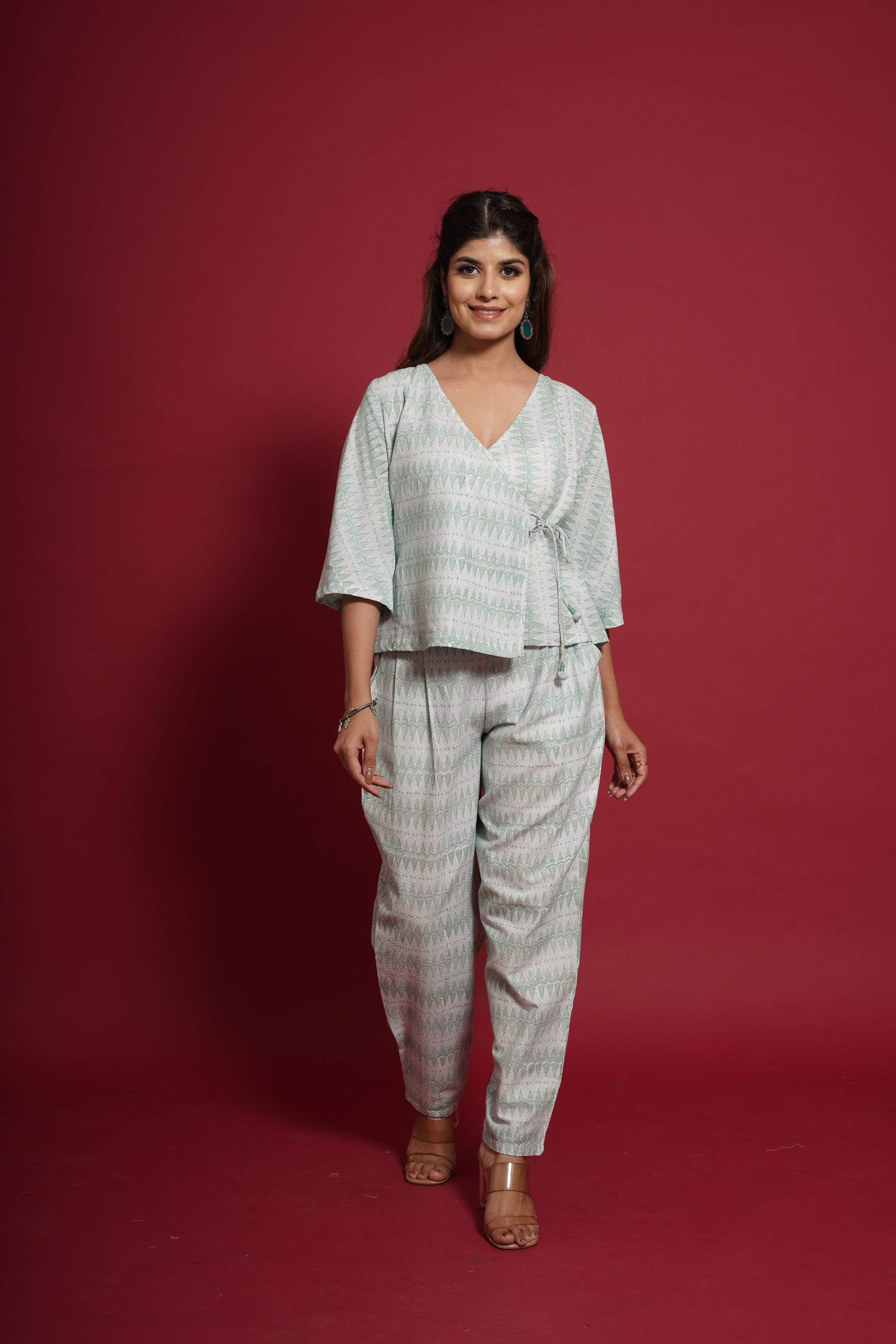 GREEN BLOCK PRINT COTTON CO-ORD SET