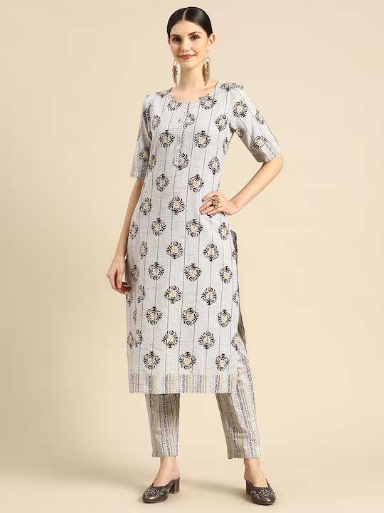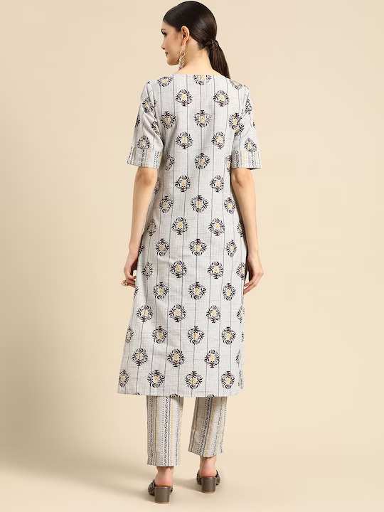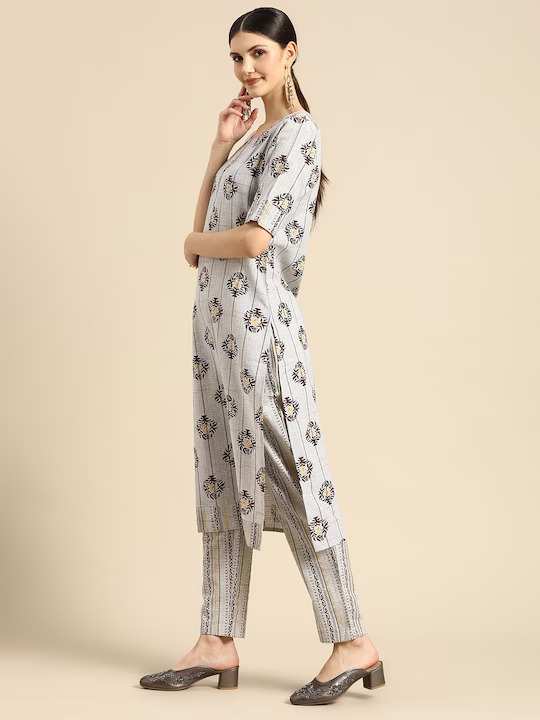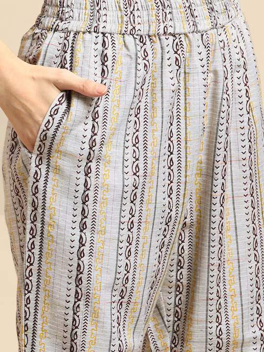 Women Grey Ethnic Motifs Printed Kurta with Trousers
