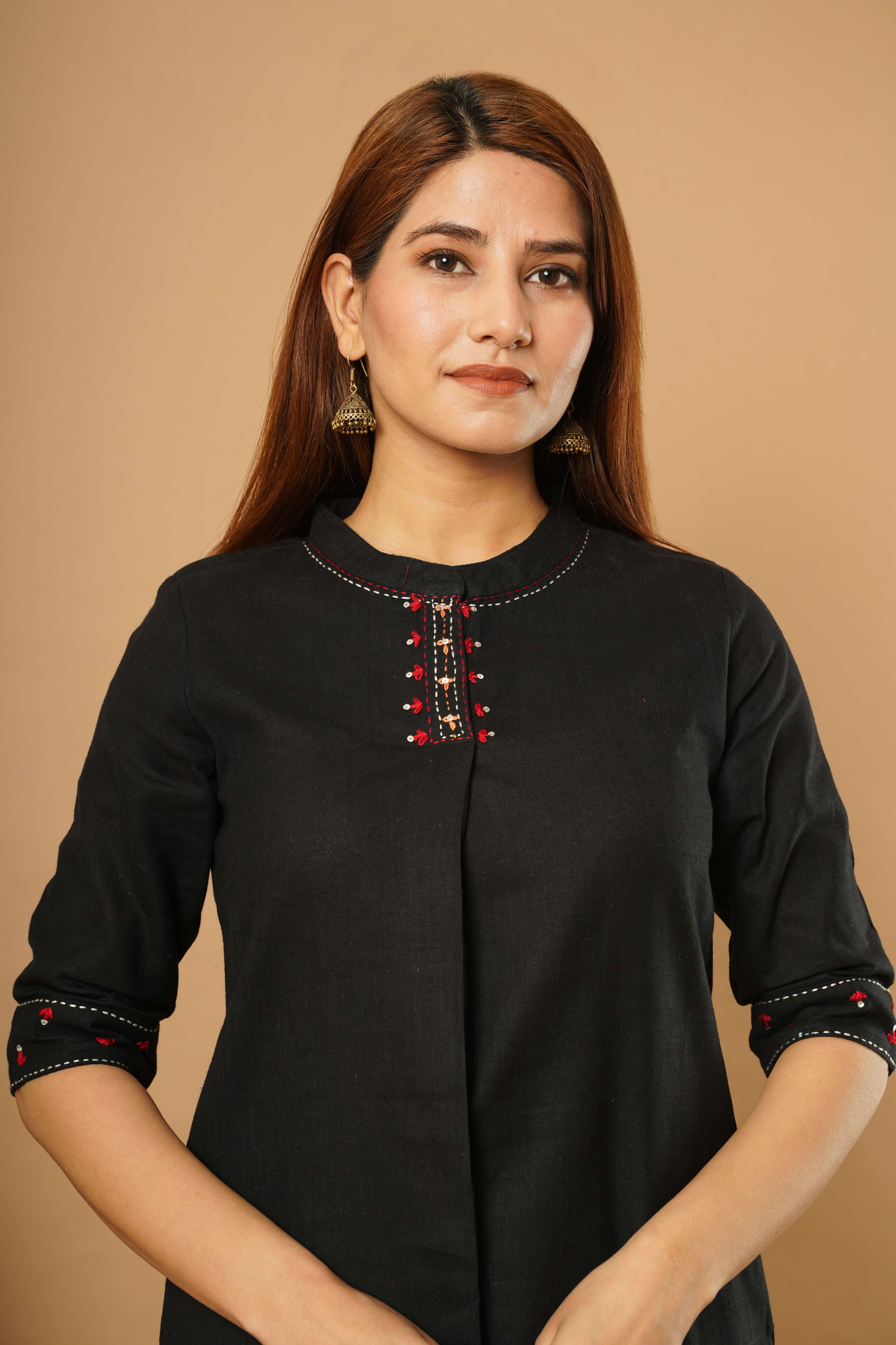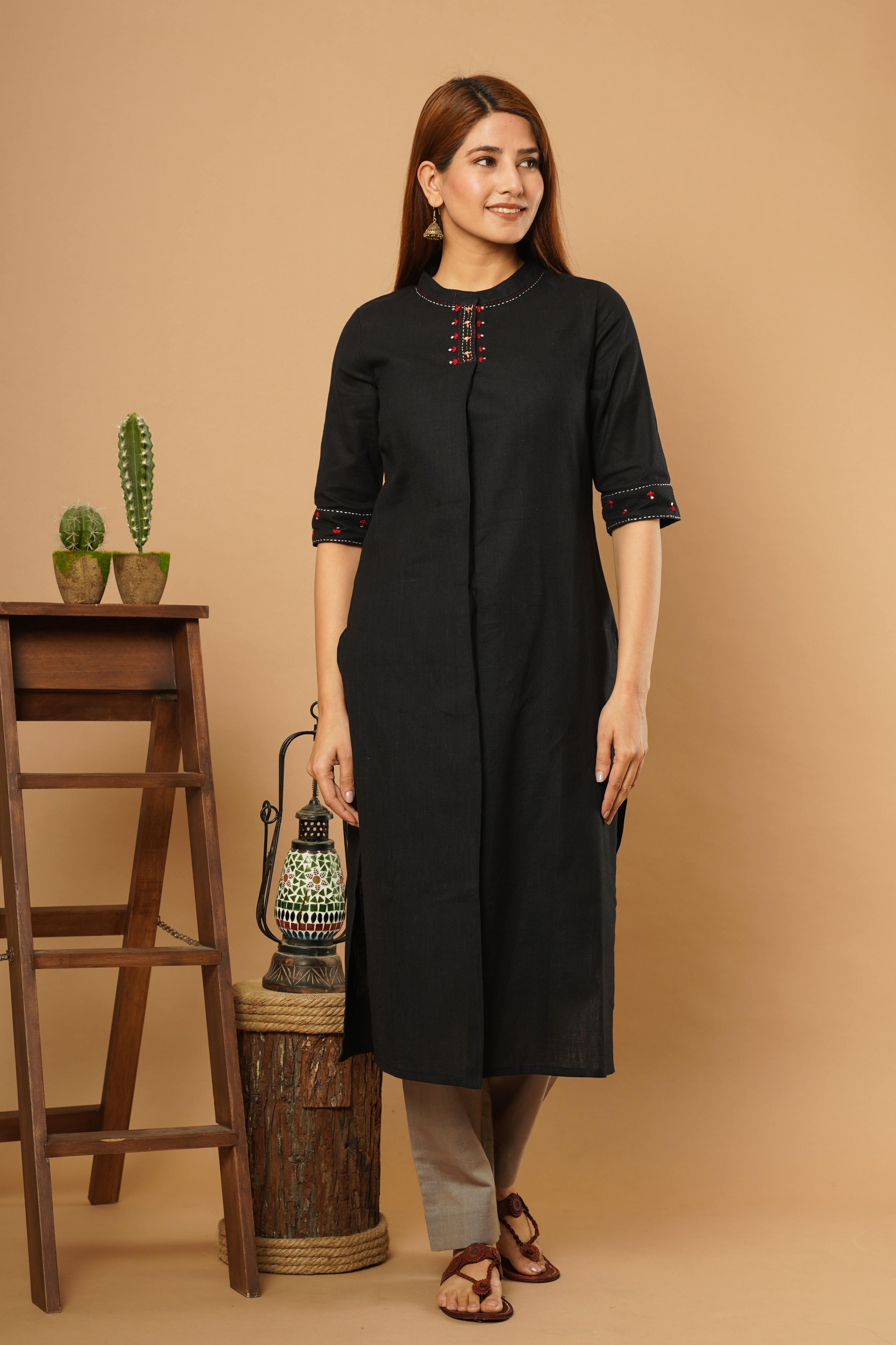 KHADI BOX PLEAT THREAD EMBLIISH KURTA
