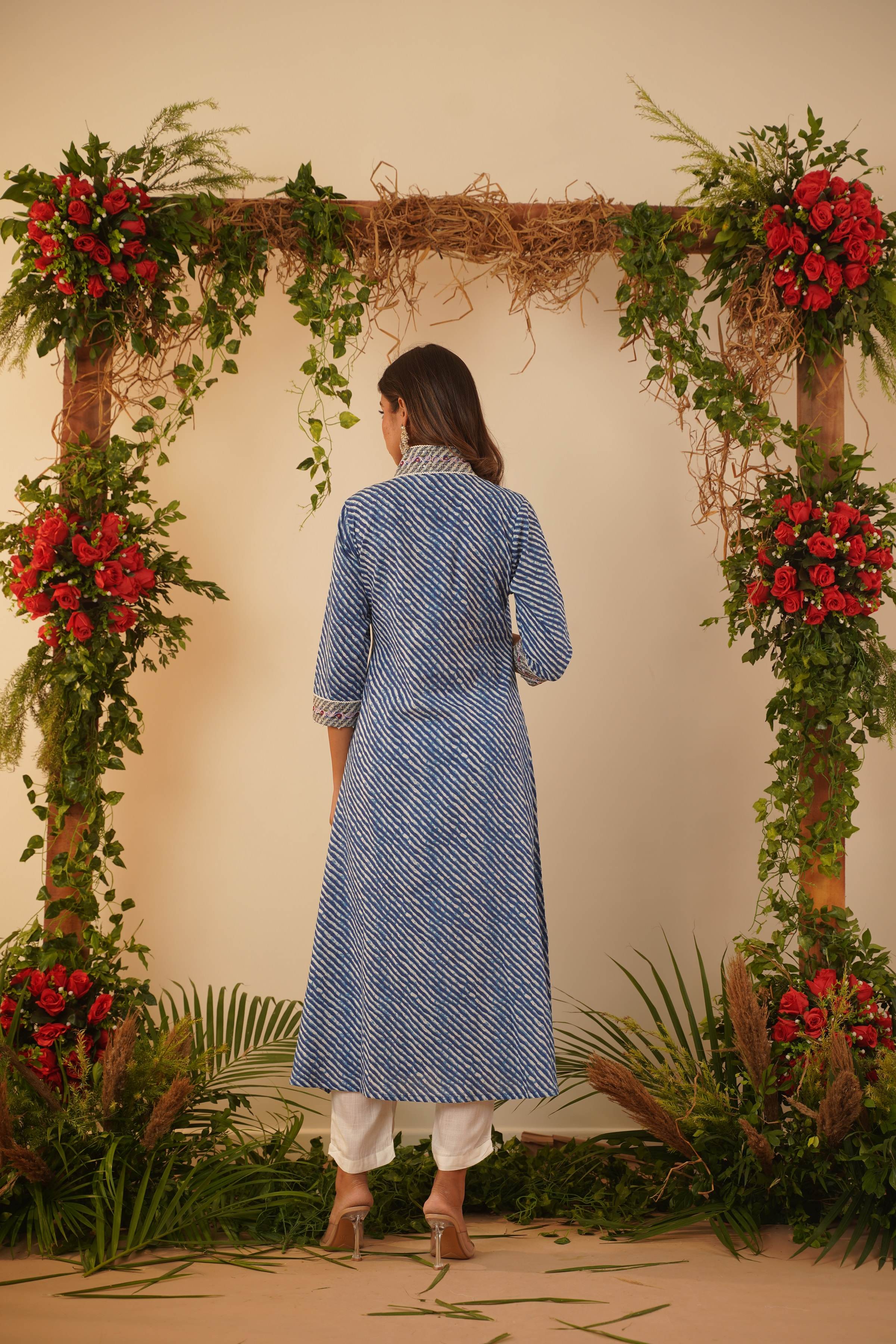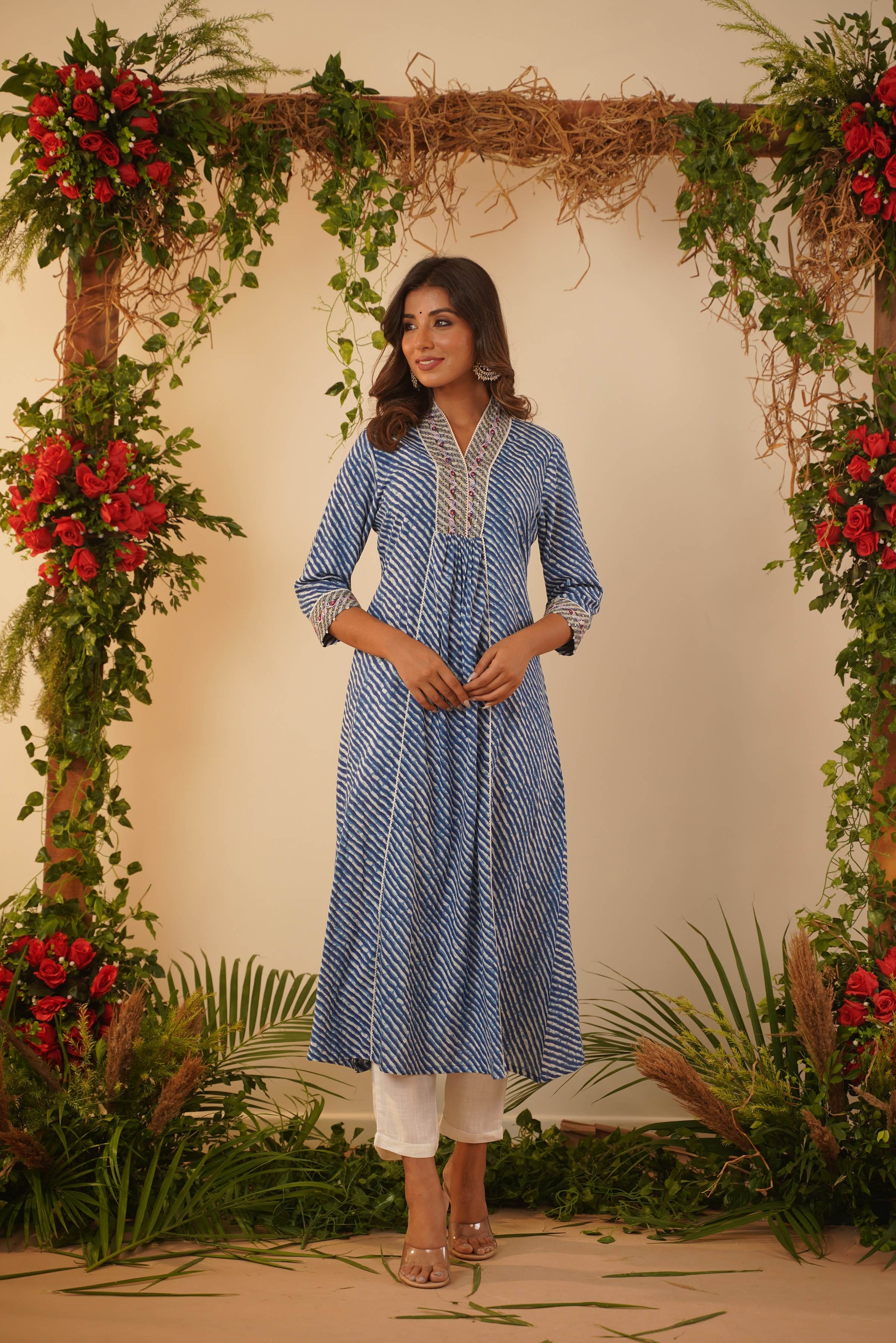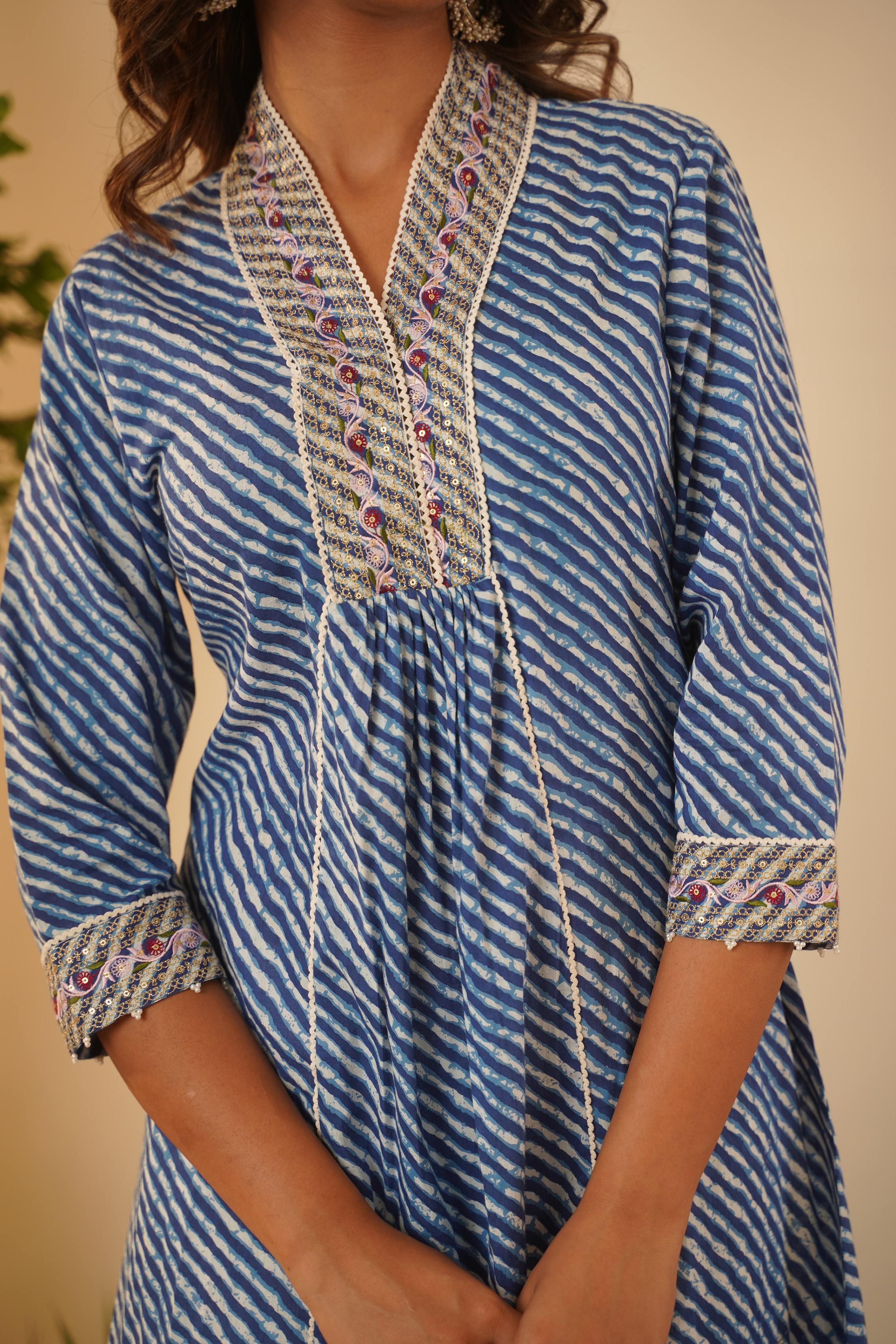 Cotton Leriya Embroidery Lace A-Line Kurta & Solid Pant