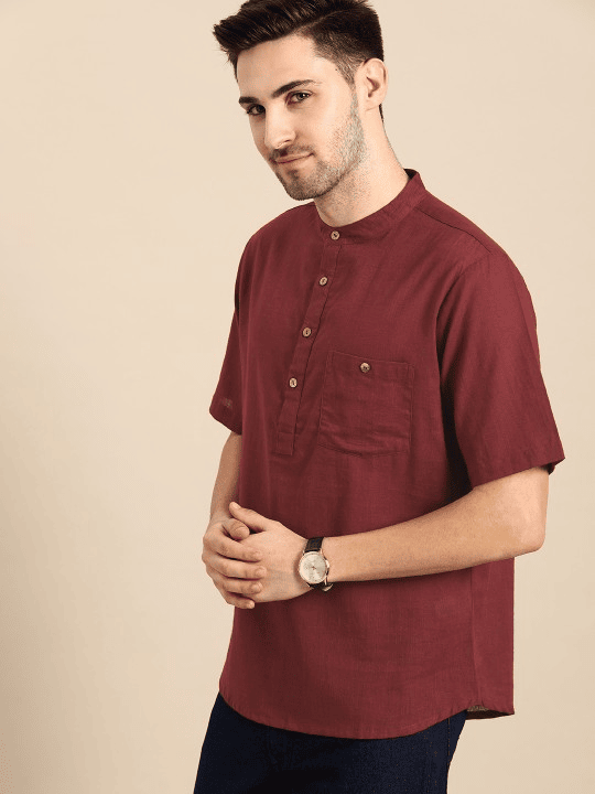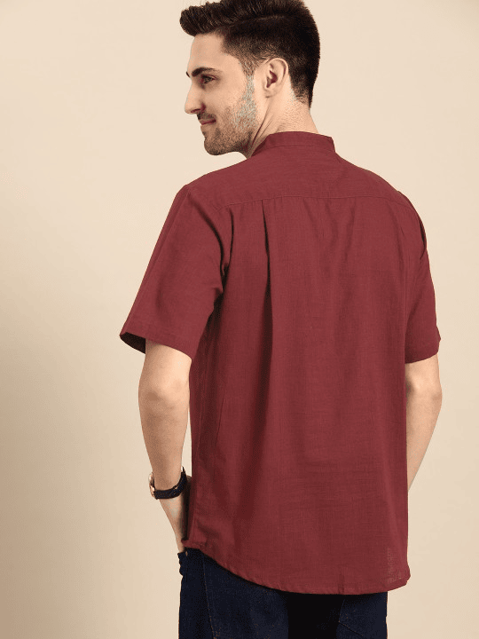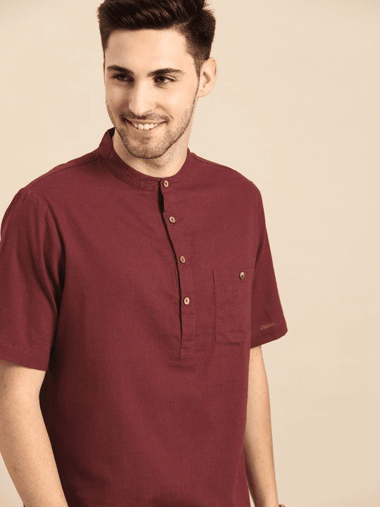 Men Maroon Pure Cotton Solid Kurta With Pocket