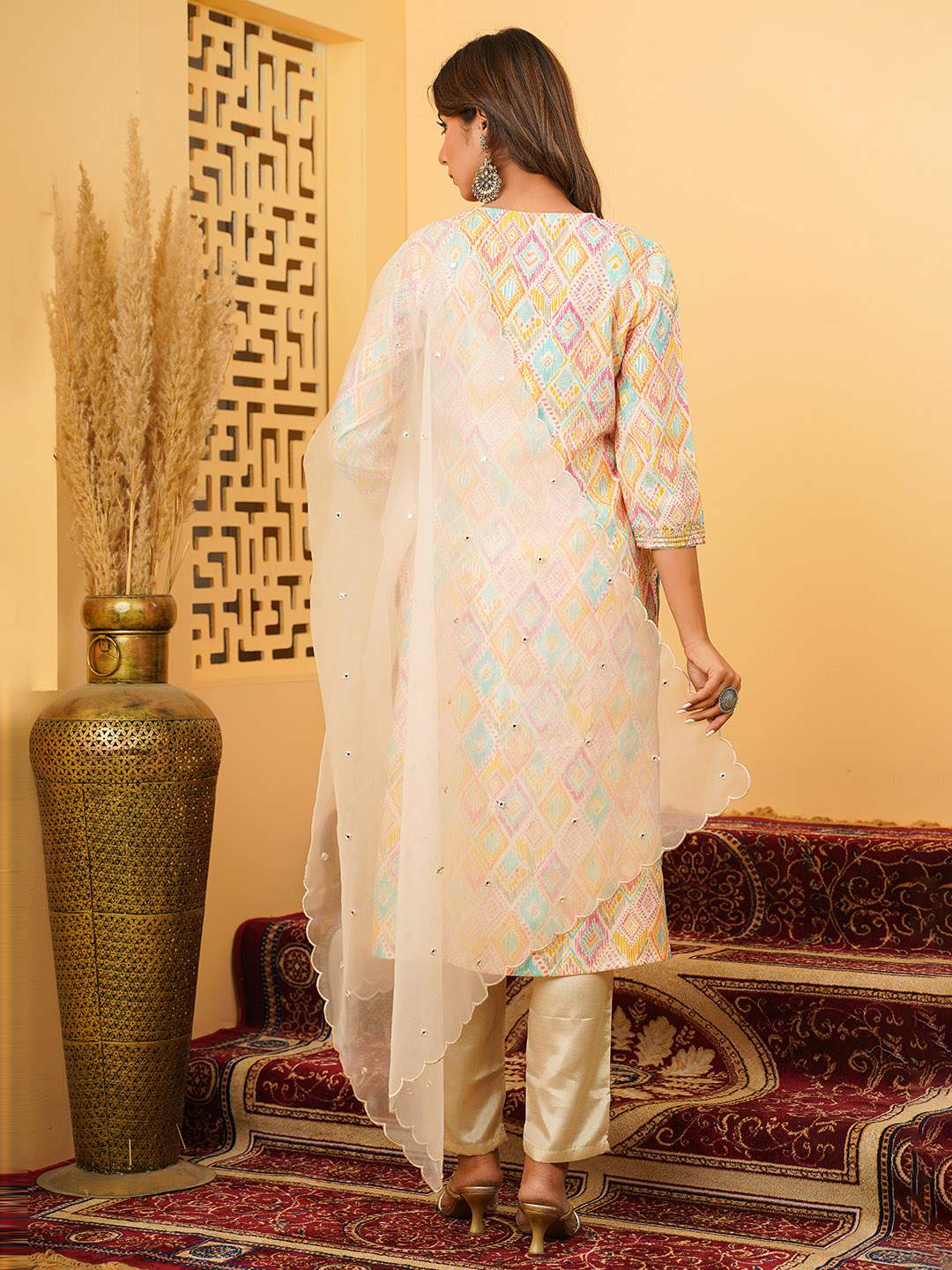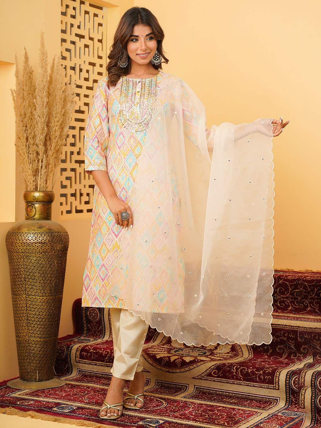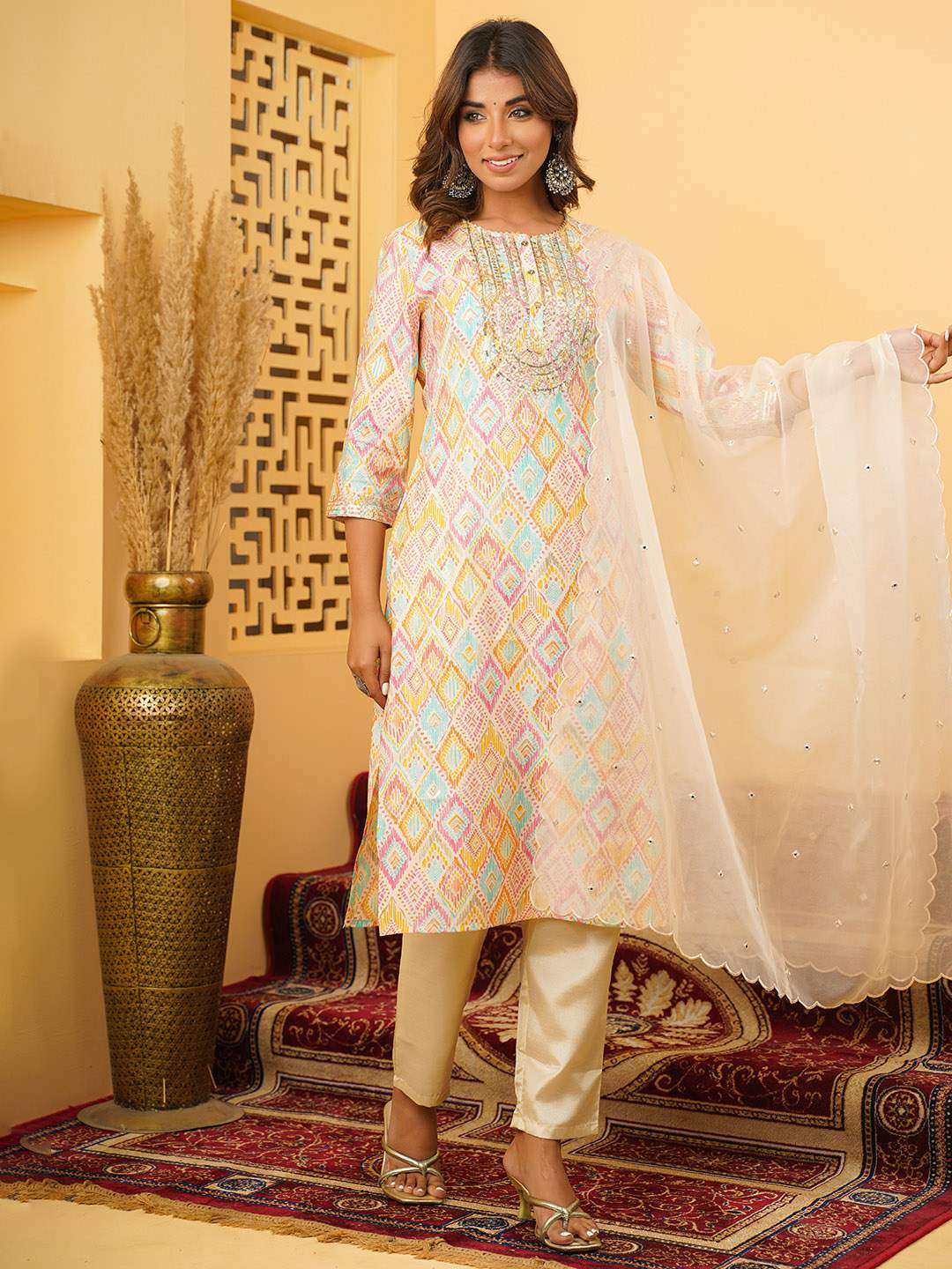 MUSLIN EMBROIDERED KURTA PANT WITH DUPATTA
