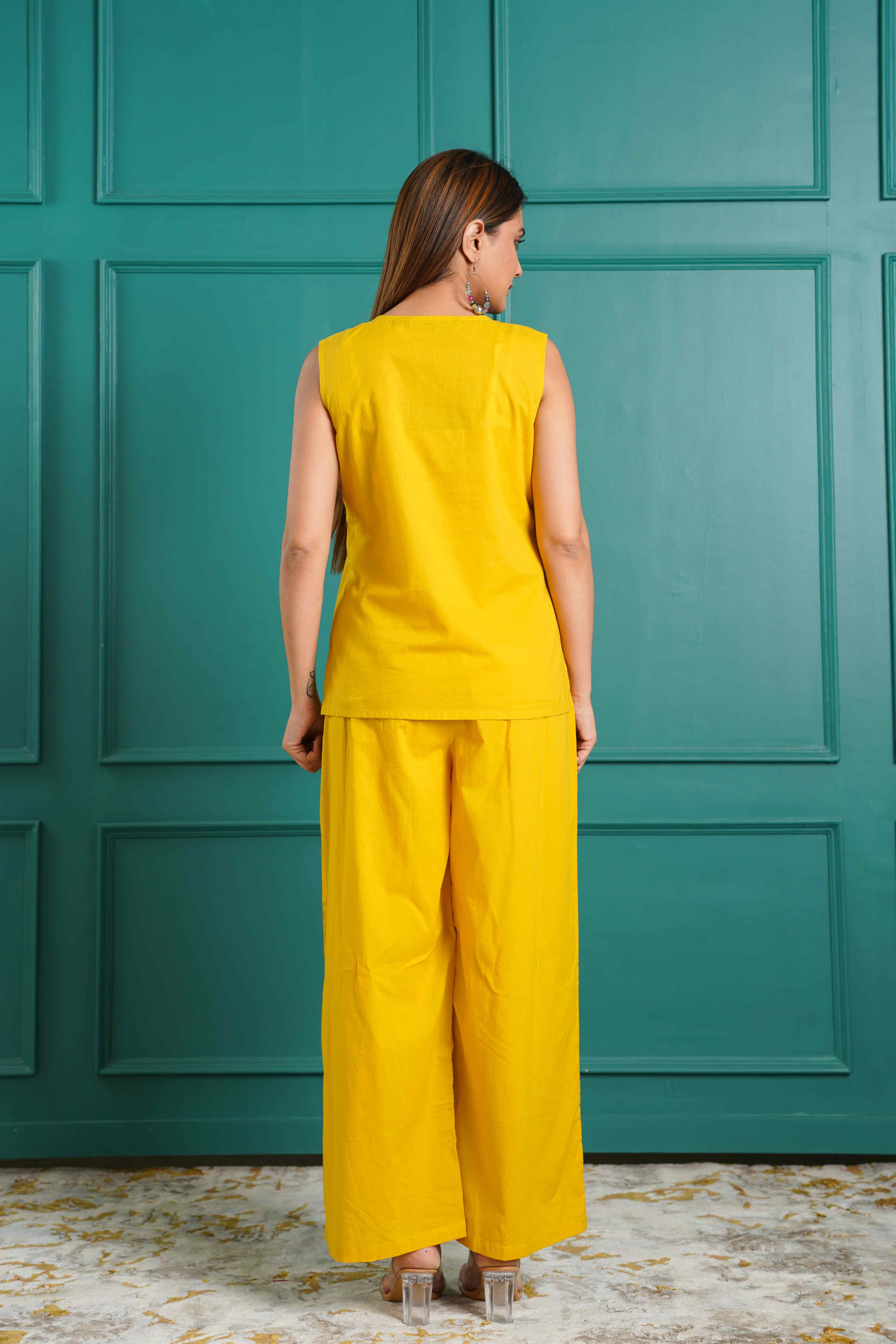 MUSTARD FLORAL EMBROIDERED CO-ORD SET