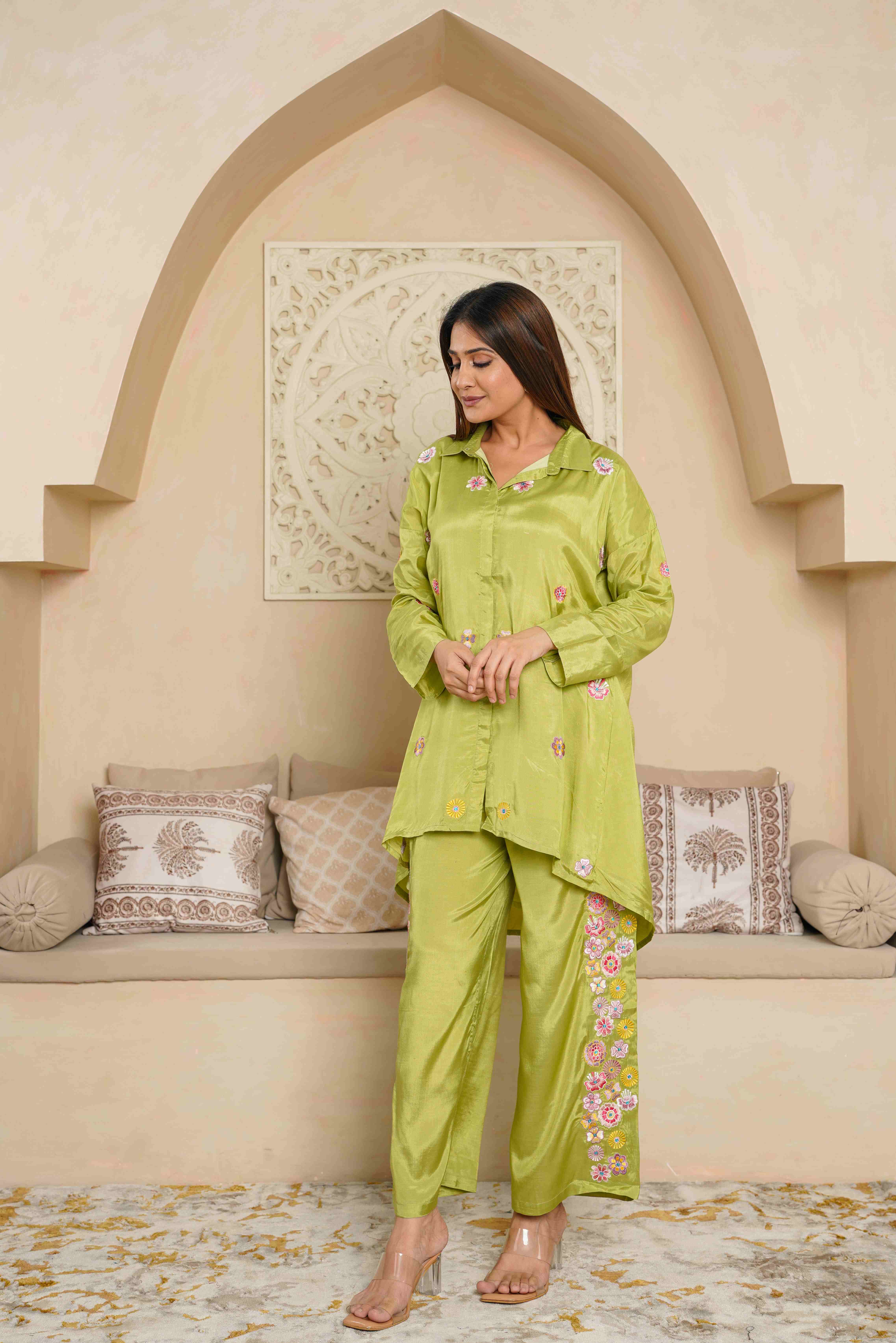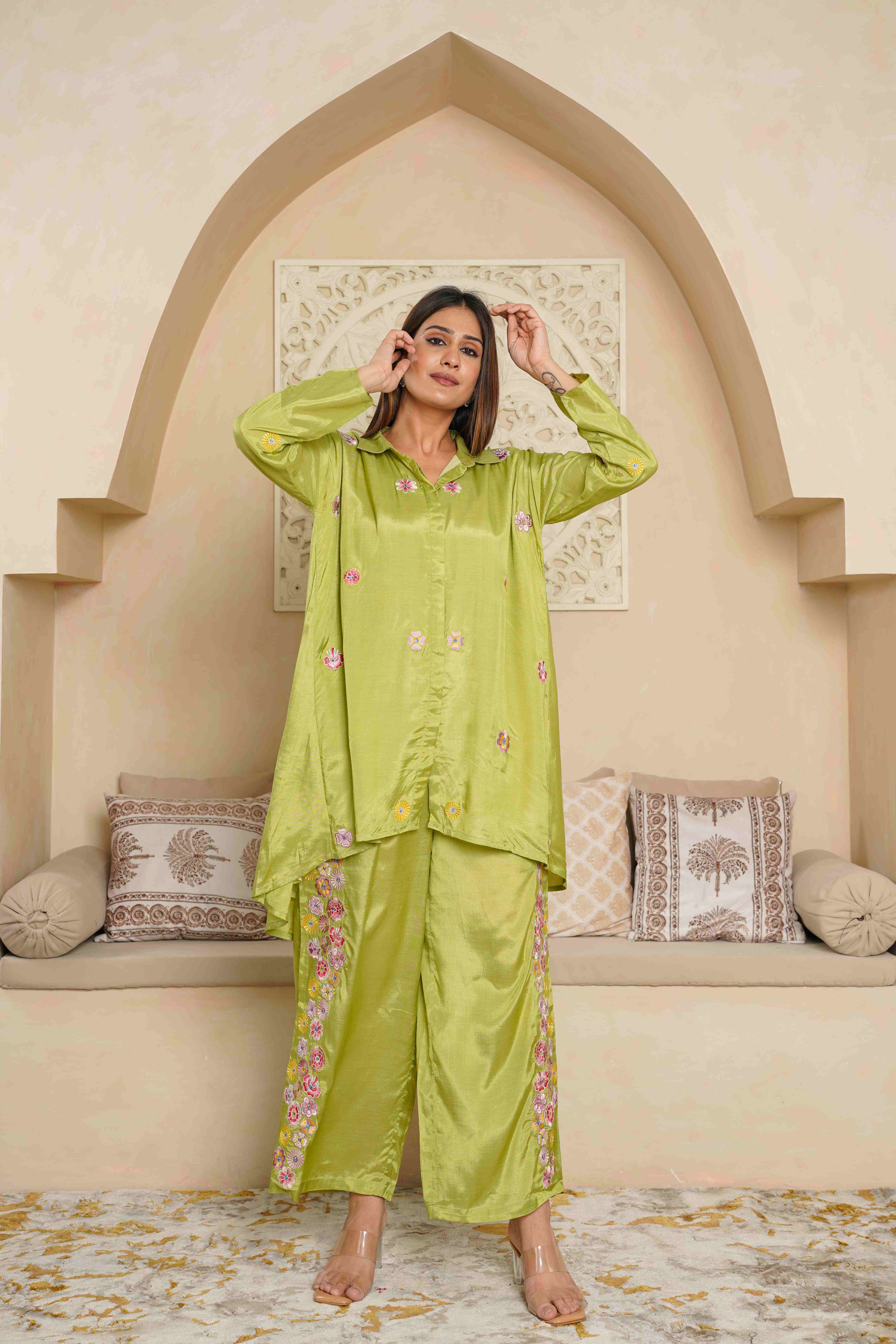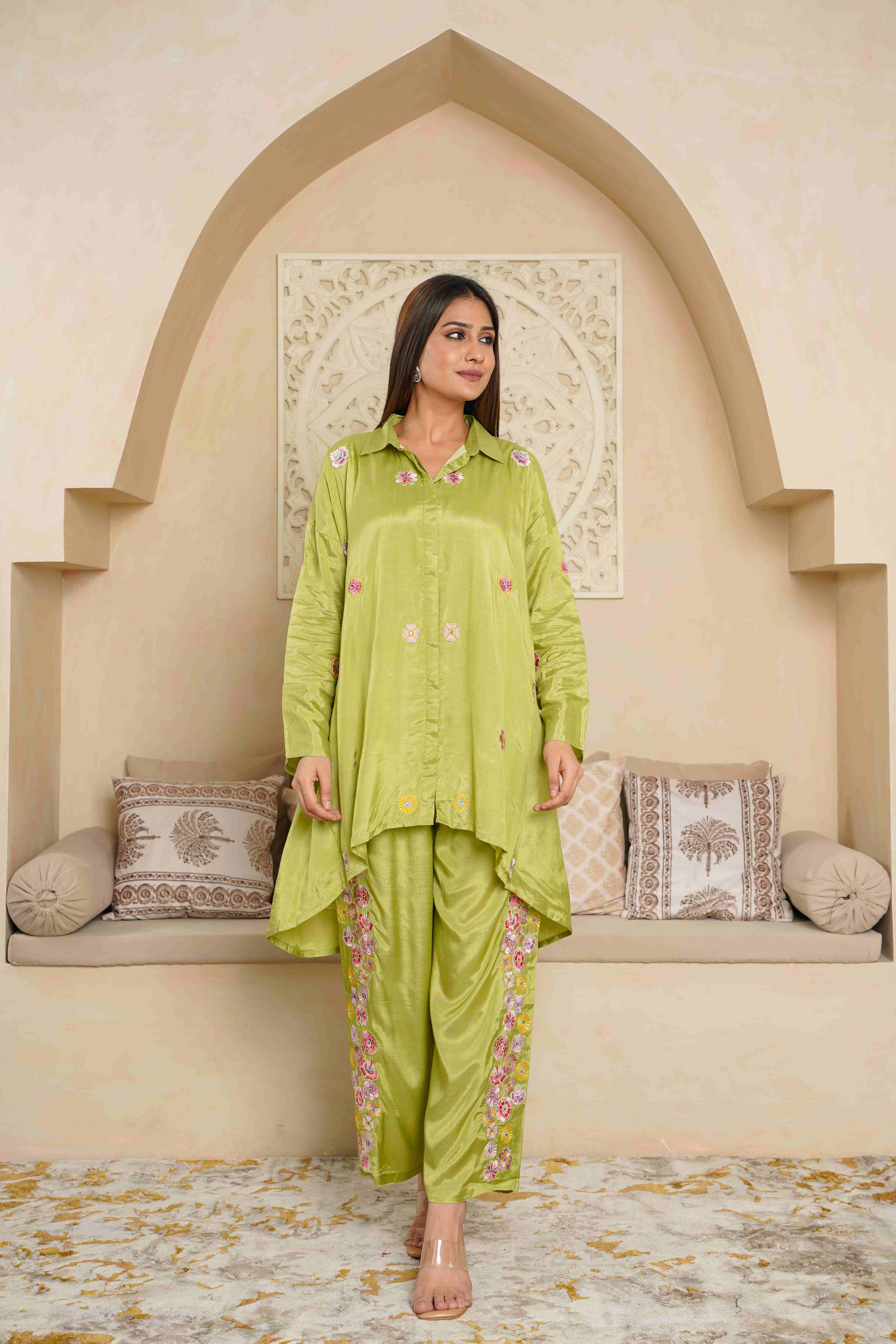 PARROT GREEN EMBROIDERED LOOSE FIT CO-ORD SET
