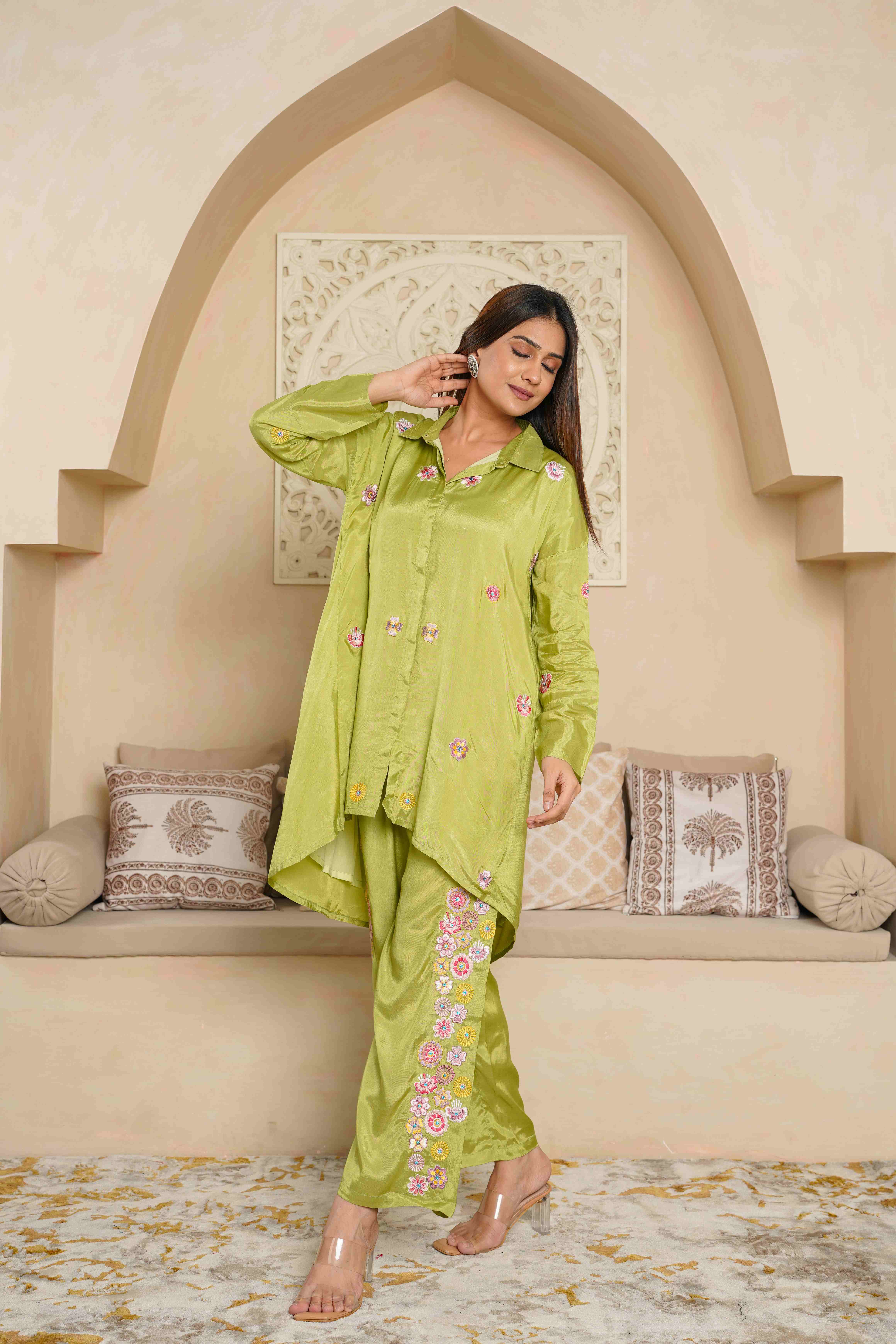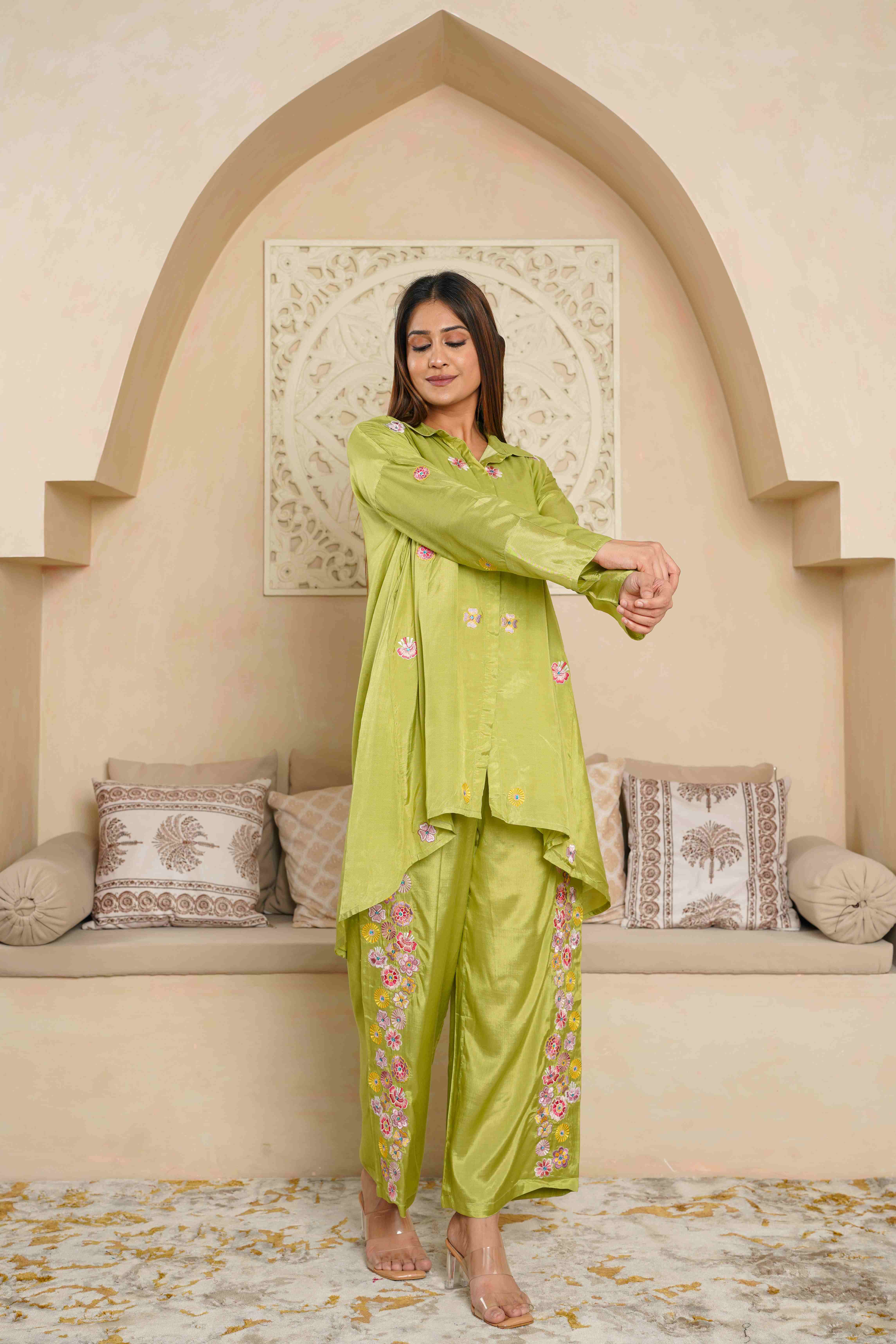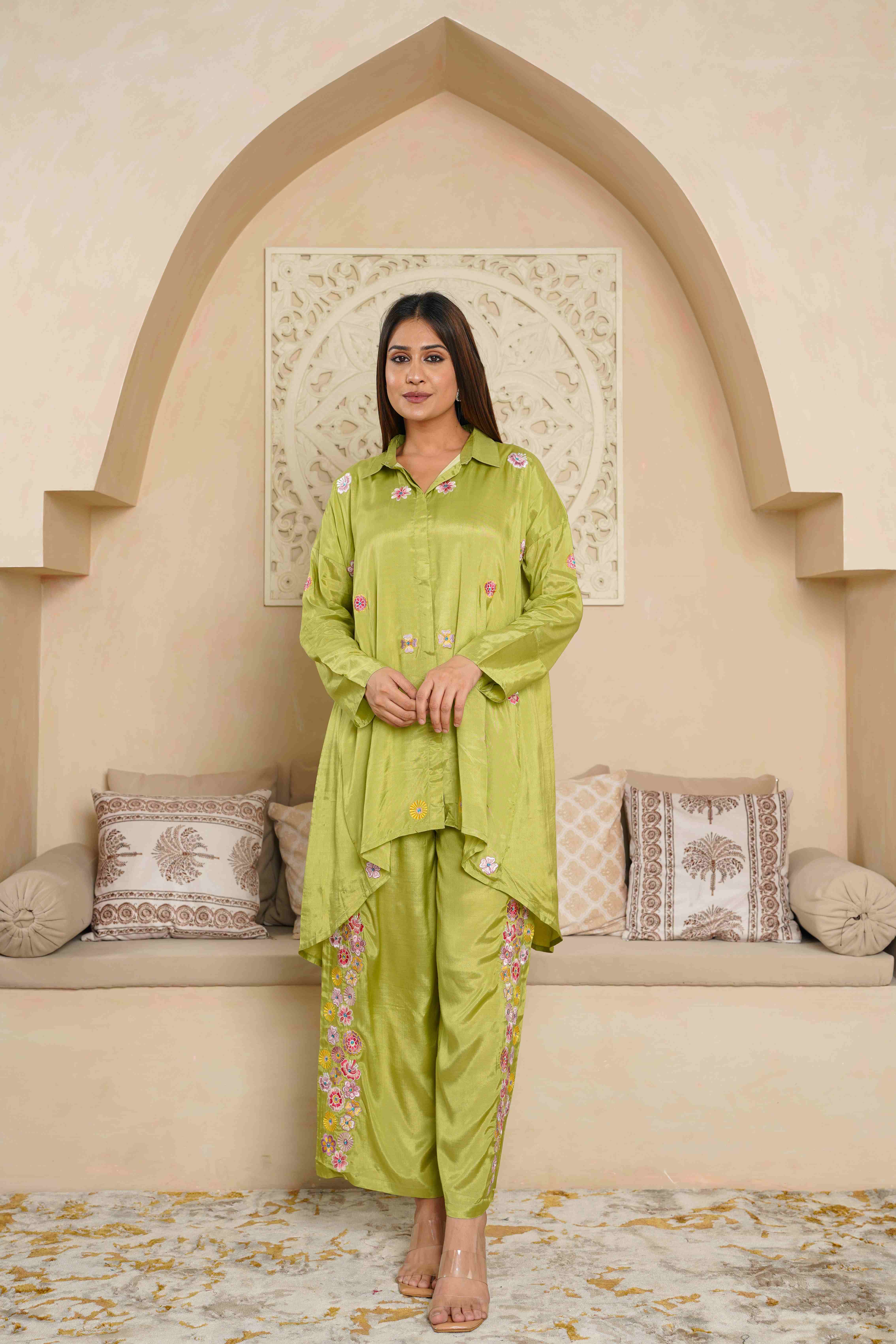 PARROT GREEN EMBROIDERED LOOSE FIT CO-ORD SET
