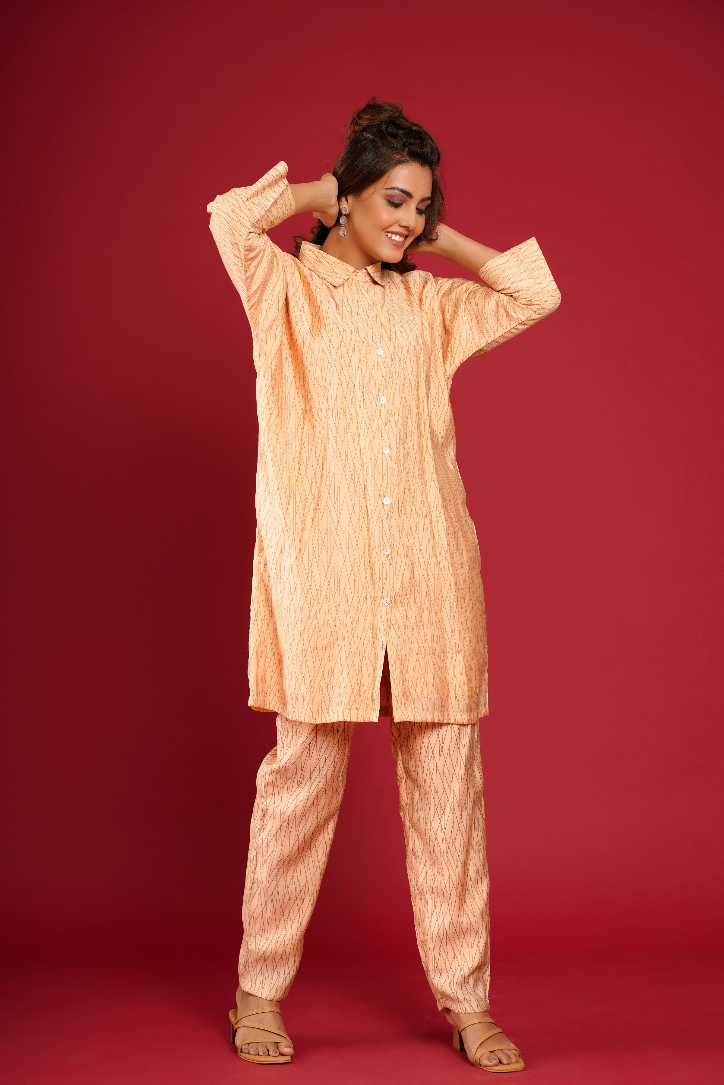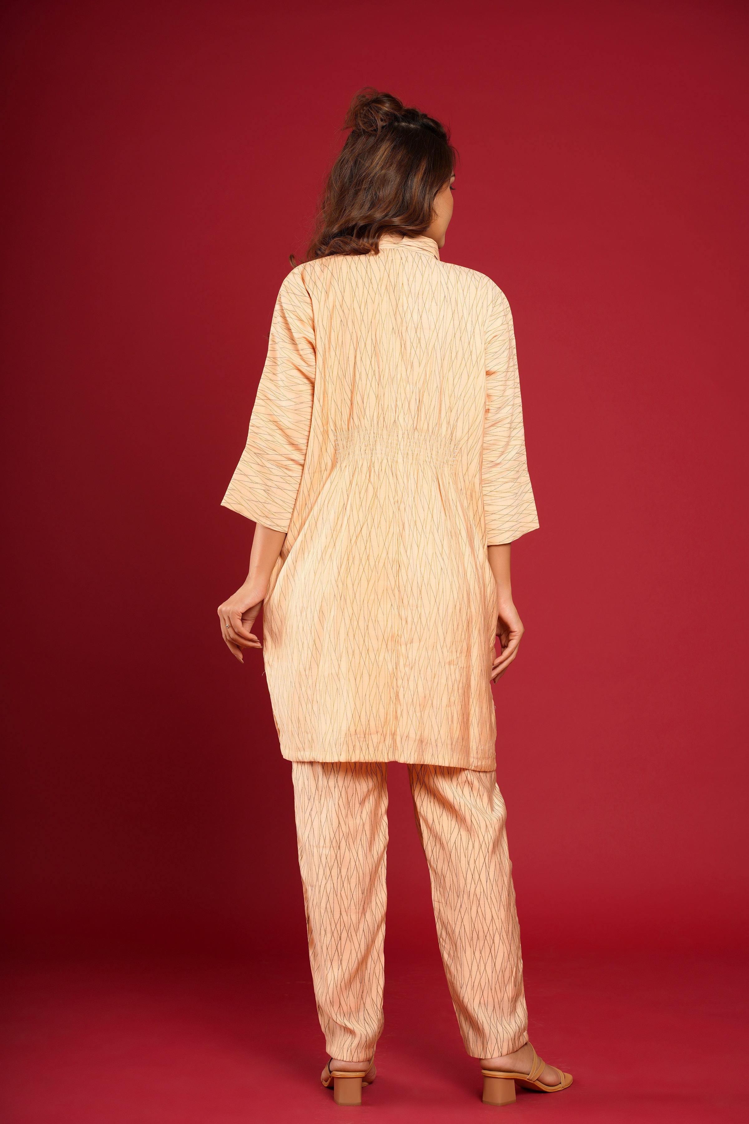 PEACH MUSLIN PRINTED CO-ORD SET