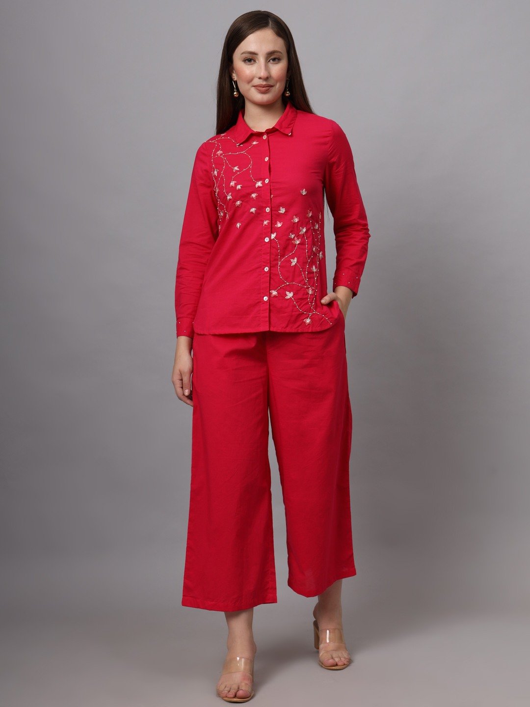 PINK COTTON EMBROIDERED CO-ORD SET