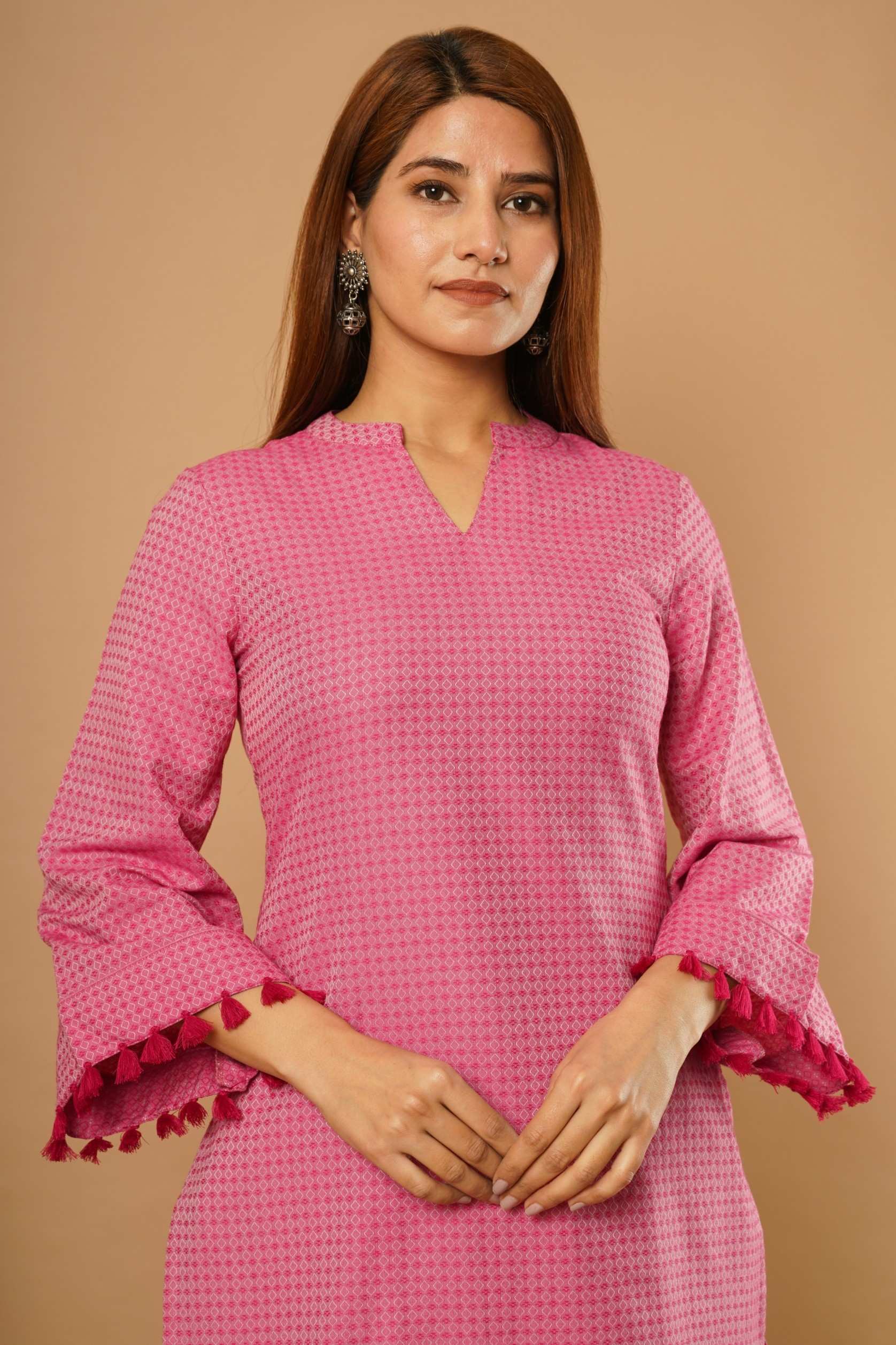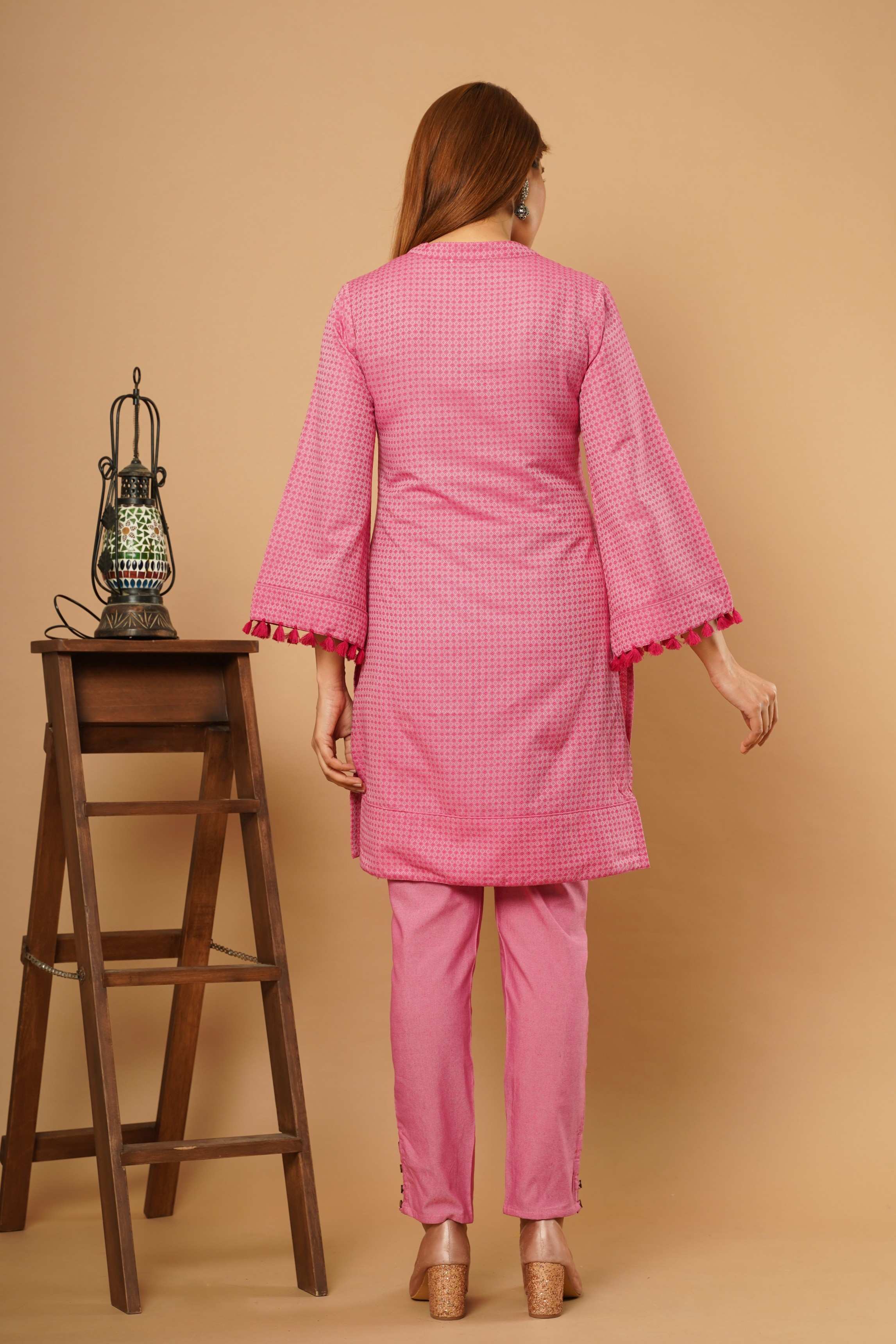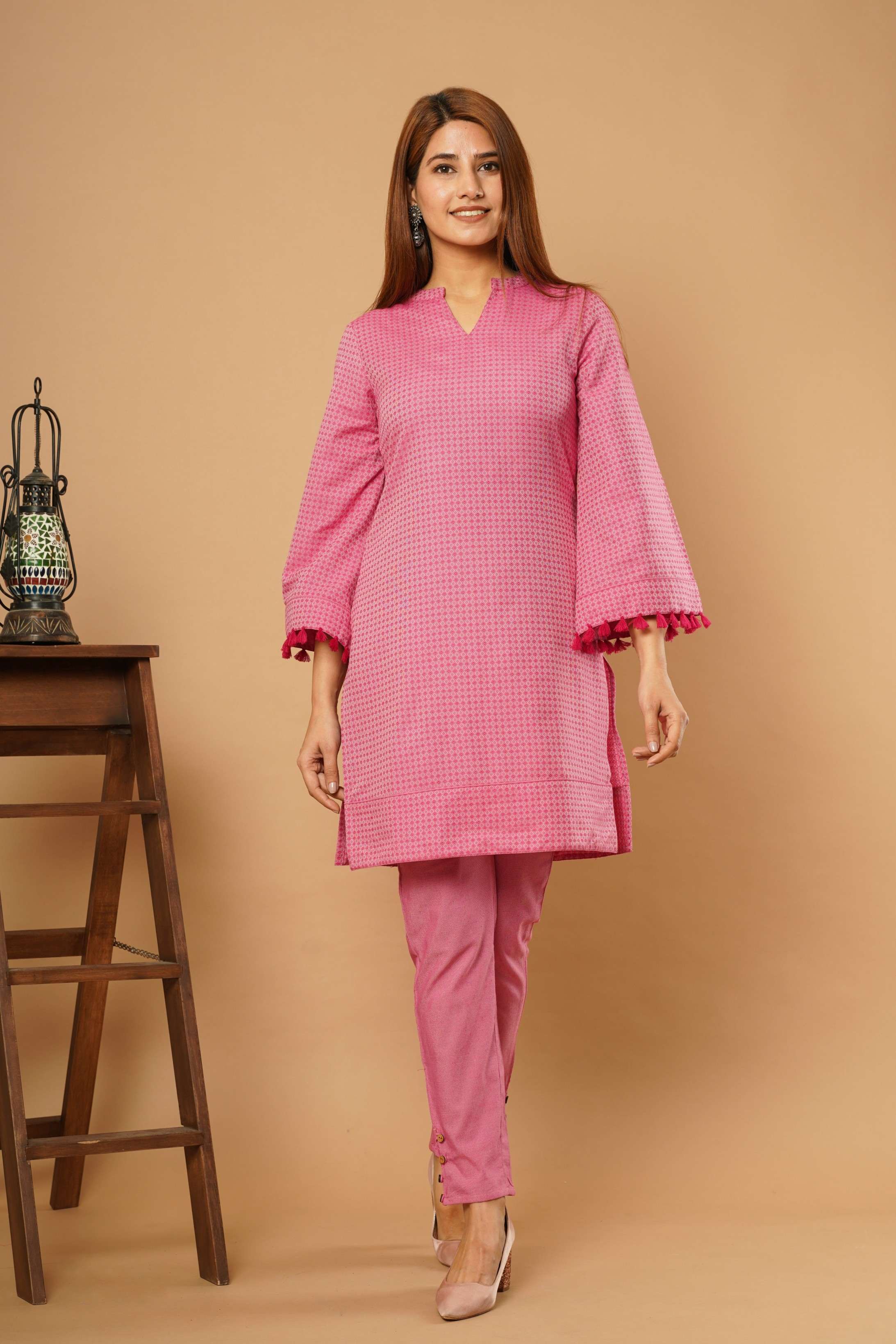 POLY COTTON SHORT KURTA TESSAL DETAIL KURTA SET