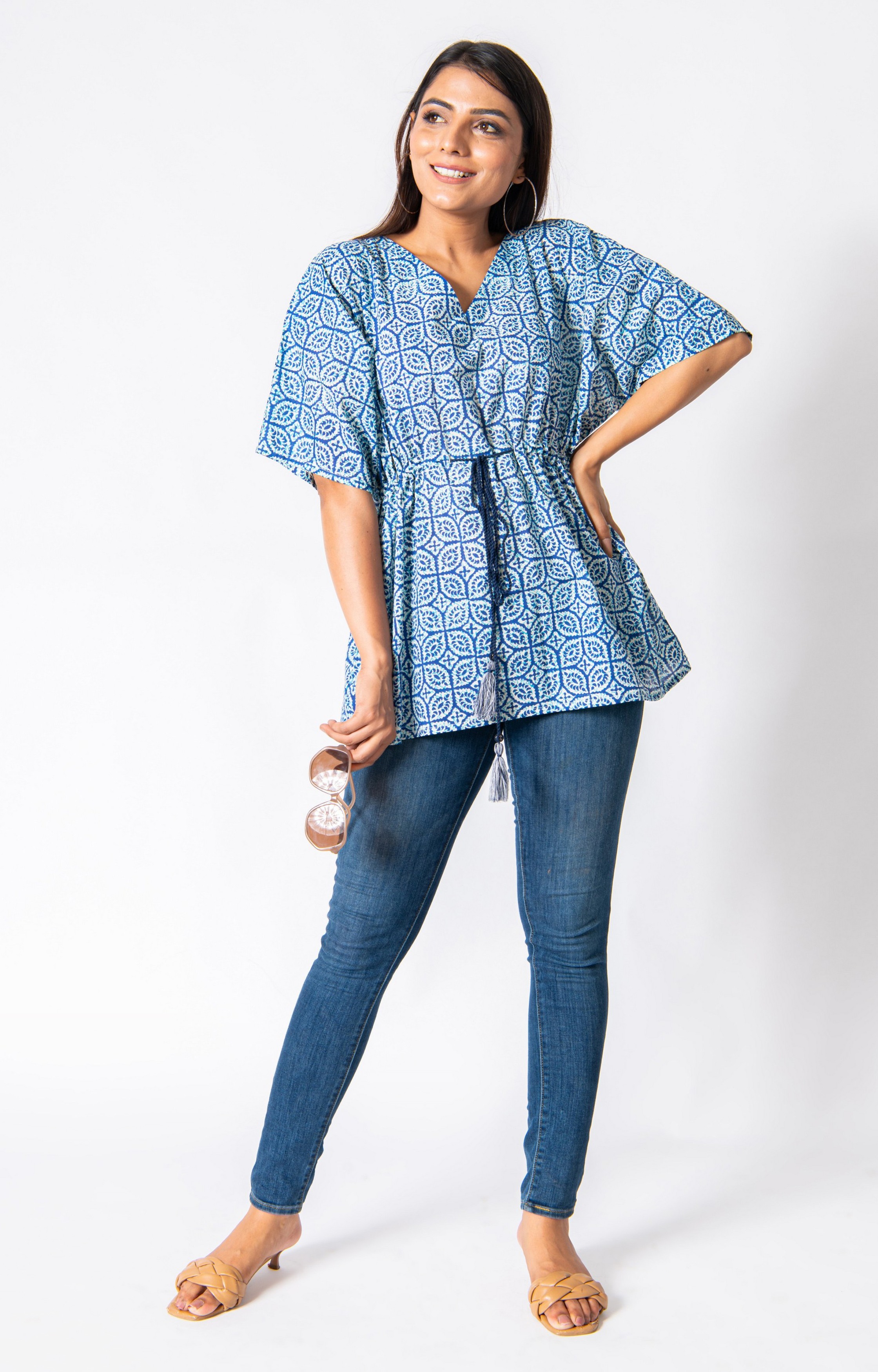 BLUE PRINTED COTTON KAFTAN