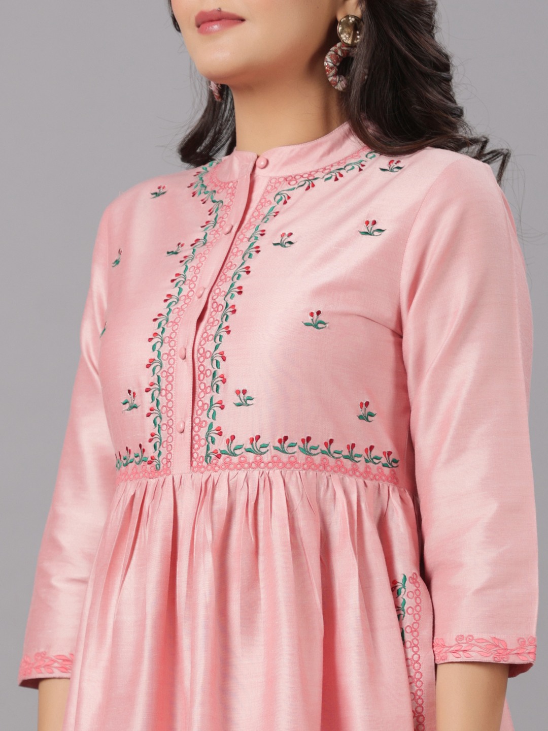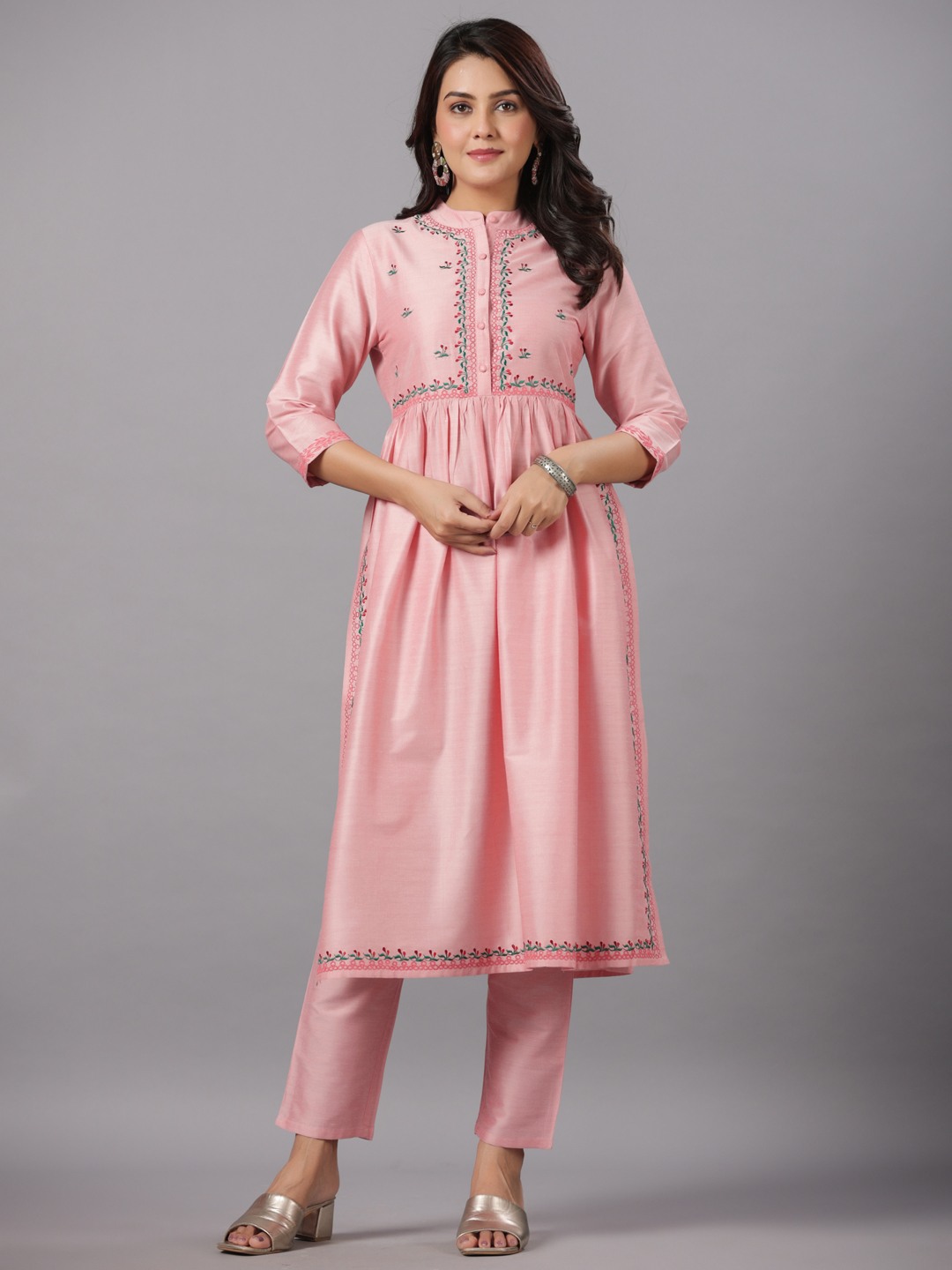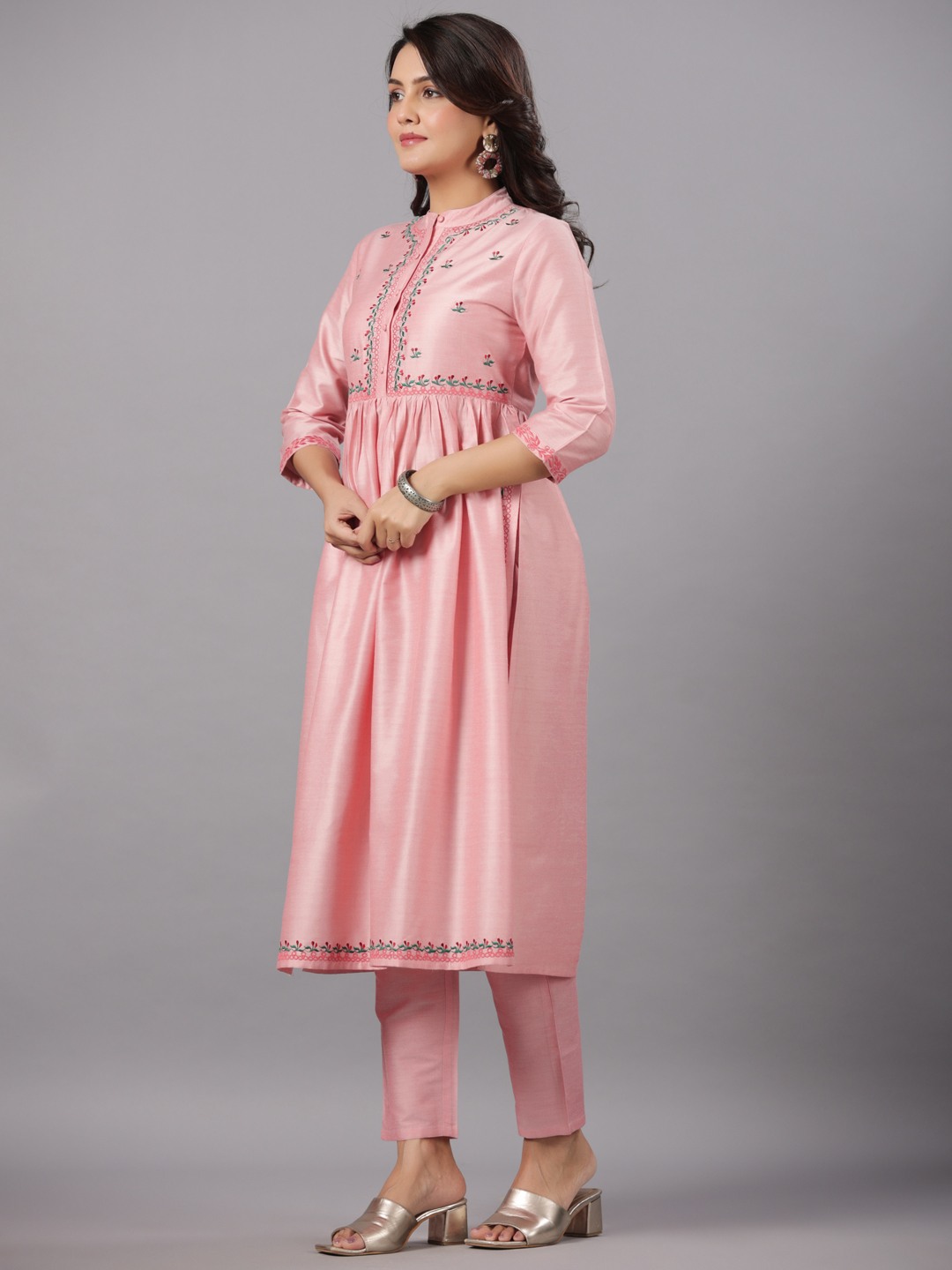 Pst Embroidery Gathered Kurta With Solid Pant