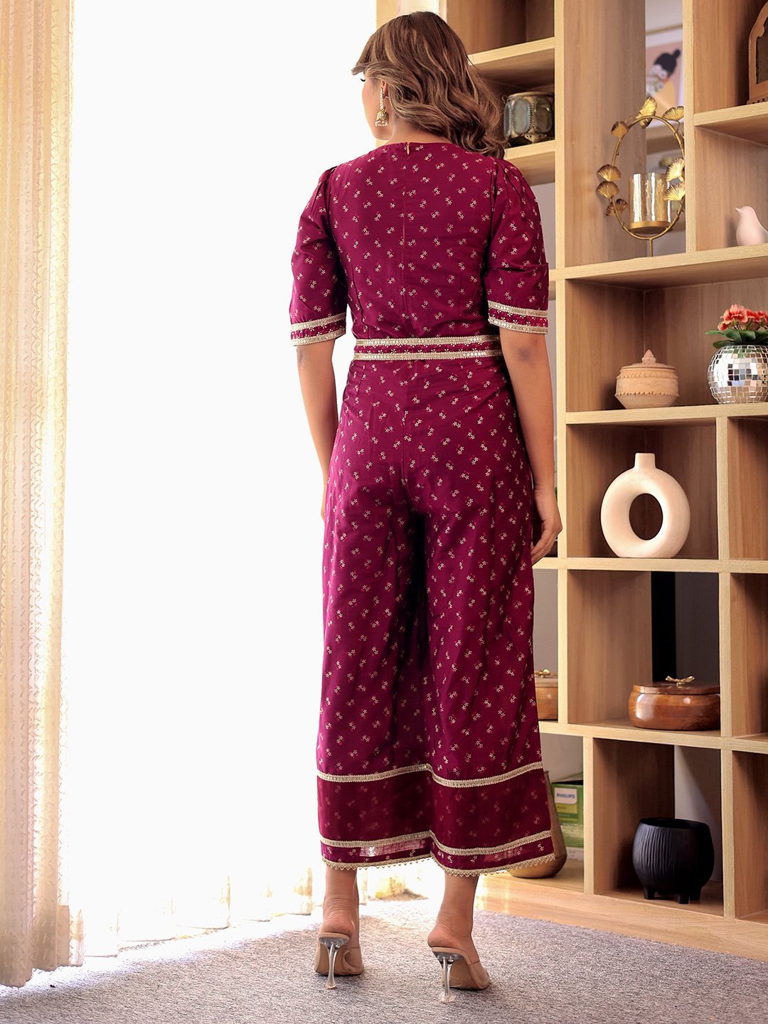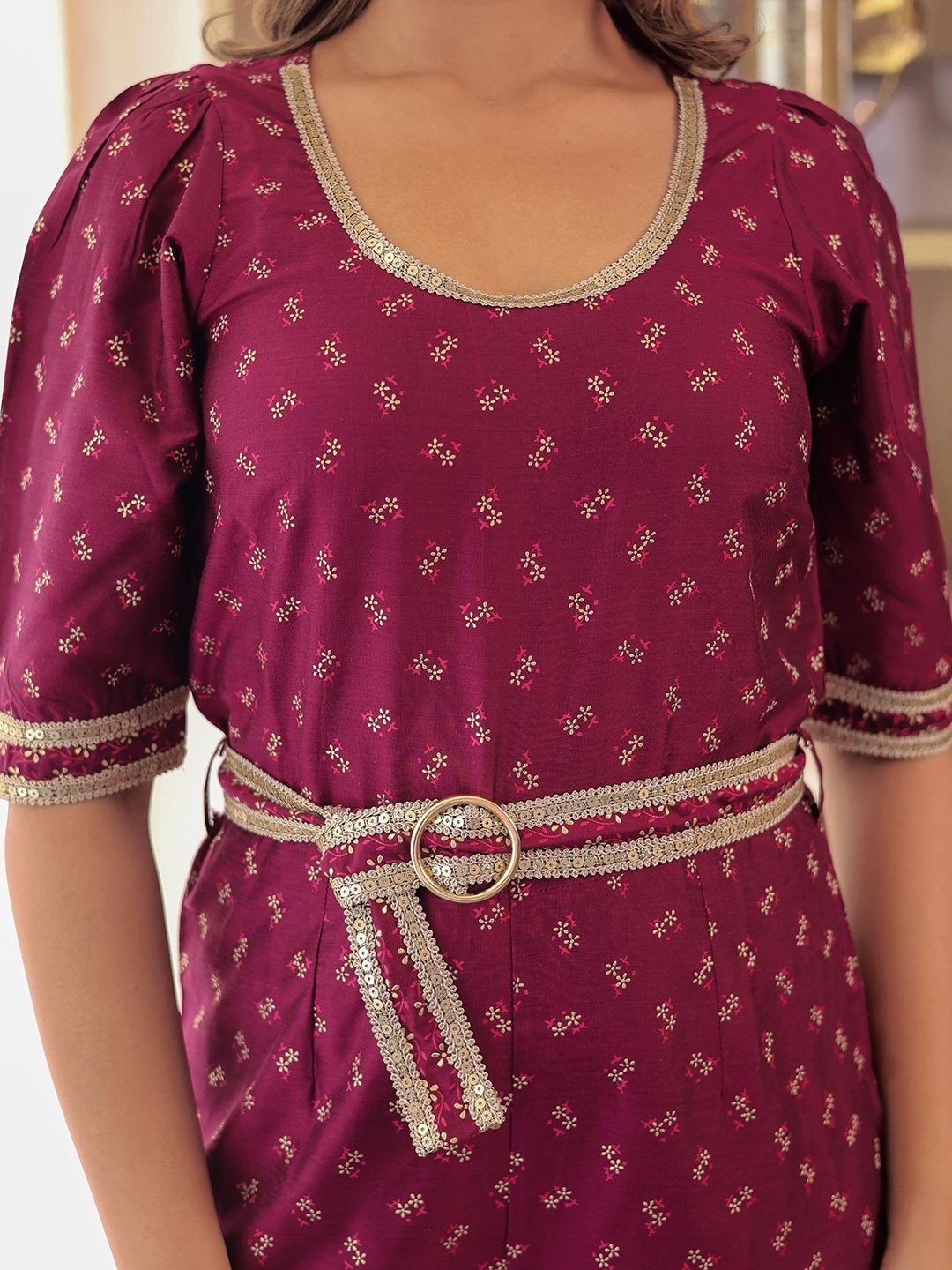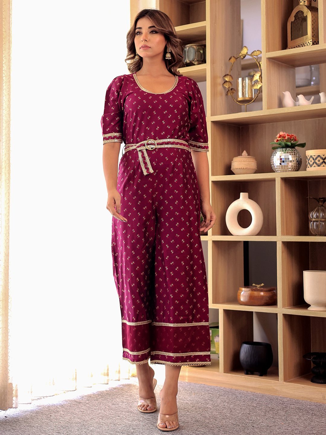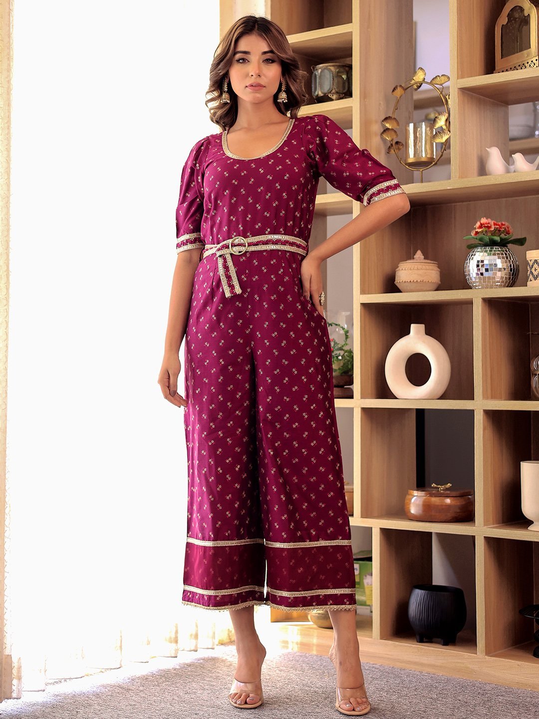 PURPLR PRINTED ROUND NECK JUMPSUIT WITH BELT
