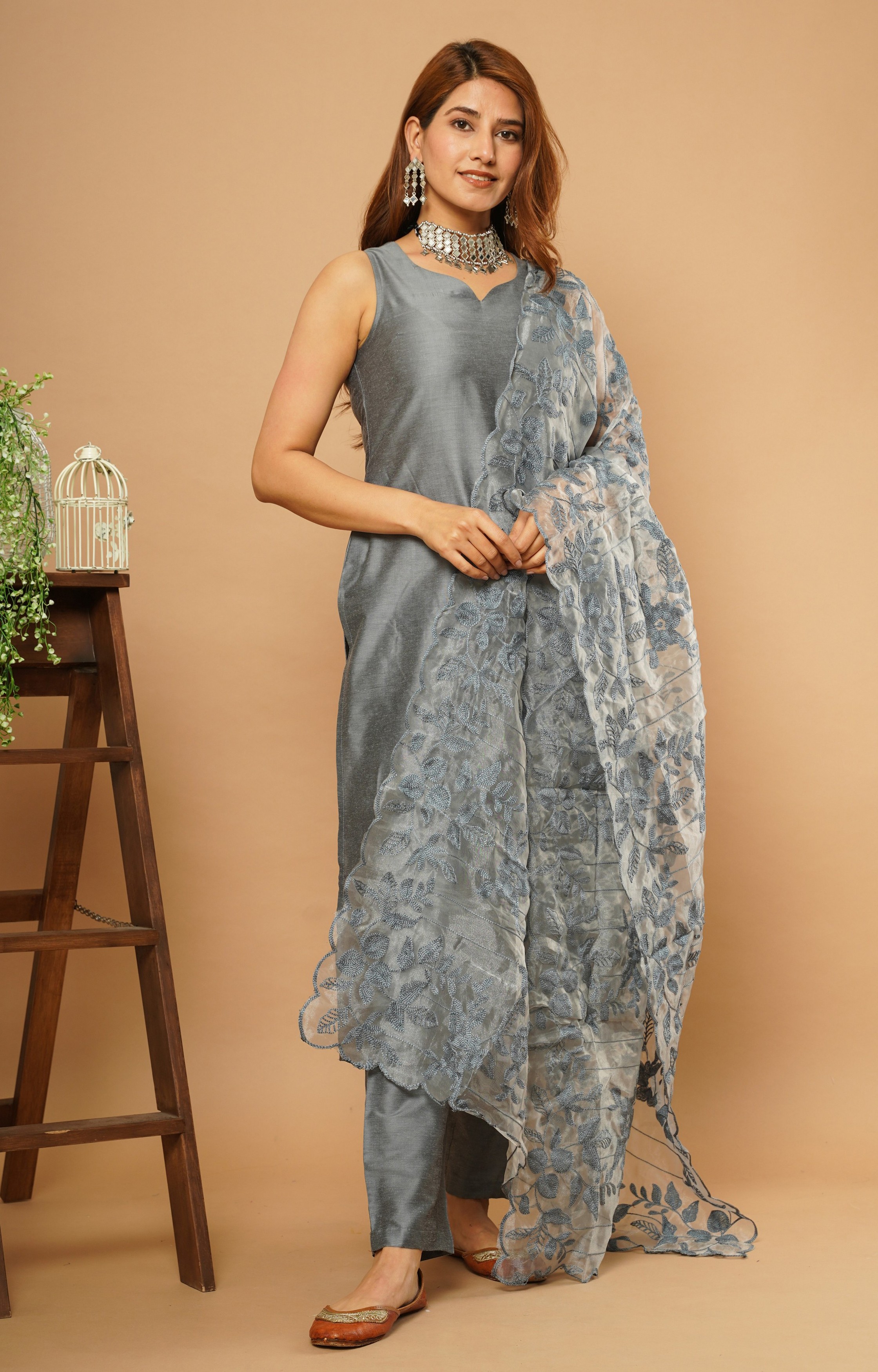 GARY SOLID KURTA WITH HEAVY EMB DUPATTA