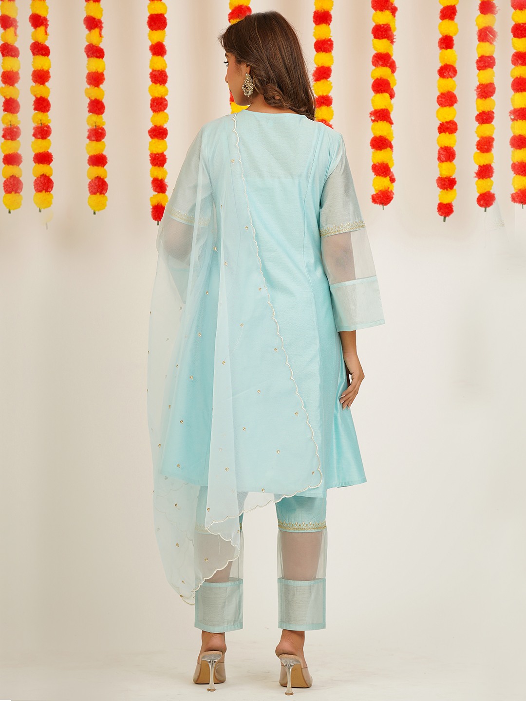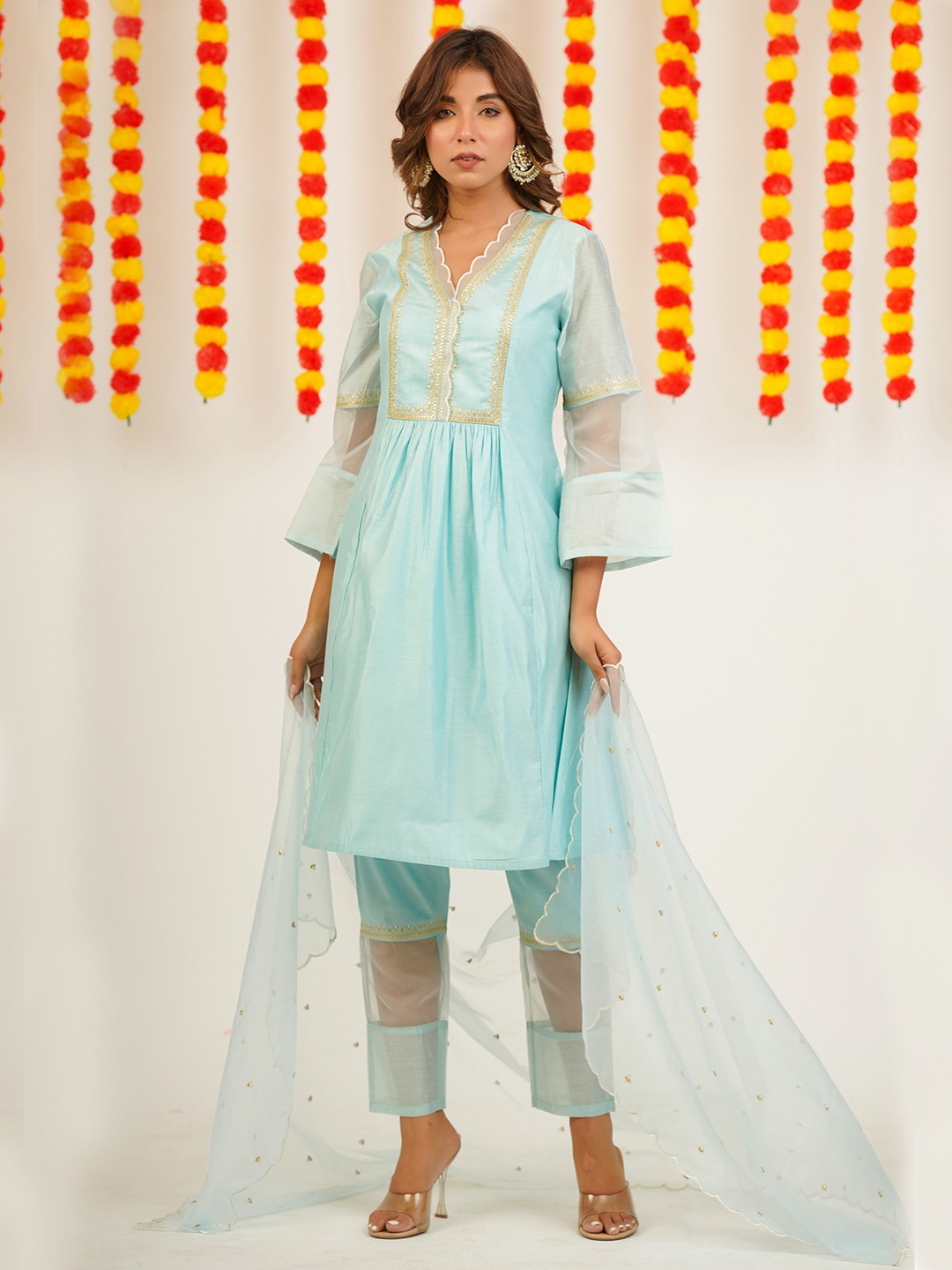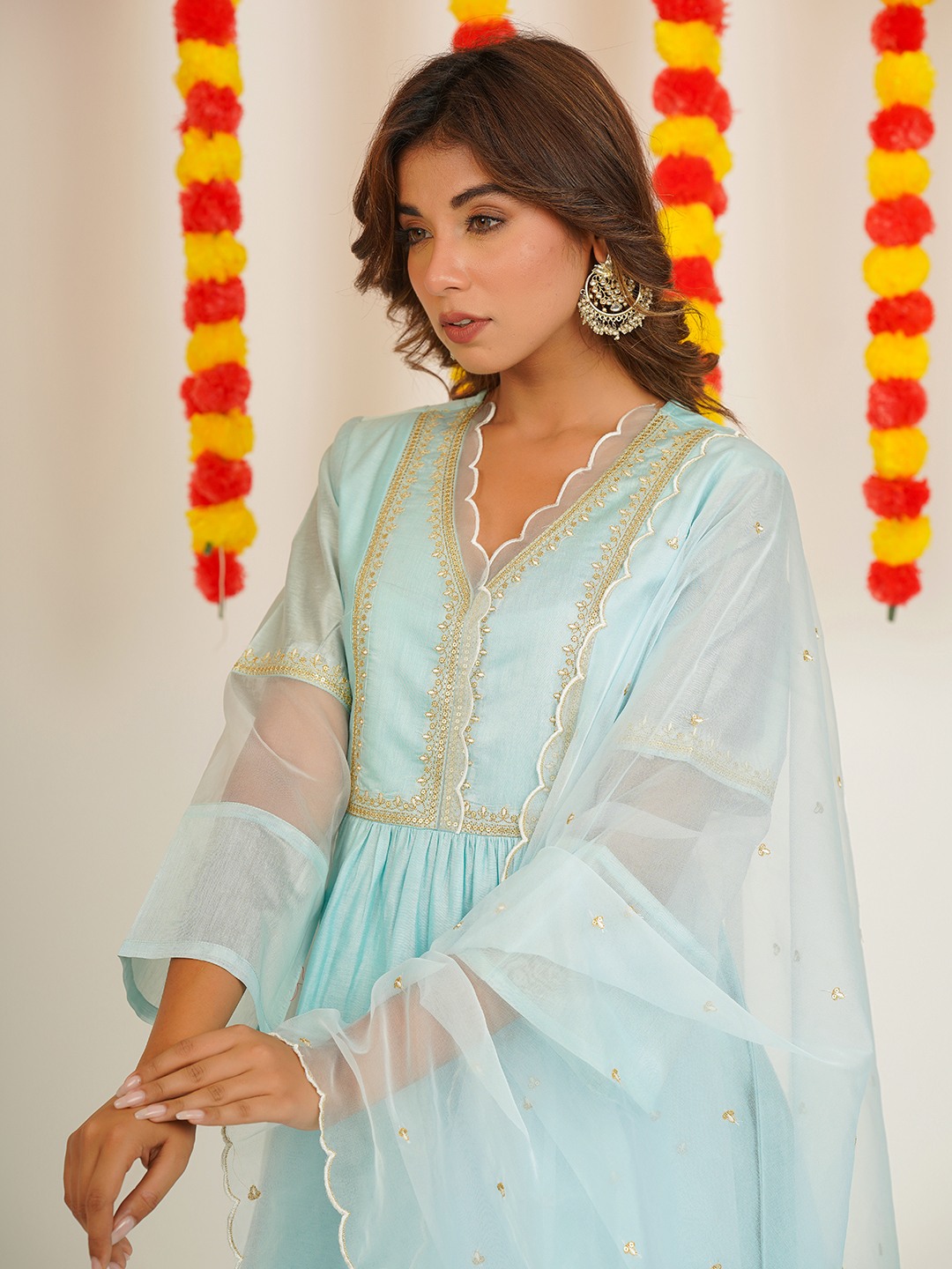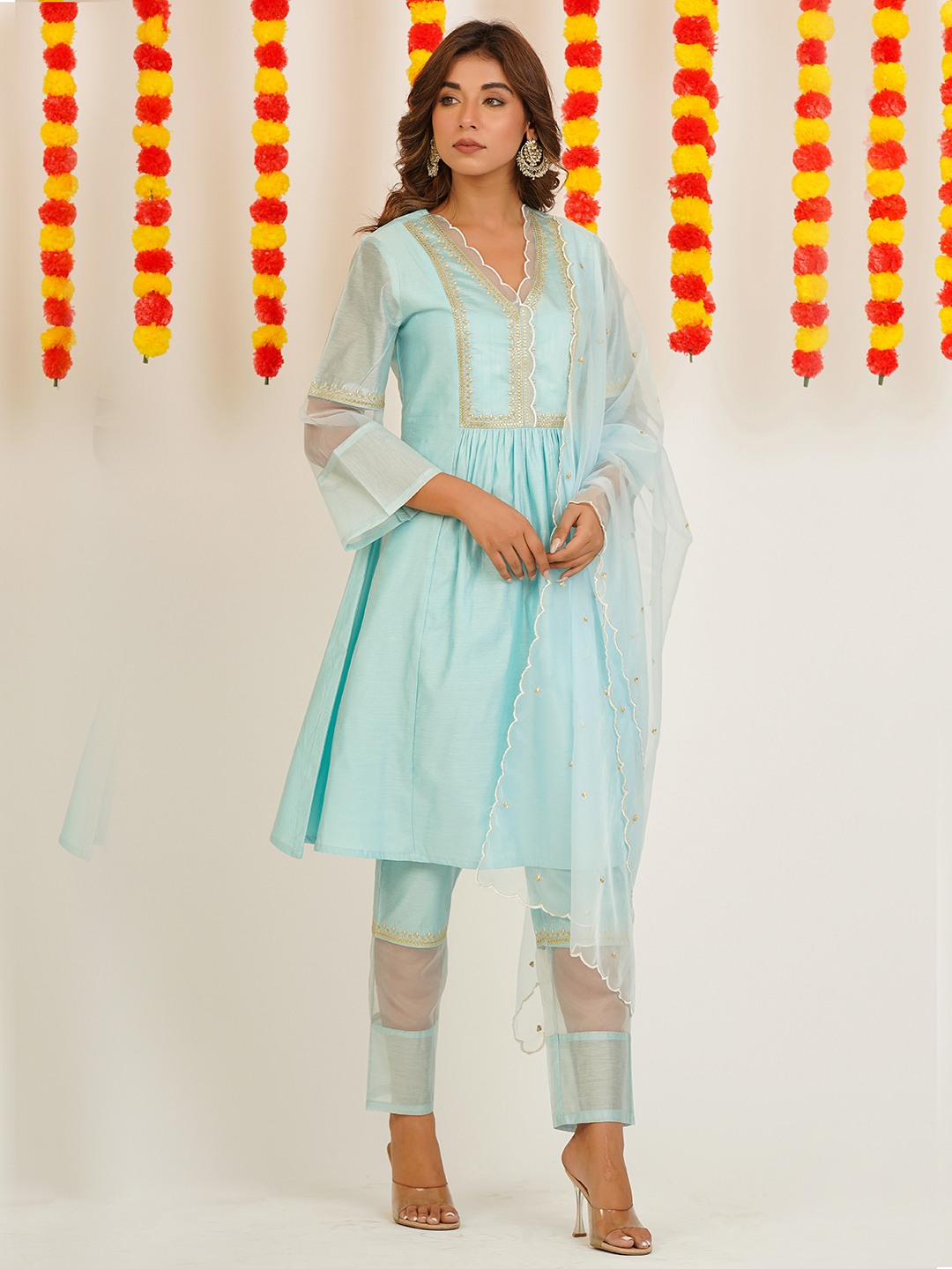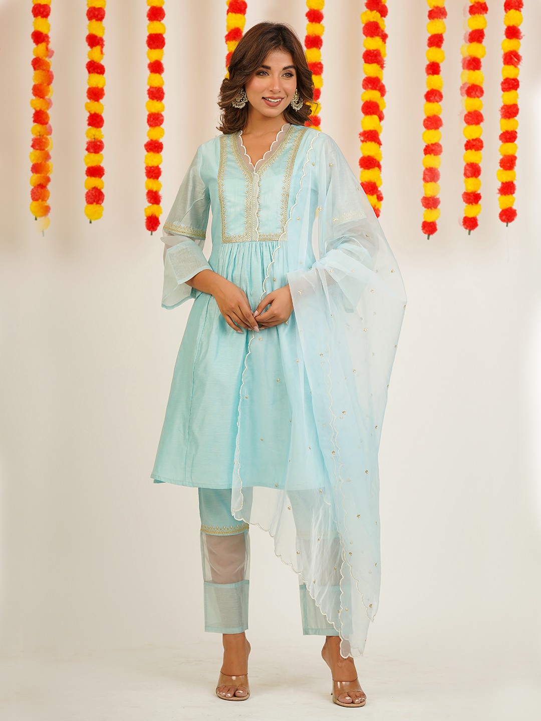 Viscose Chanderi Embroidered Anarkali kurta Pant with embroidered duptta.