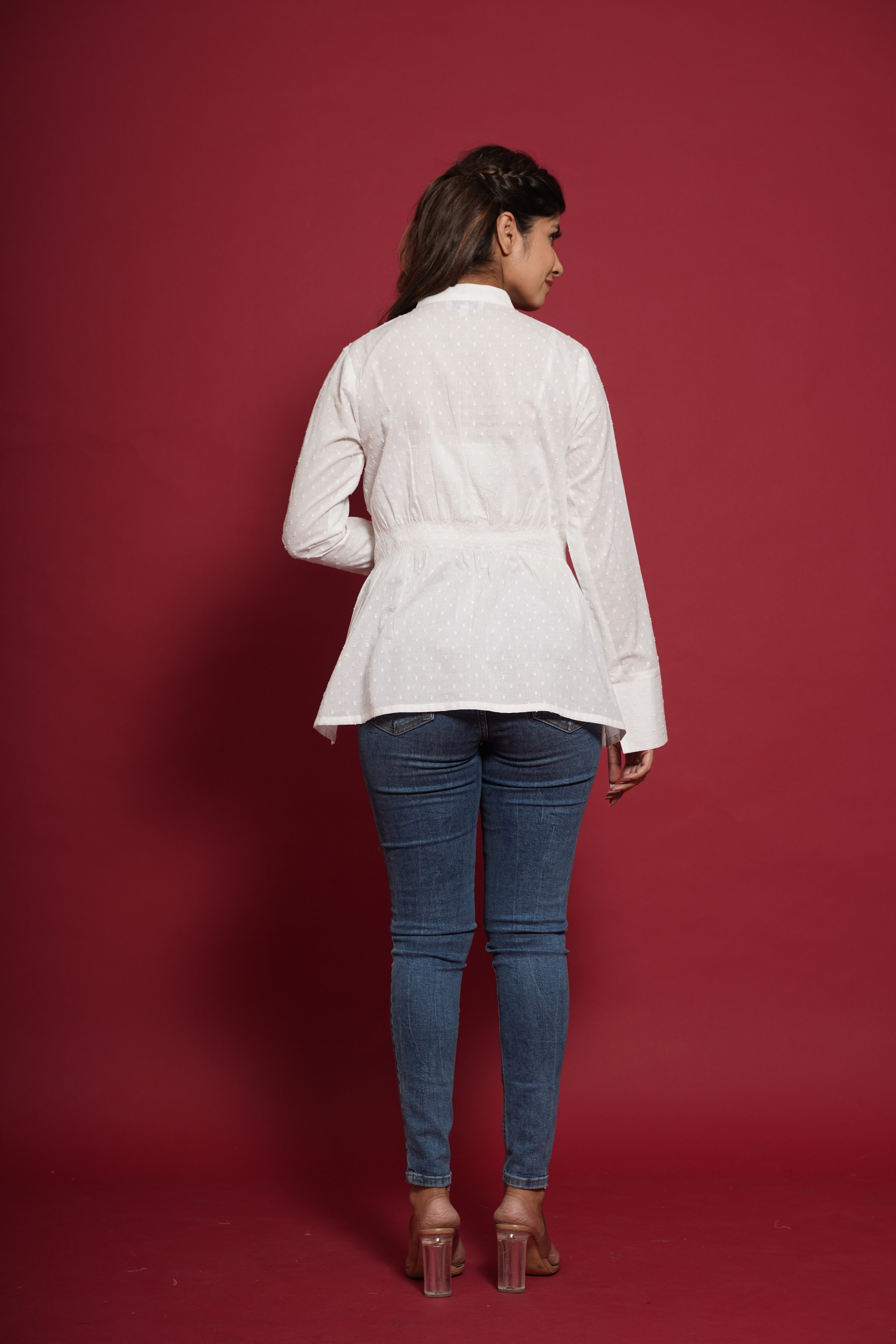 WHITE COTTON DOBBY SHIRT