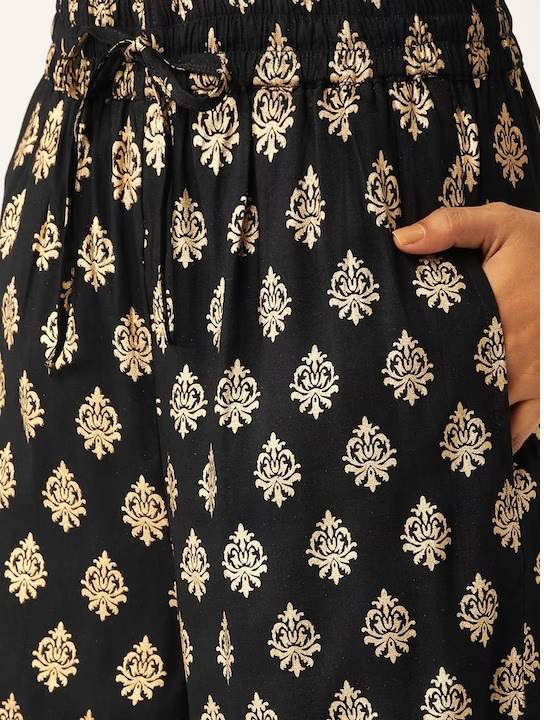 Black and golden printed palazzos, slip-on closure