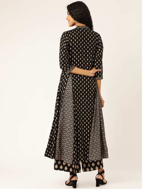 Black and golden printed kurta with palazzos