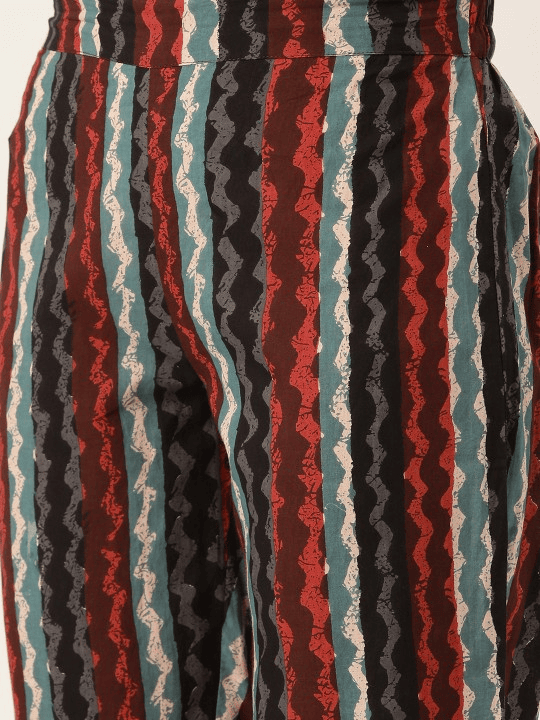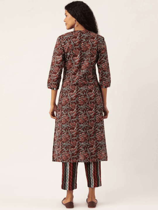 Women Coffee Brown & Blue Printed Kurta with Trous