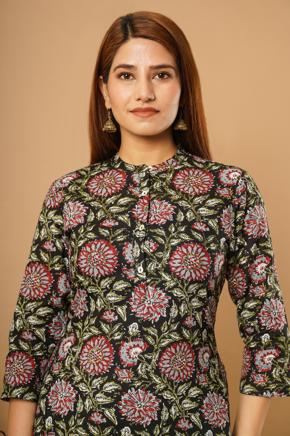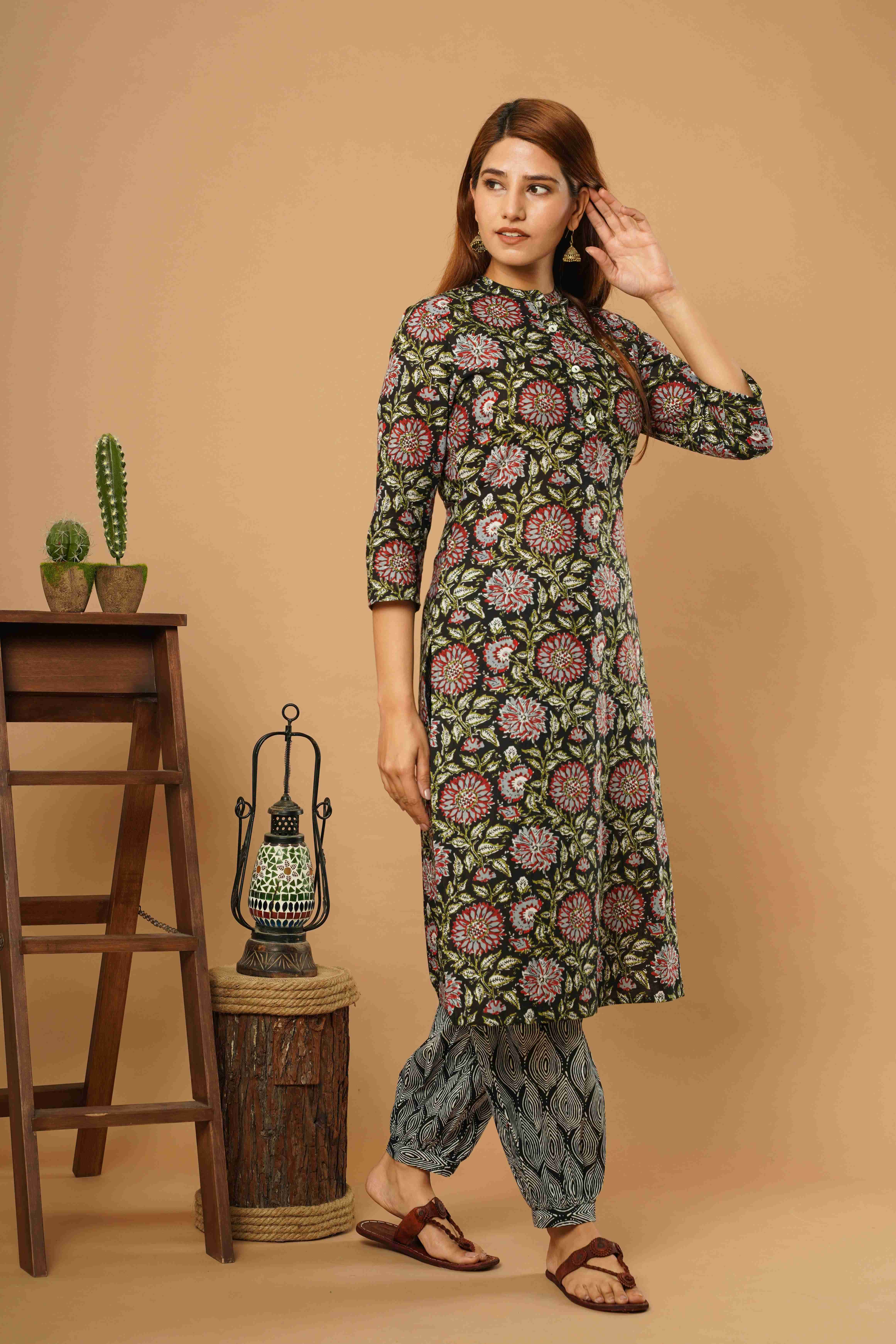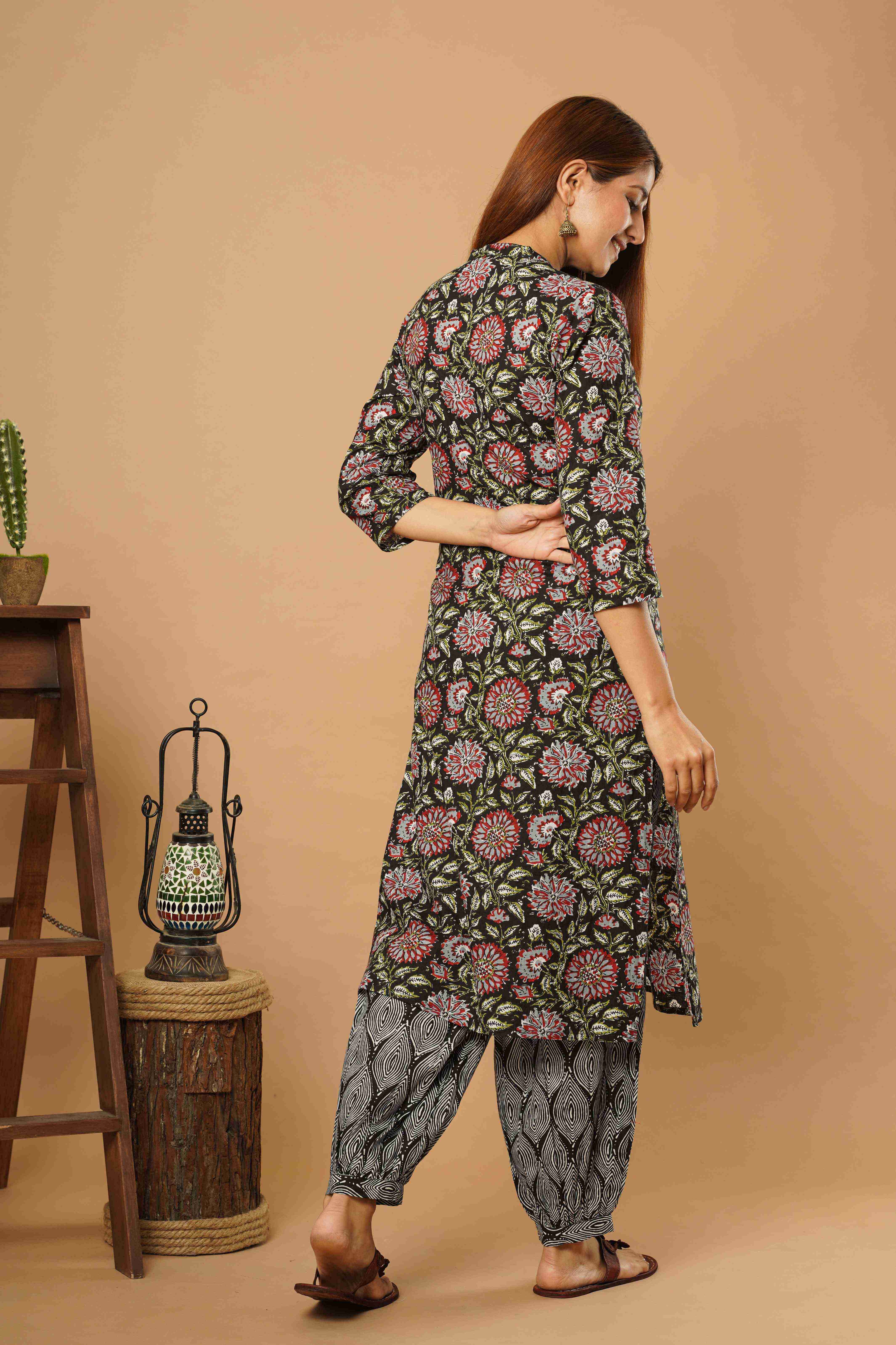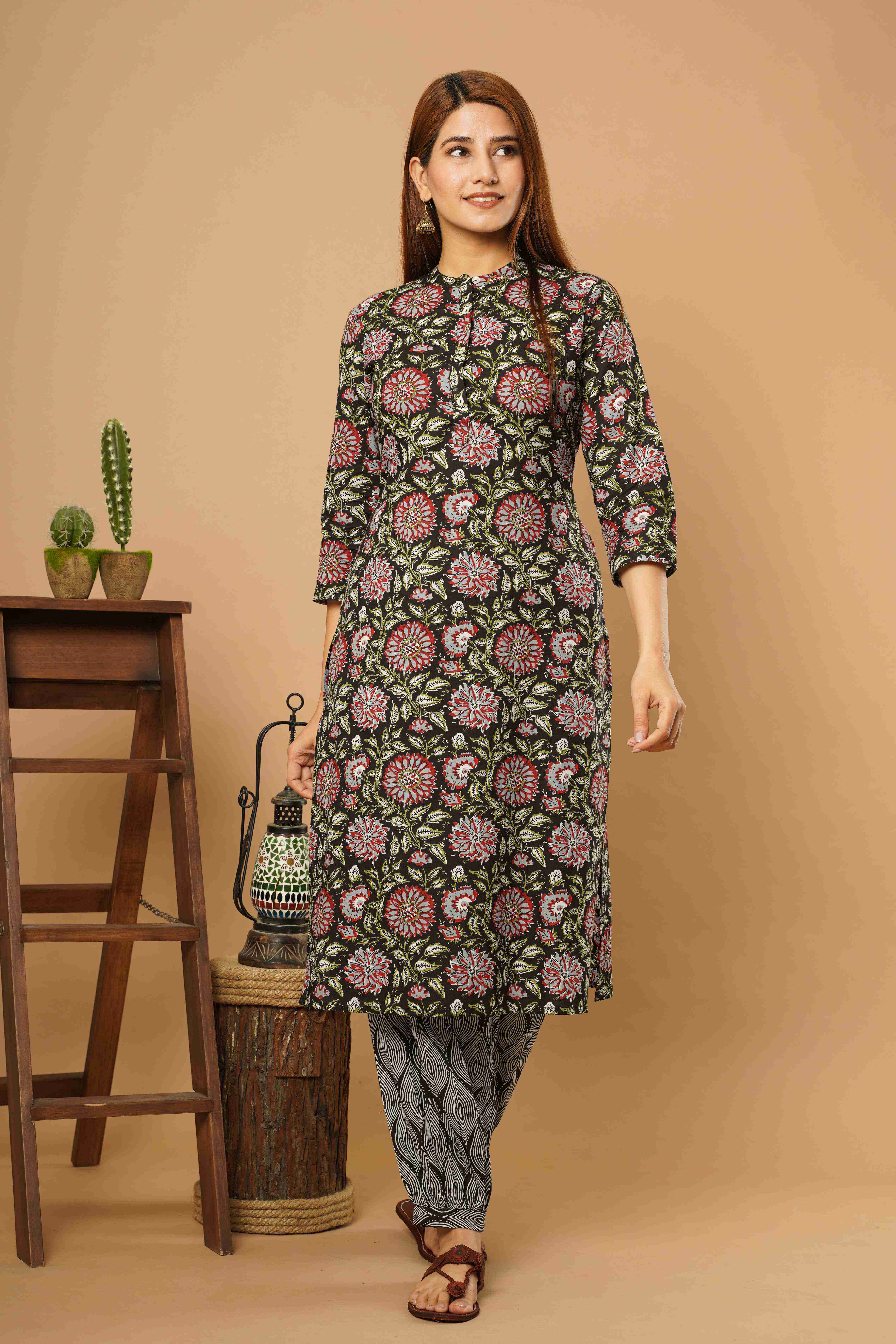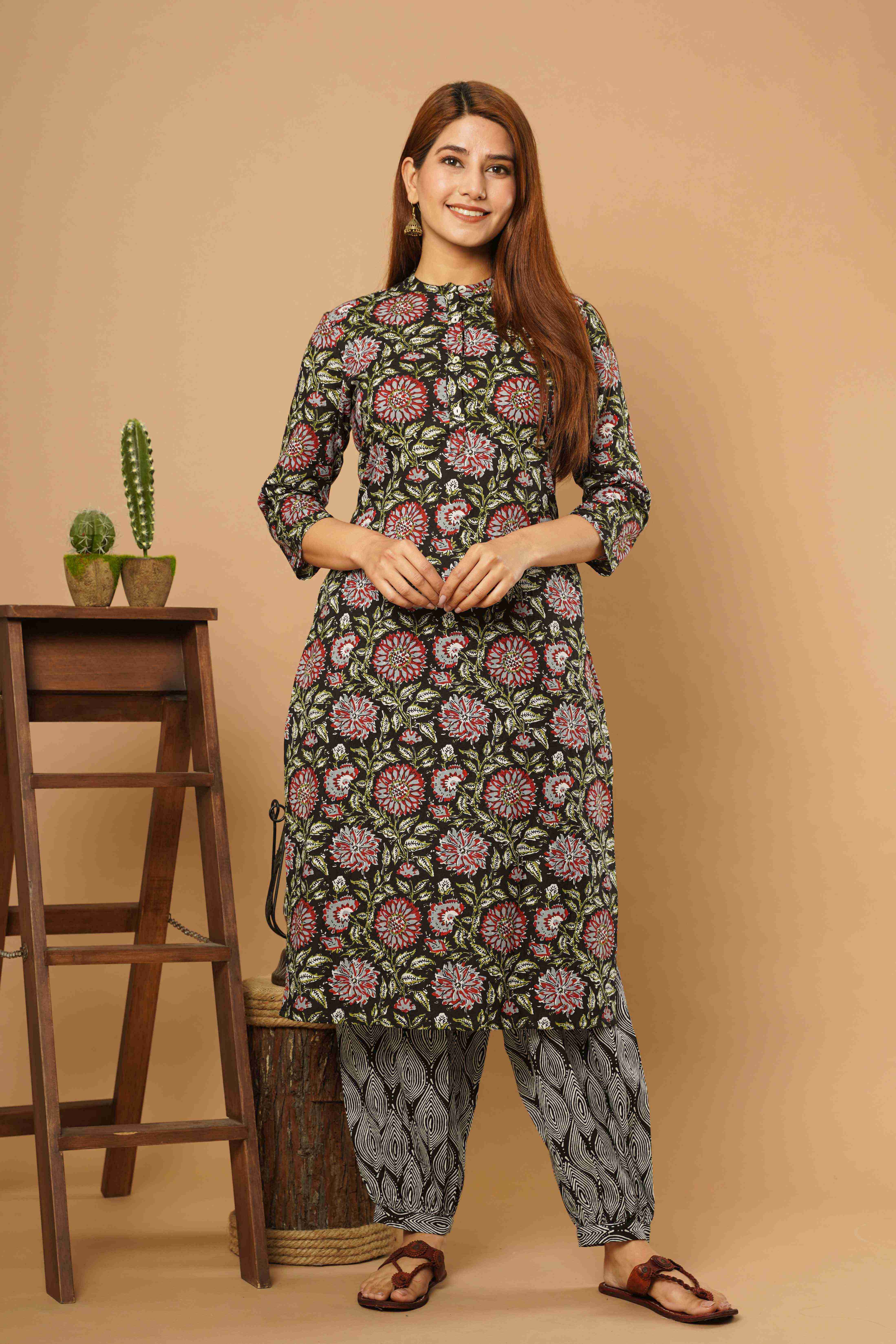 Women Floral Printed Pure Cotton Kurta With Salwar