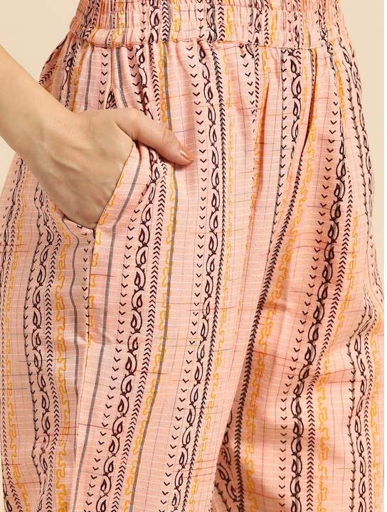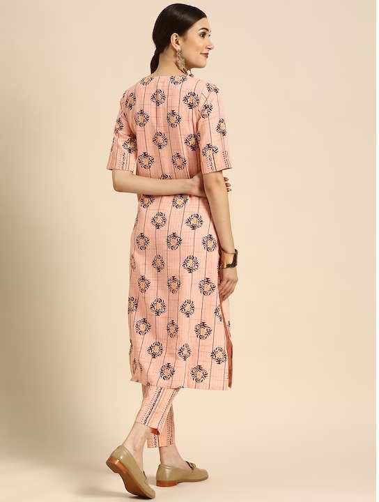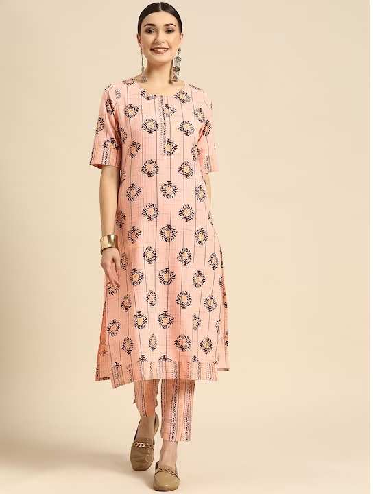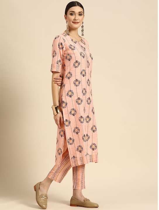 Women Peach-Coloured Ethnic Motifs Printed kurta Set