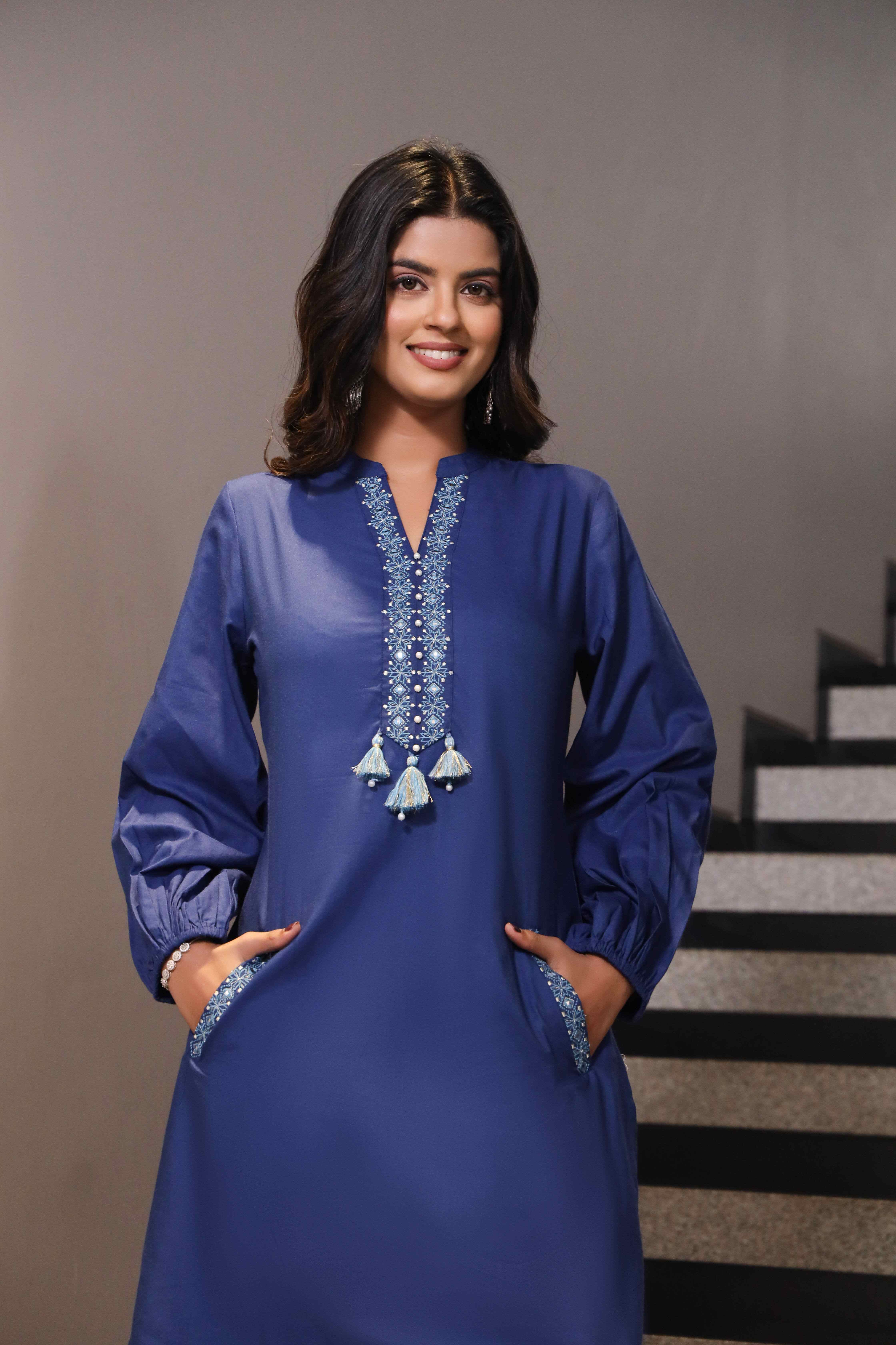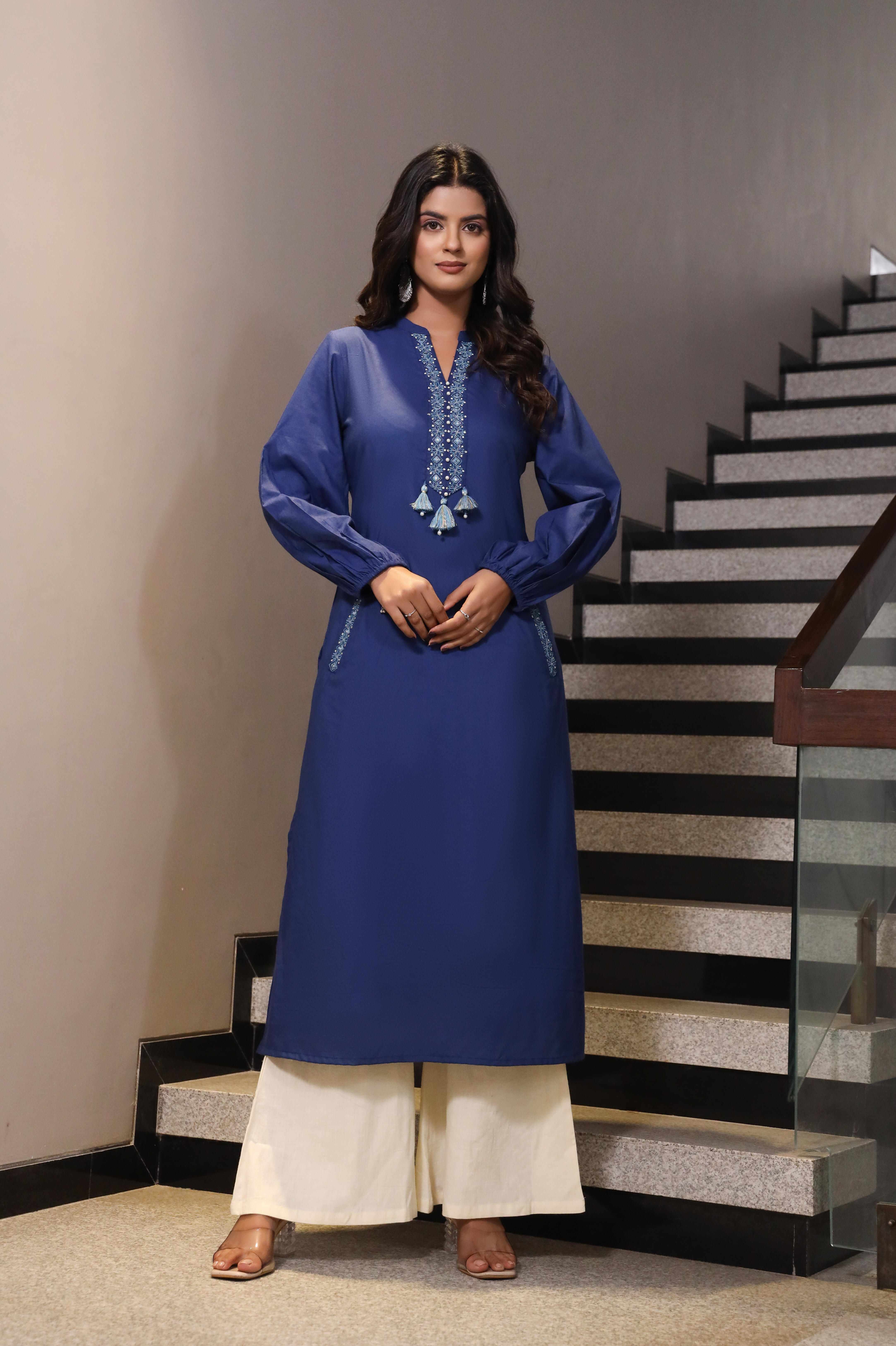 WOMEN'S EMBROIDERY BEADS WITH TASSEL KURTA