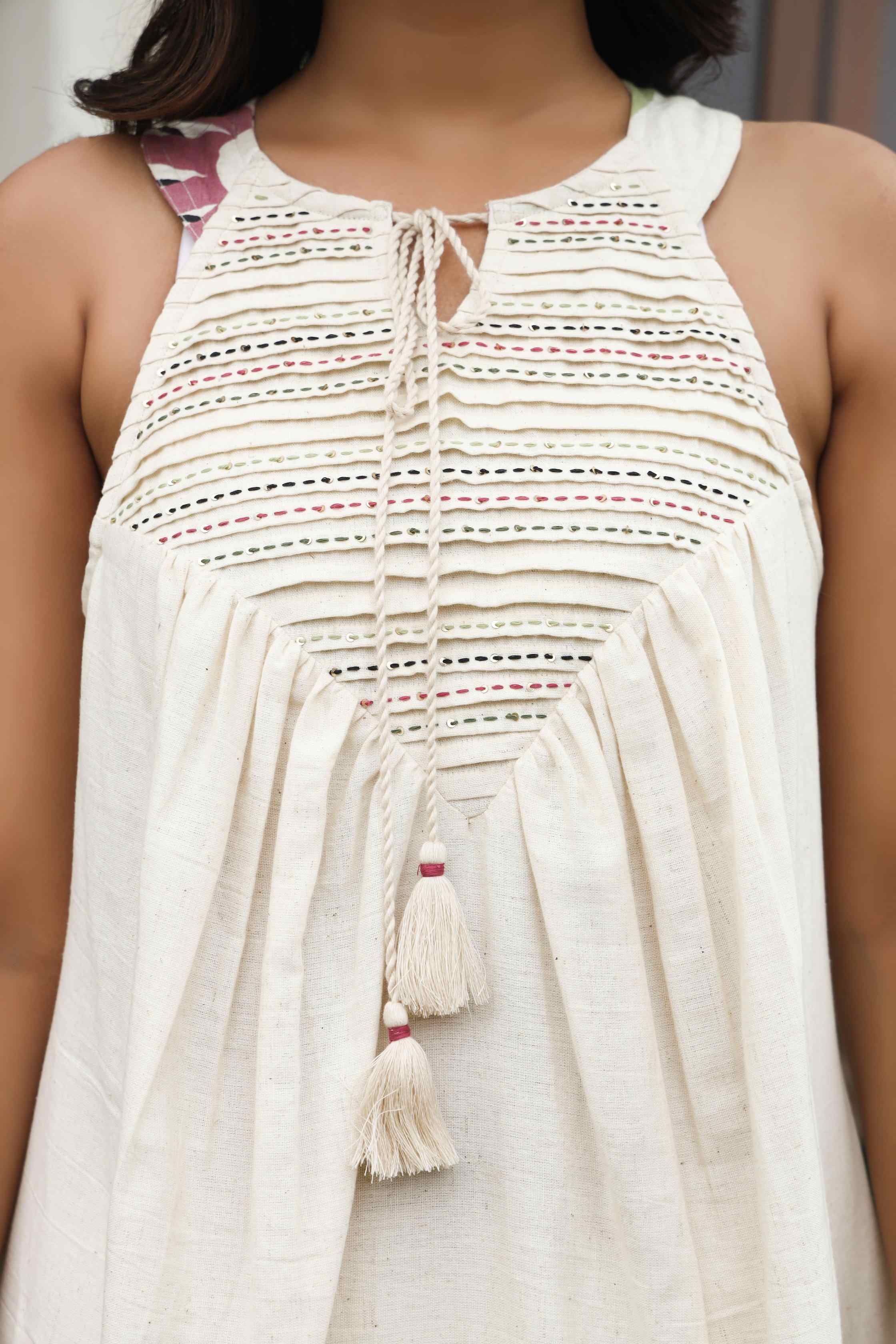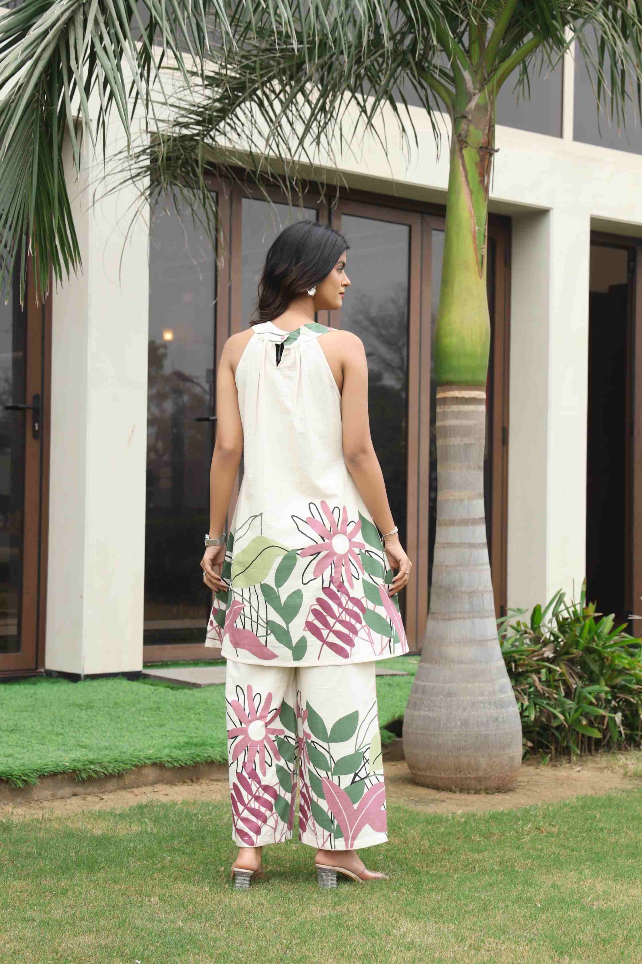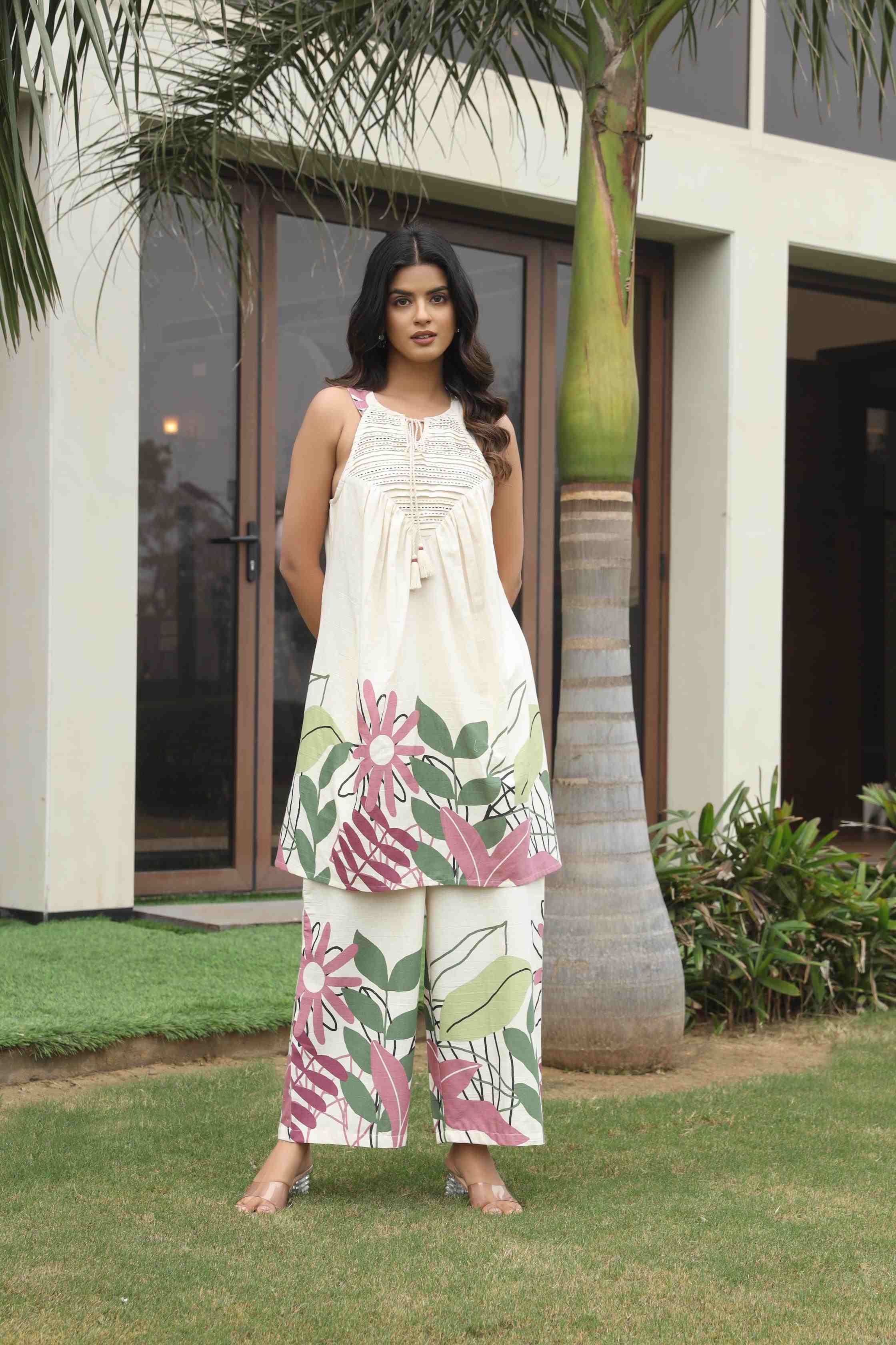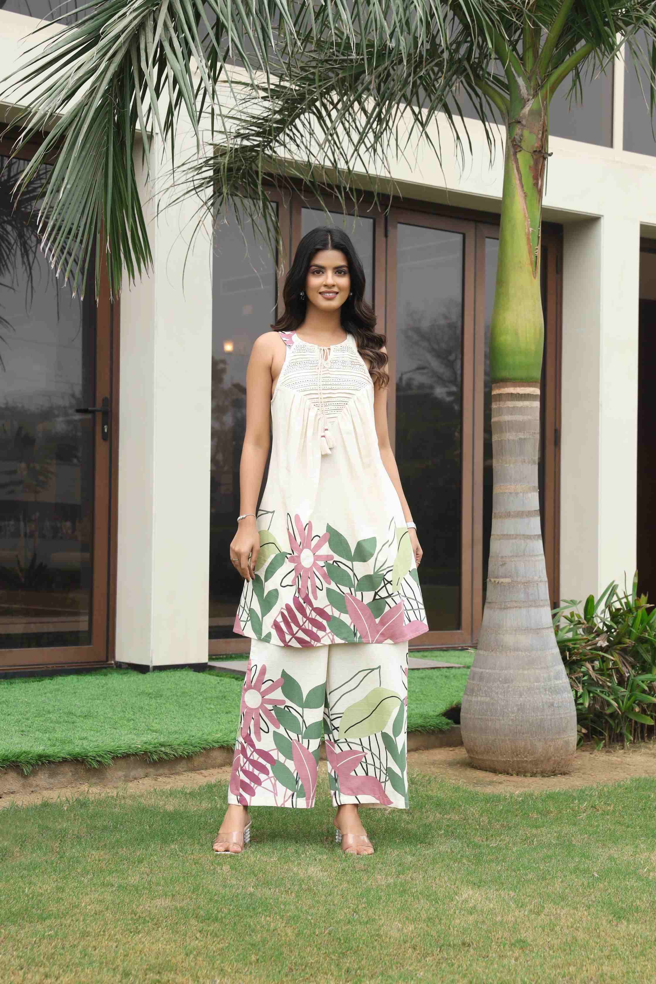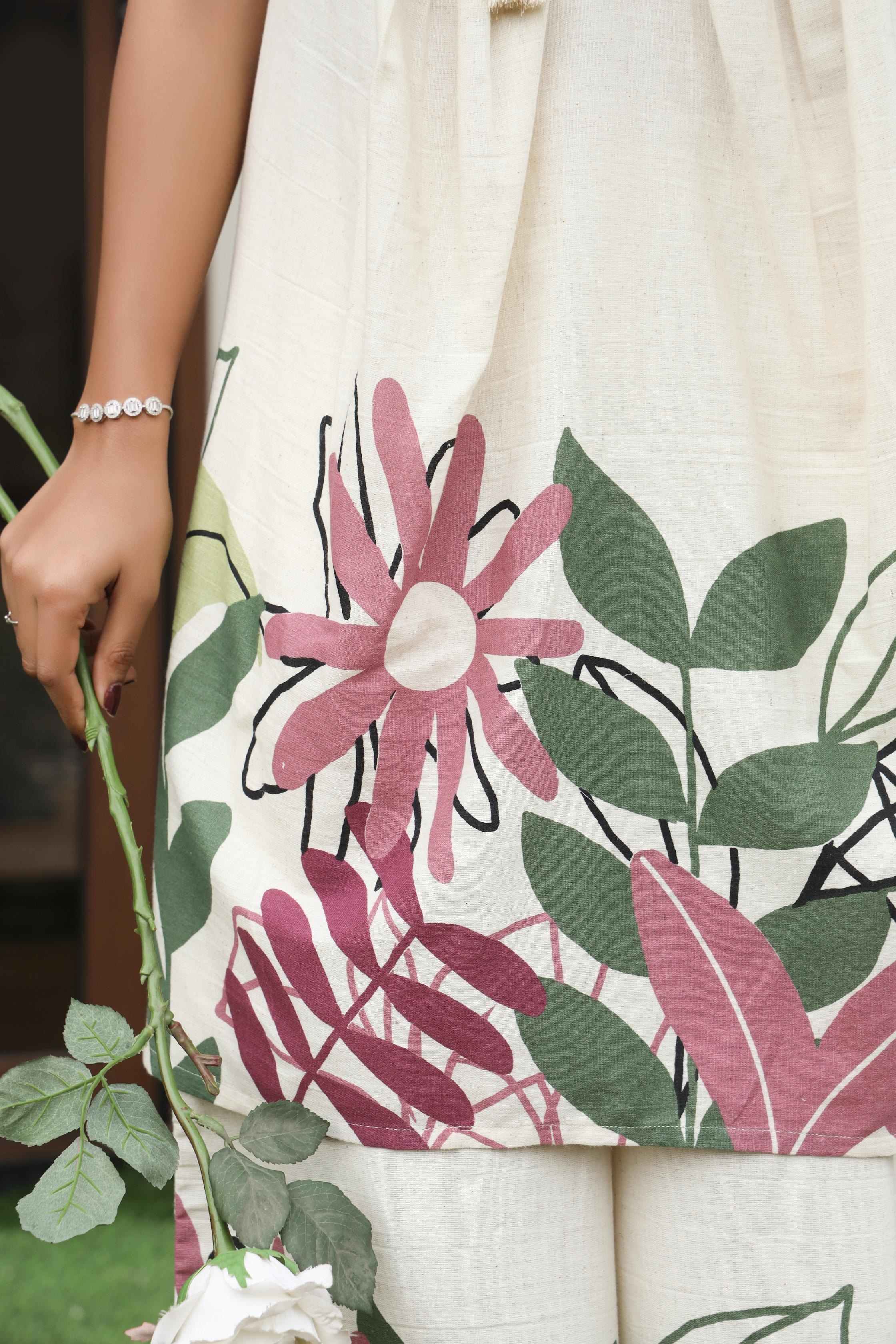 WOMEN'S OFF WHITE COTTON FLORAL KURTA SET