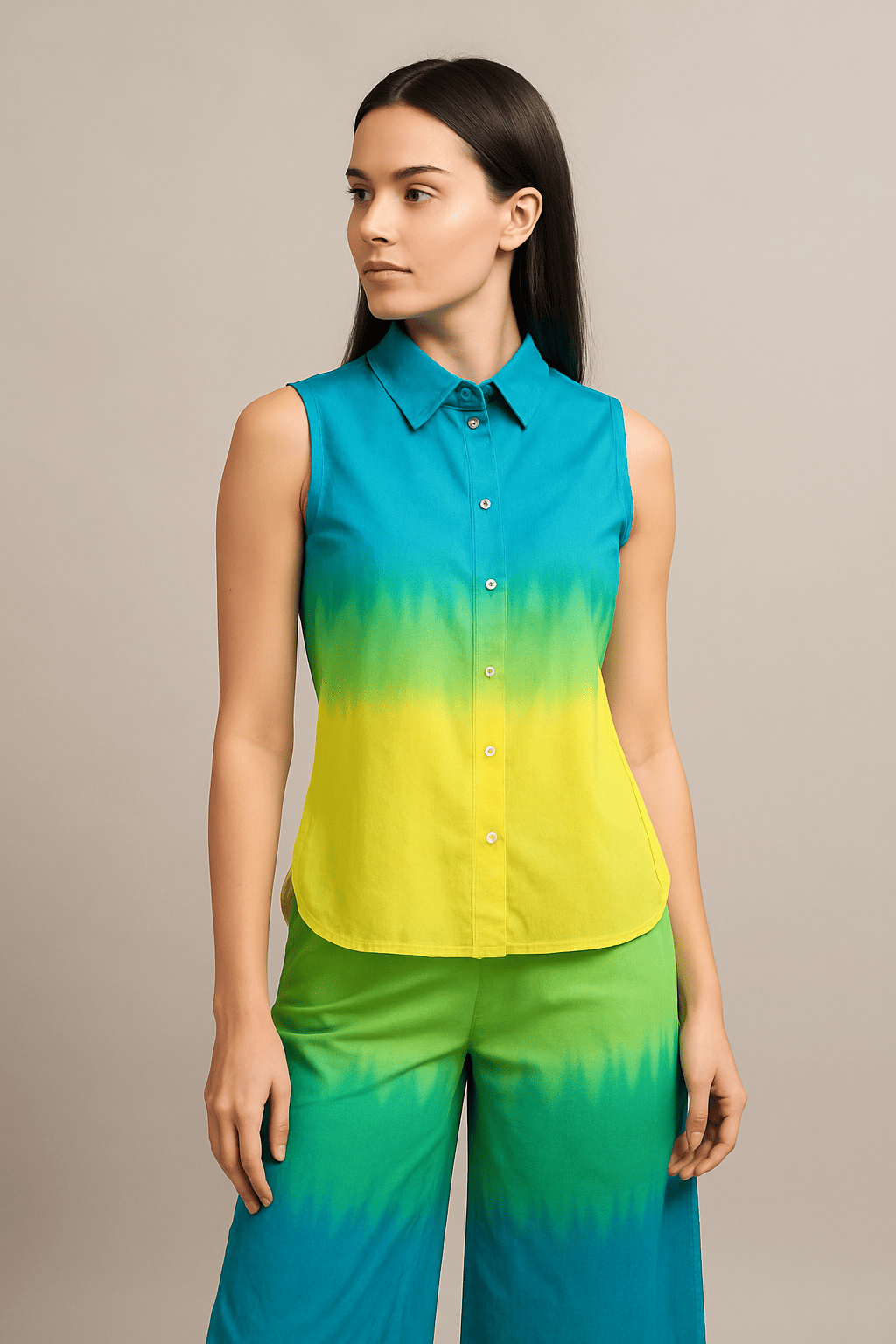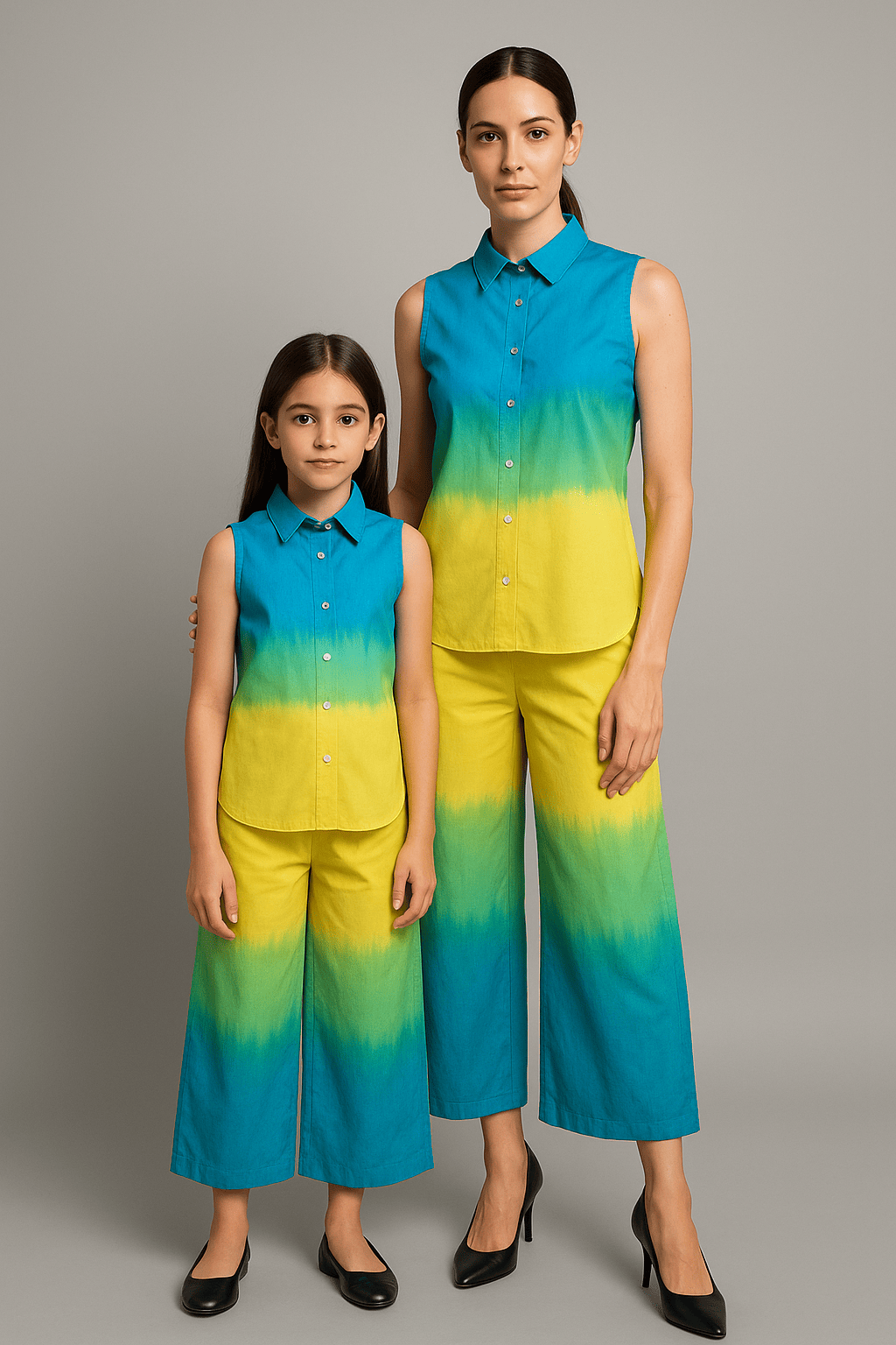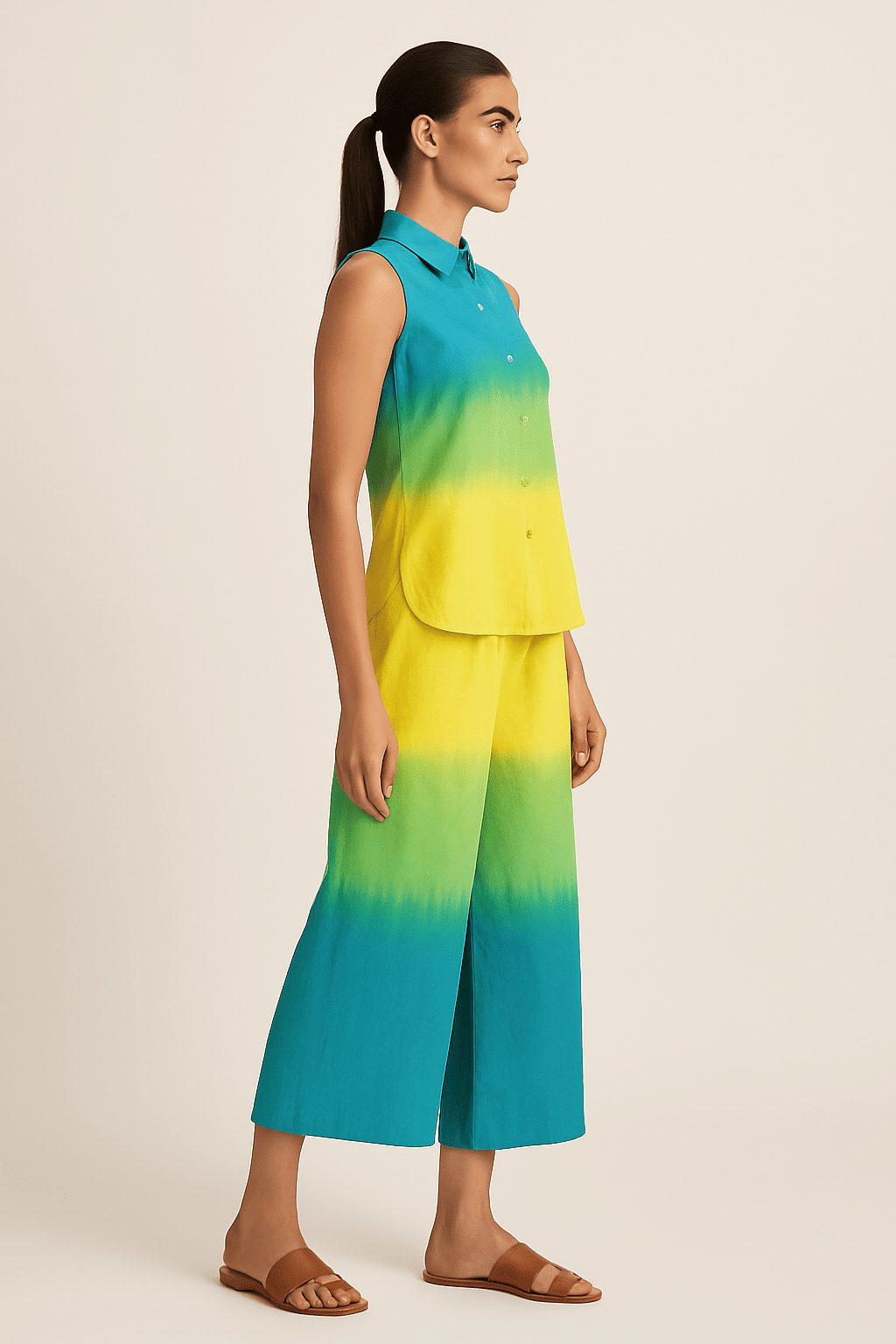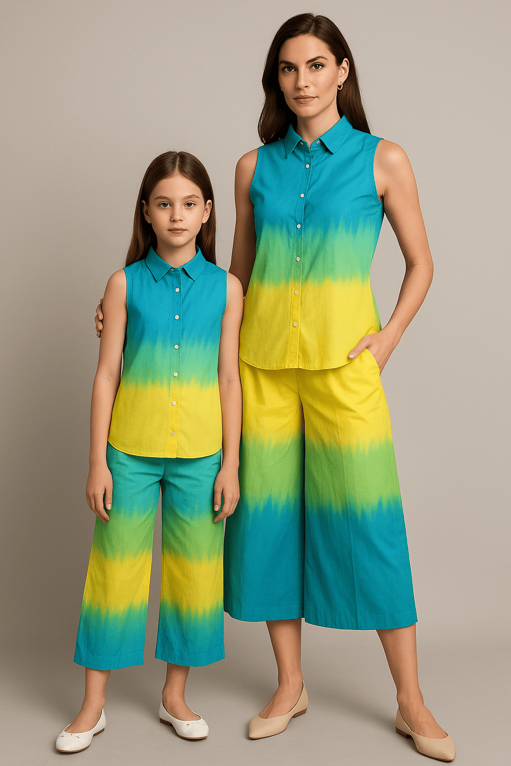 WOMEN'S TIE AND DYED BEAUTIFUL MINI YELLOW BLUE CO-ORD SETS