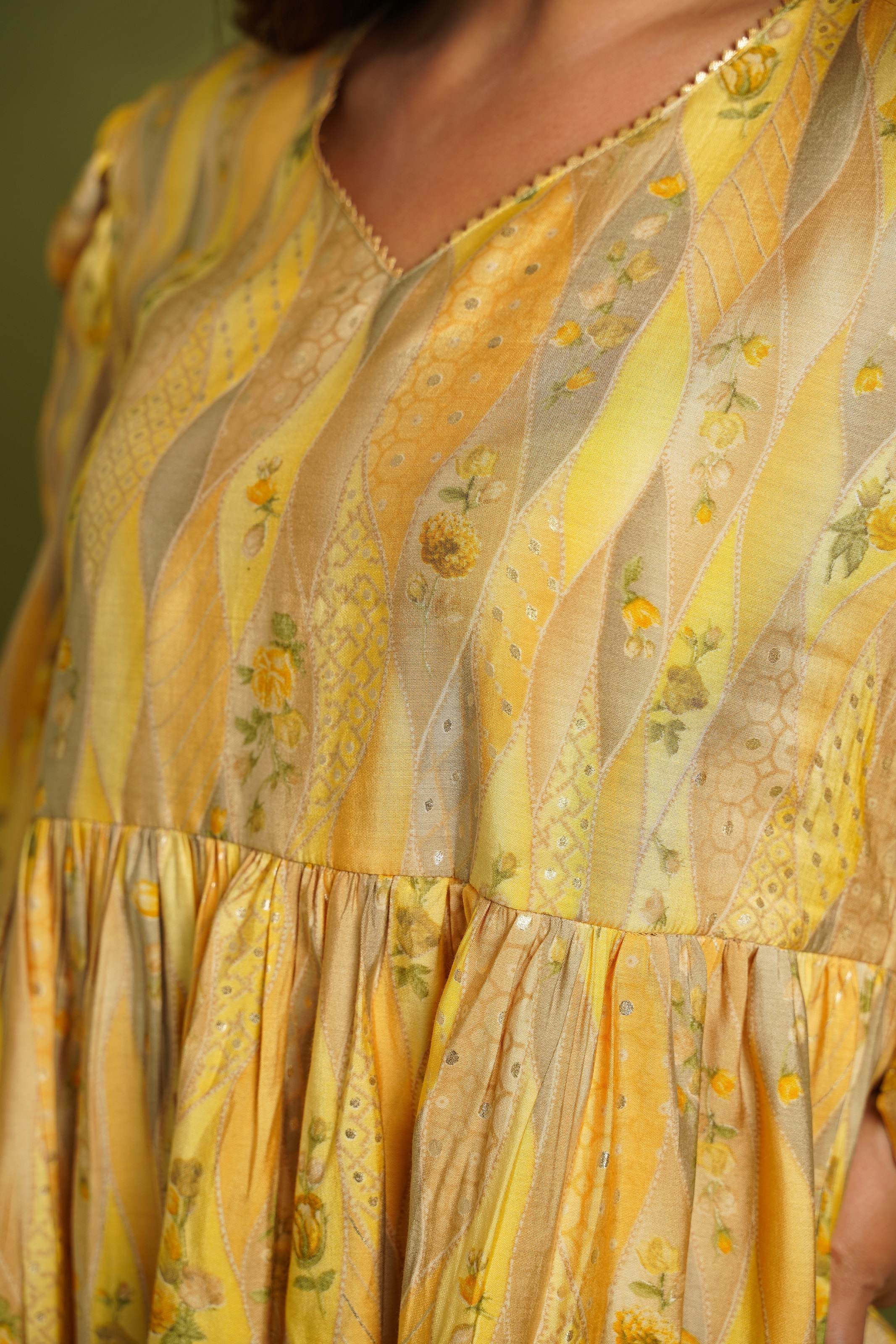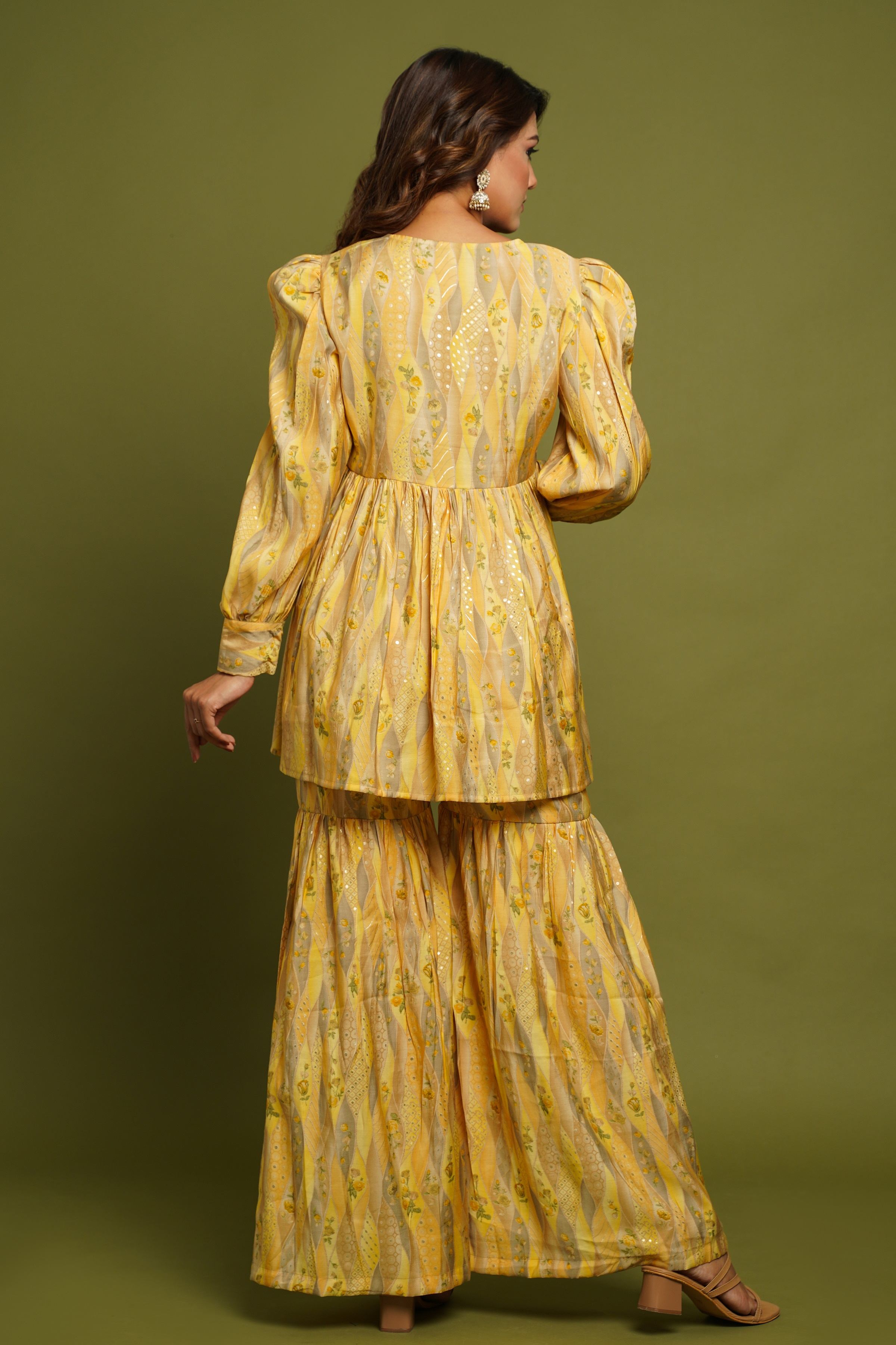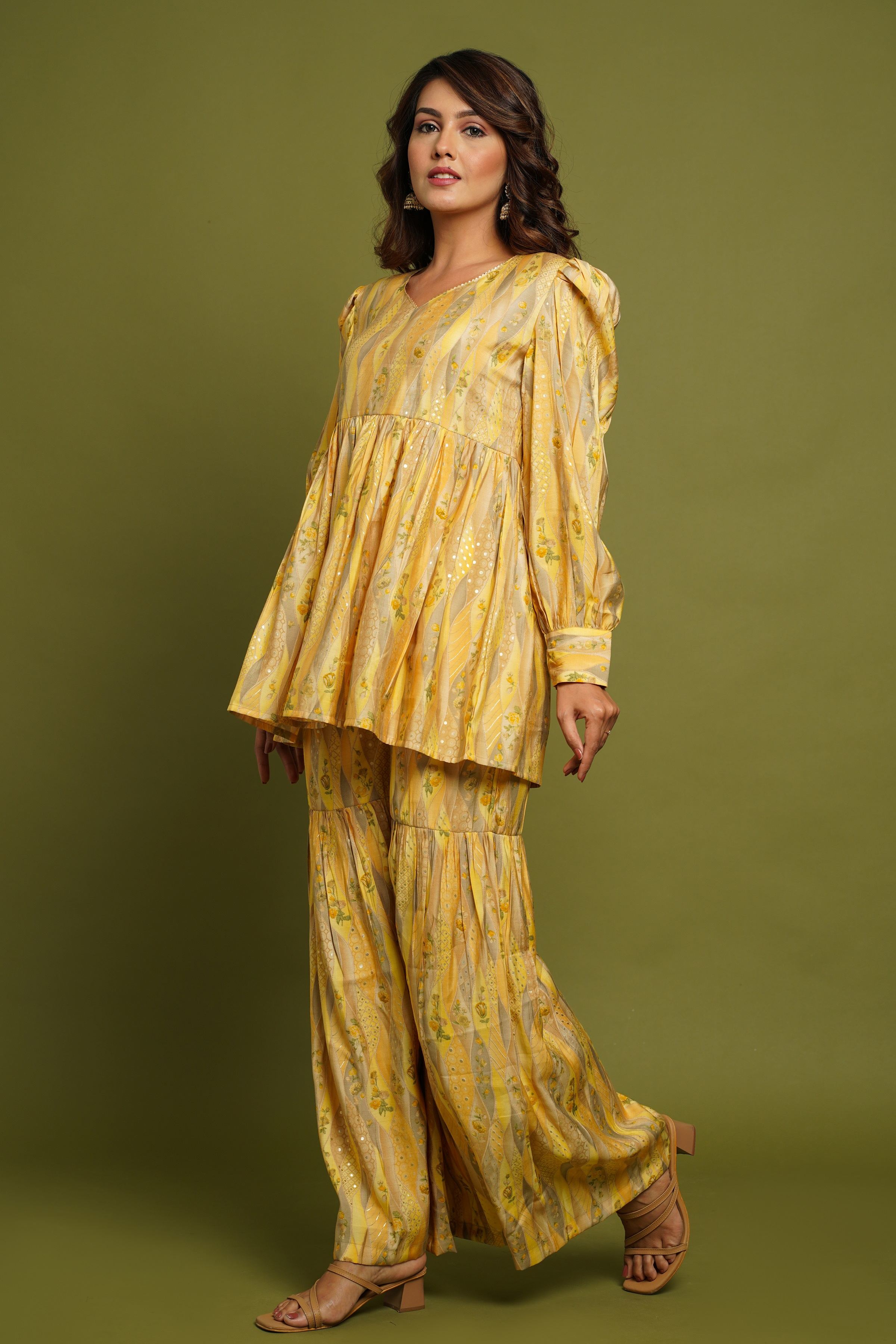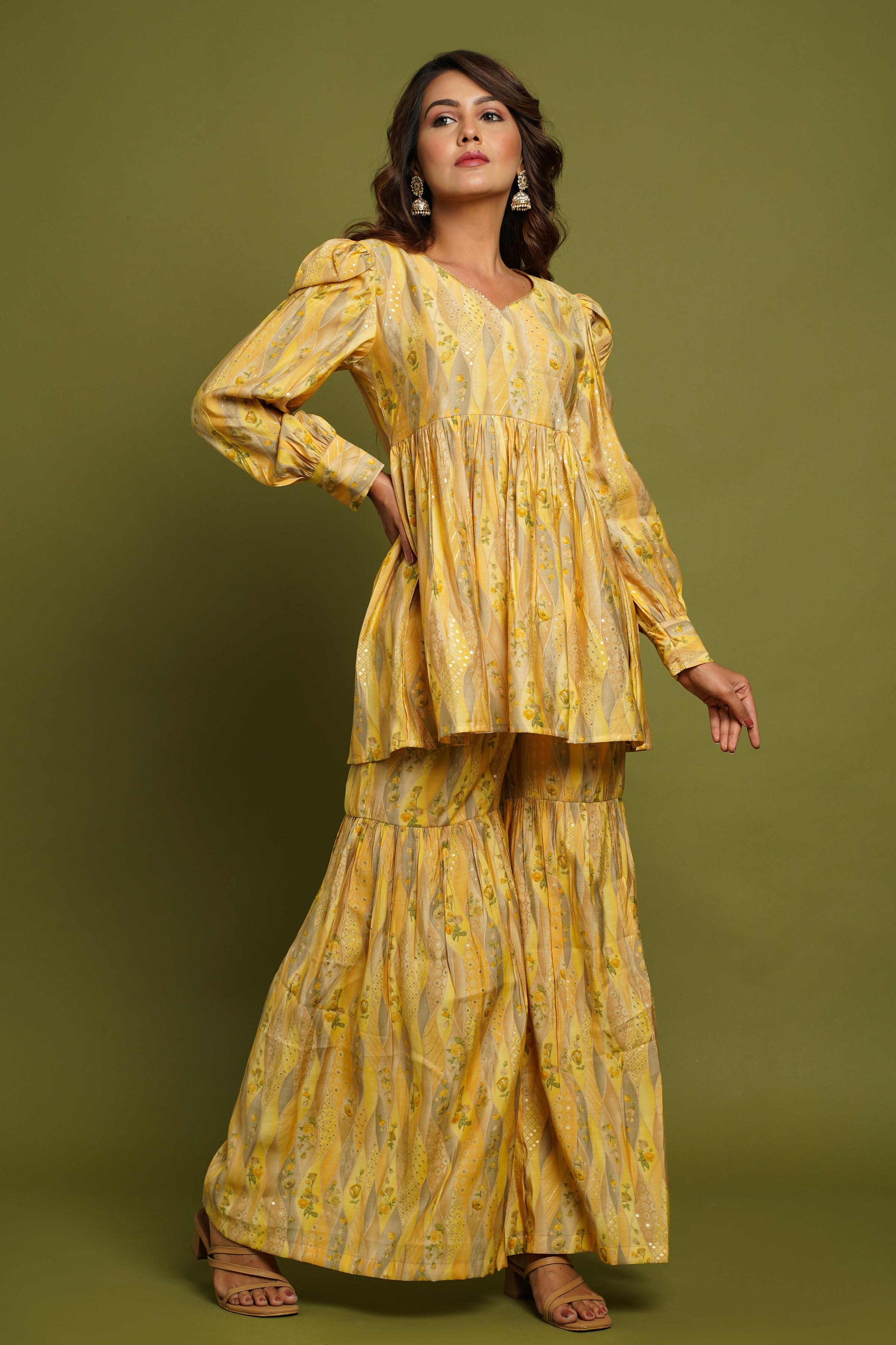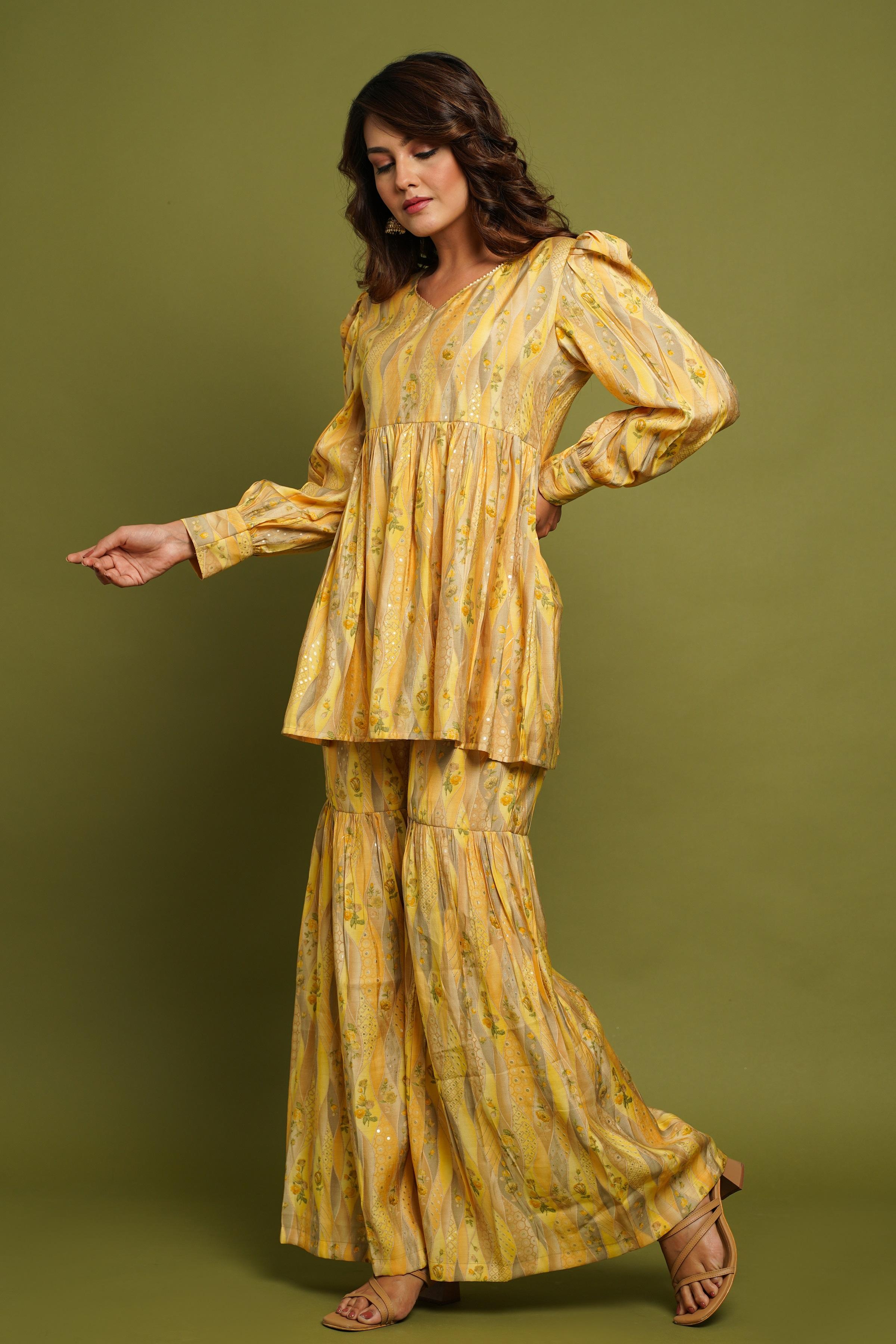 Yellow Printed Kurta With Sharara